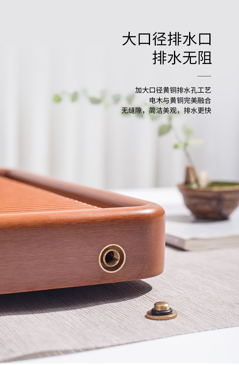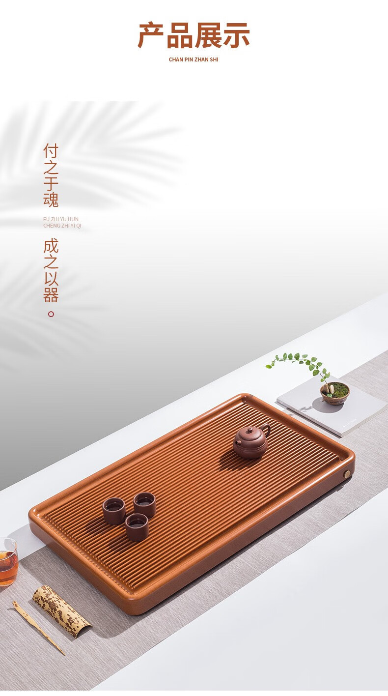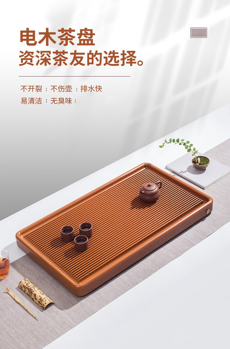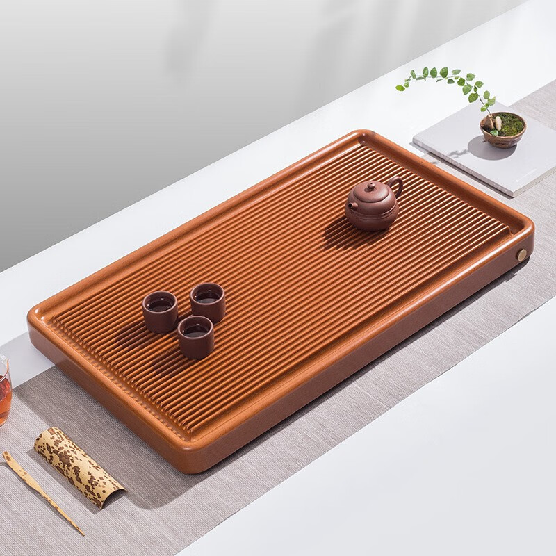 京峰阁 茶具高山流水黄料电胶木茶盘 实木家用排水式茶台 简约办公室整块功夫茶托盘80*40cm 高山流水茶盘