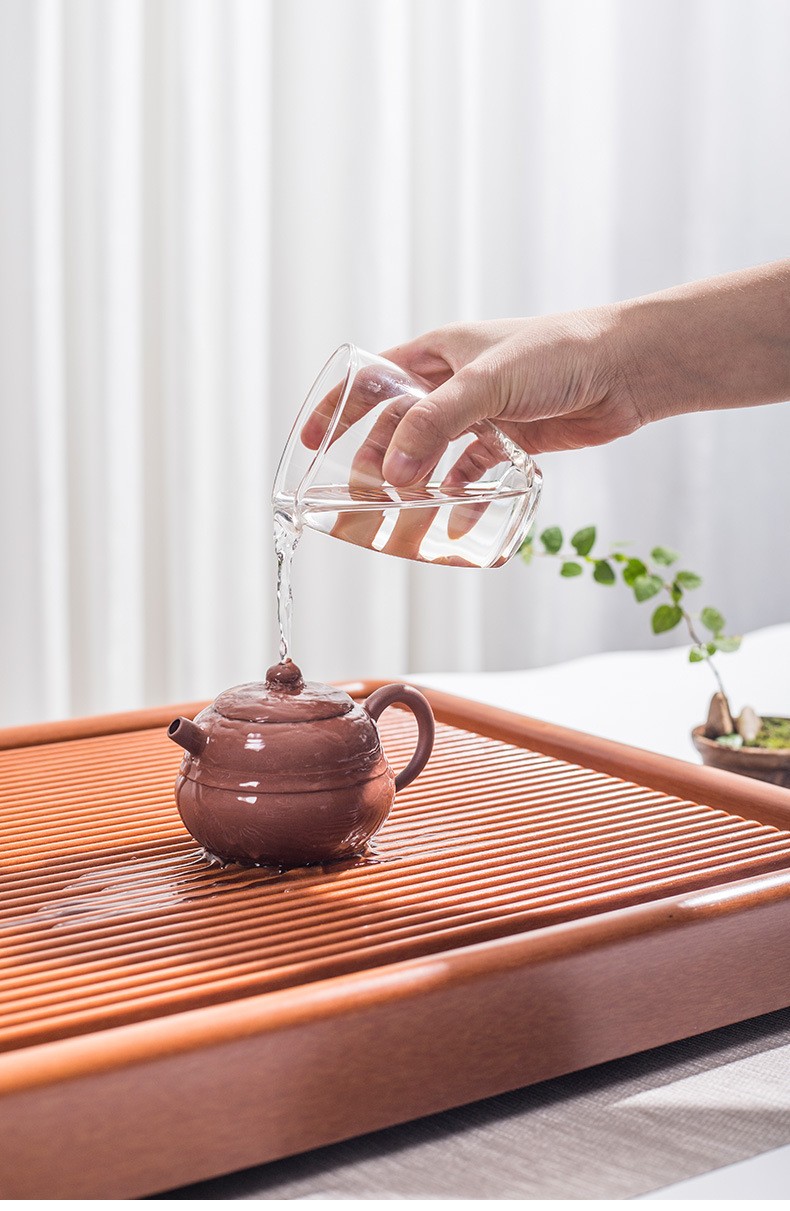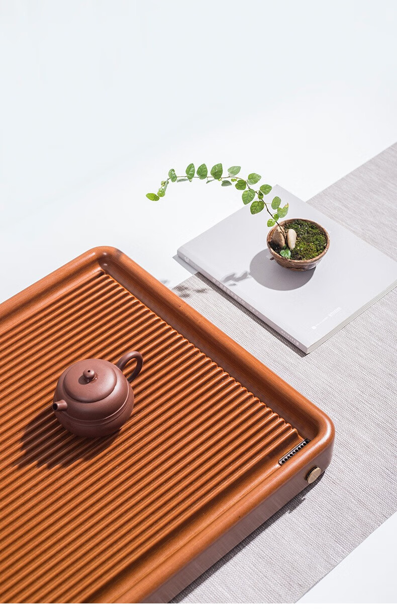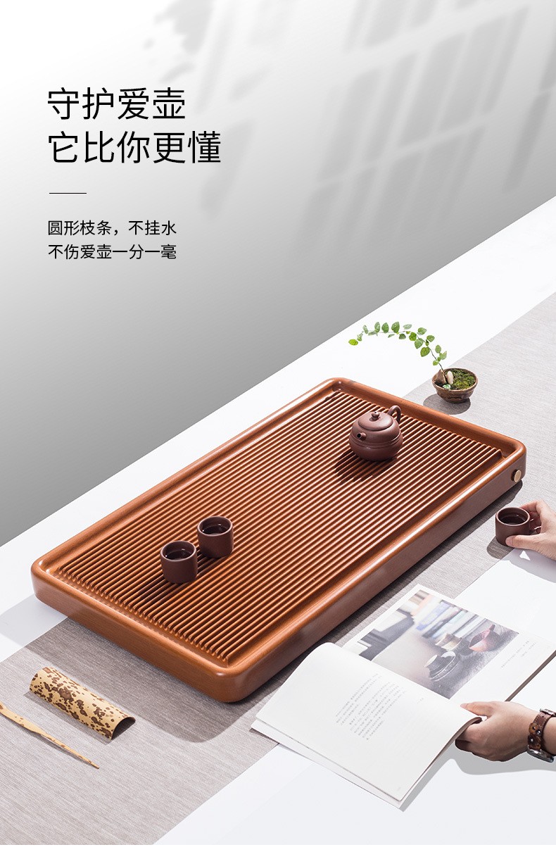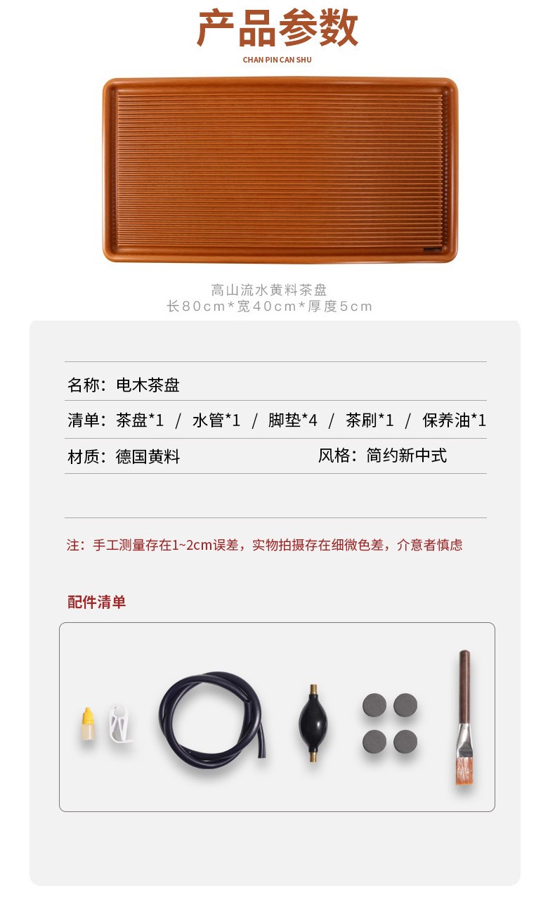 京峰阁 茶具高山流水黄料电胶木茶盘 实木家用排水式茶台 简约办公室整块功夫茶托盘80*40cm 高山流水茶盘