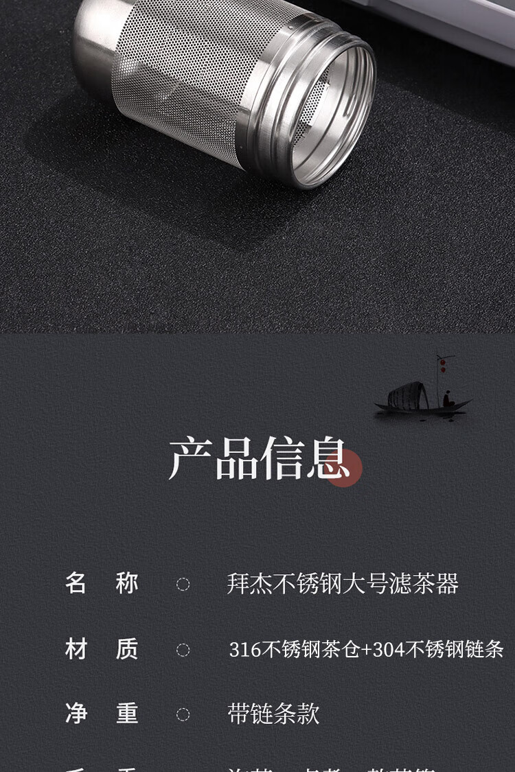 拜杰茶漏 茶仓茶叶过滤网泡茶过滤器茶漏球茶壶内胆 316不锈钢大号