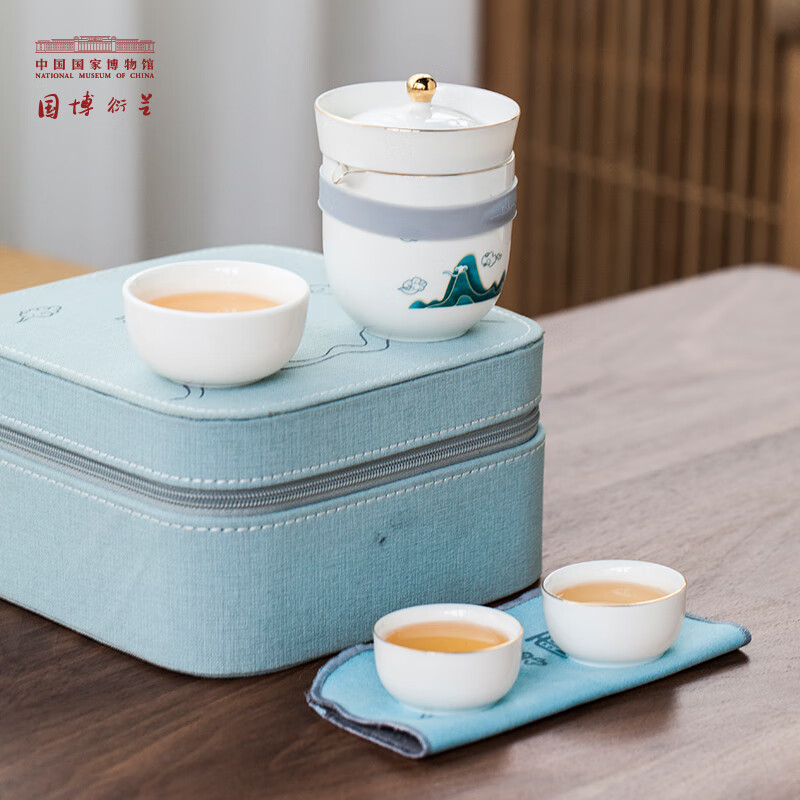 中国国家博物馆陶瓷快客杯便携茶具套装杯子茶壶文创礼品送朋友小杯礼盒礼物 溪山雨意快客杯