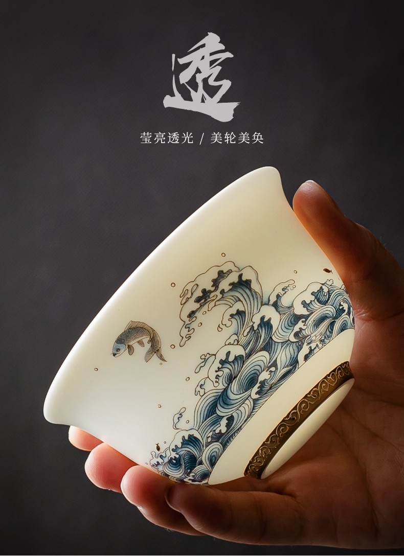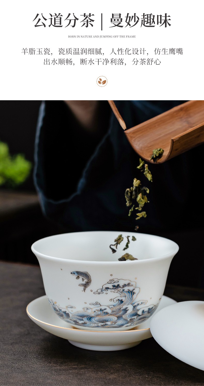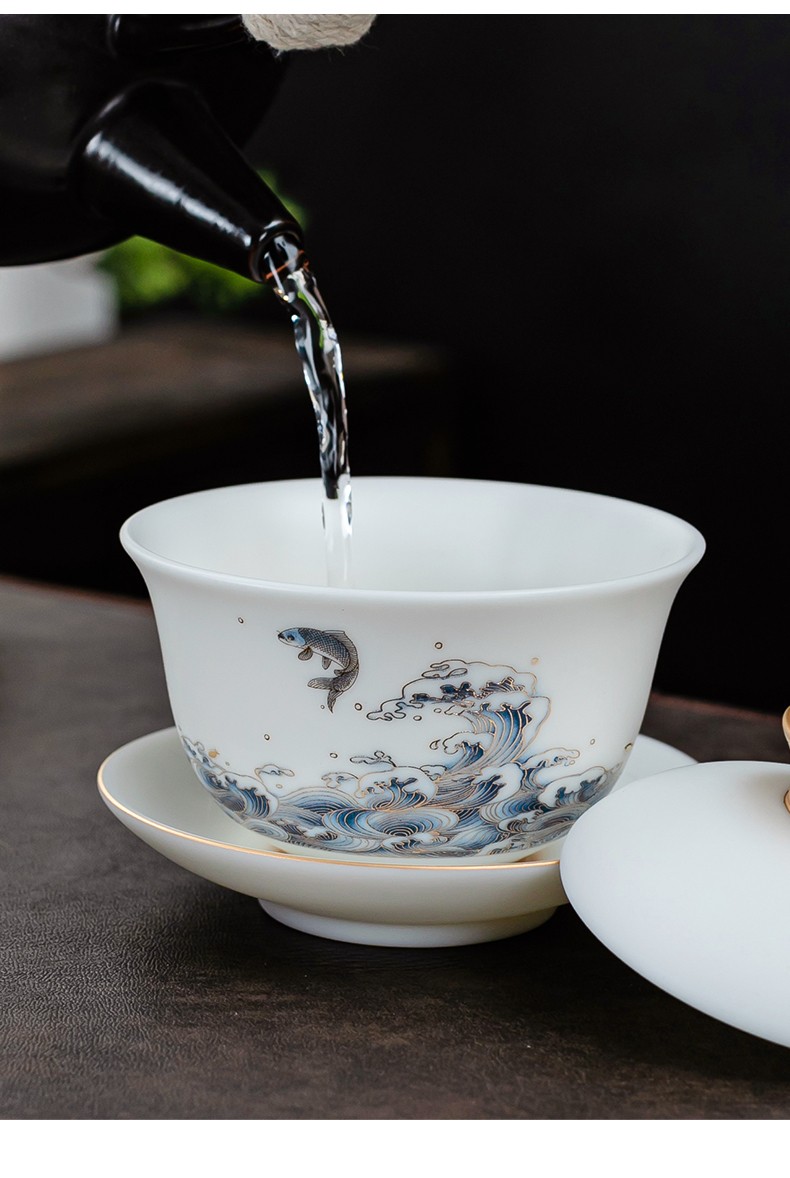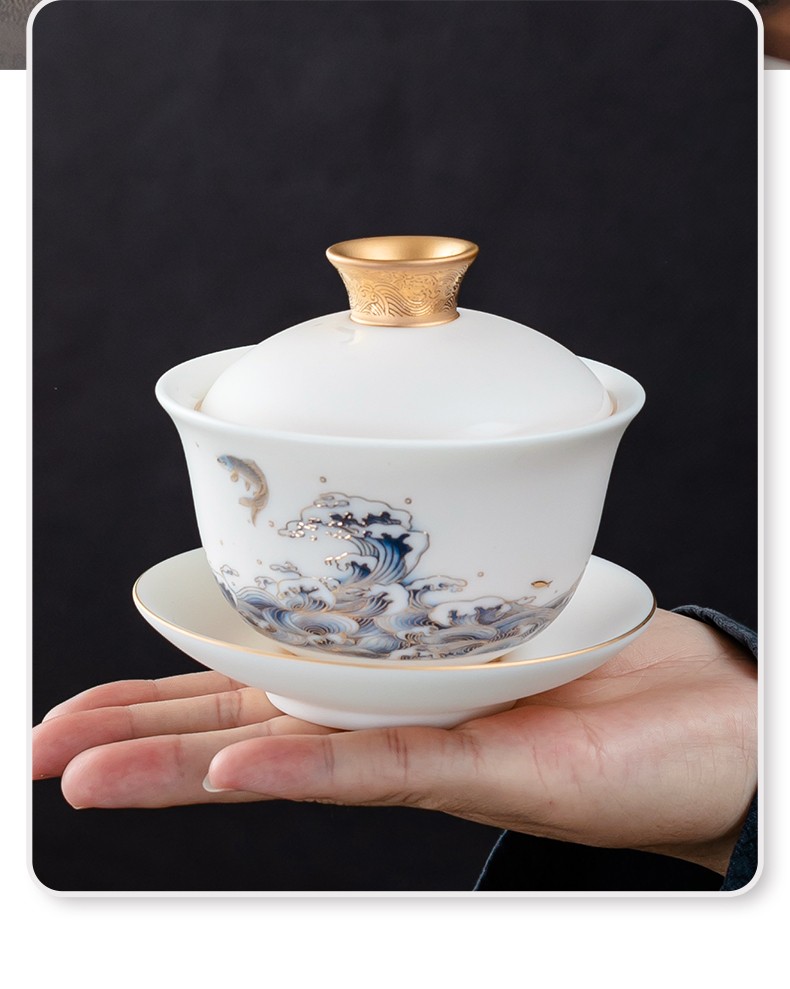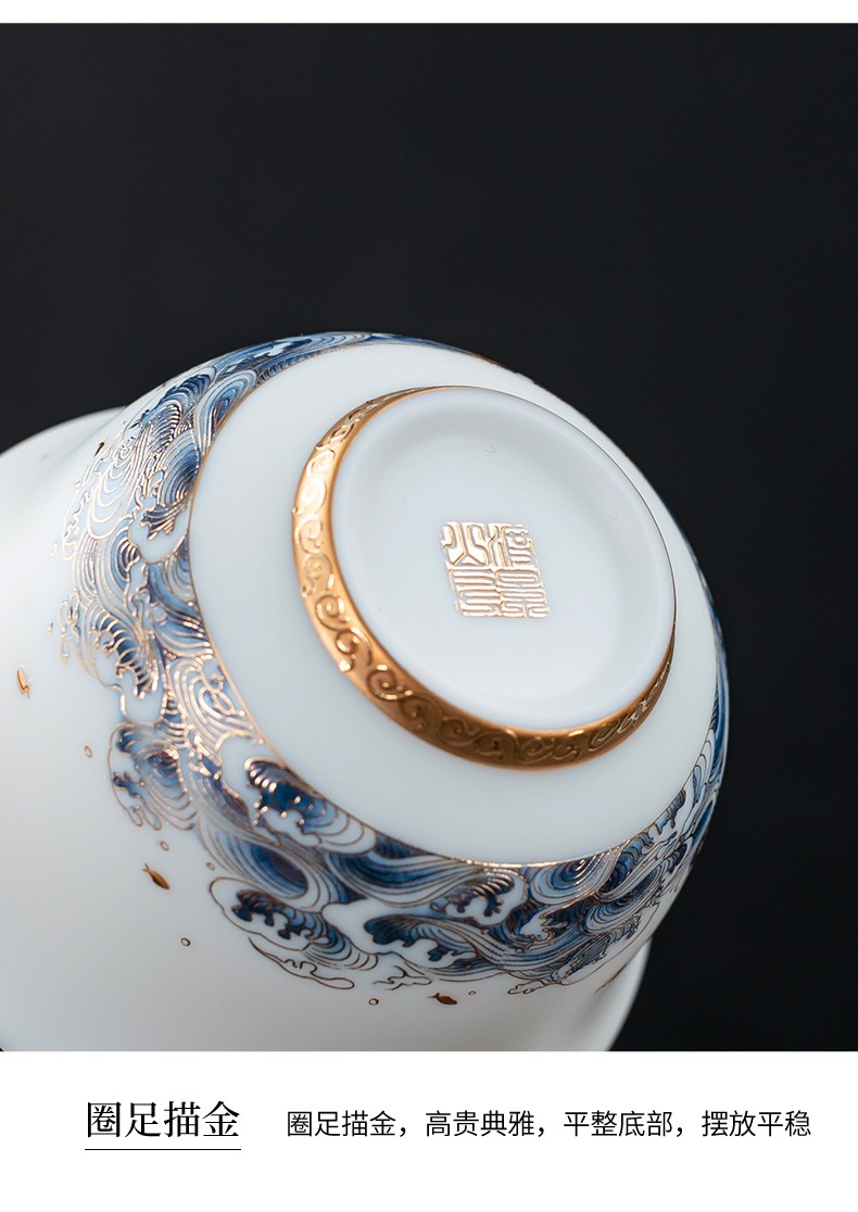 京峰阁 羊脂玉瓷圆融福悦盖碗功夫茶具套装办公室白瓷盖碗茶杯礼盒装容量160ml 圆融福悦盖碗