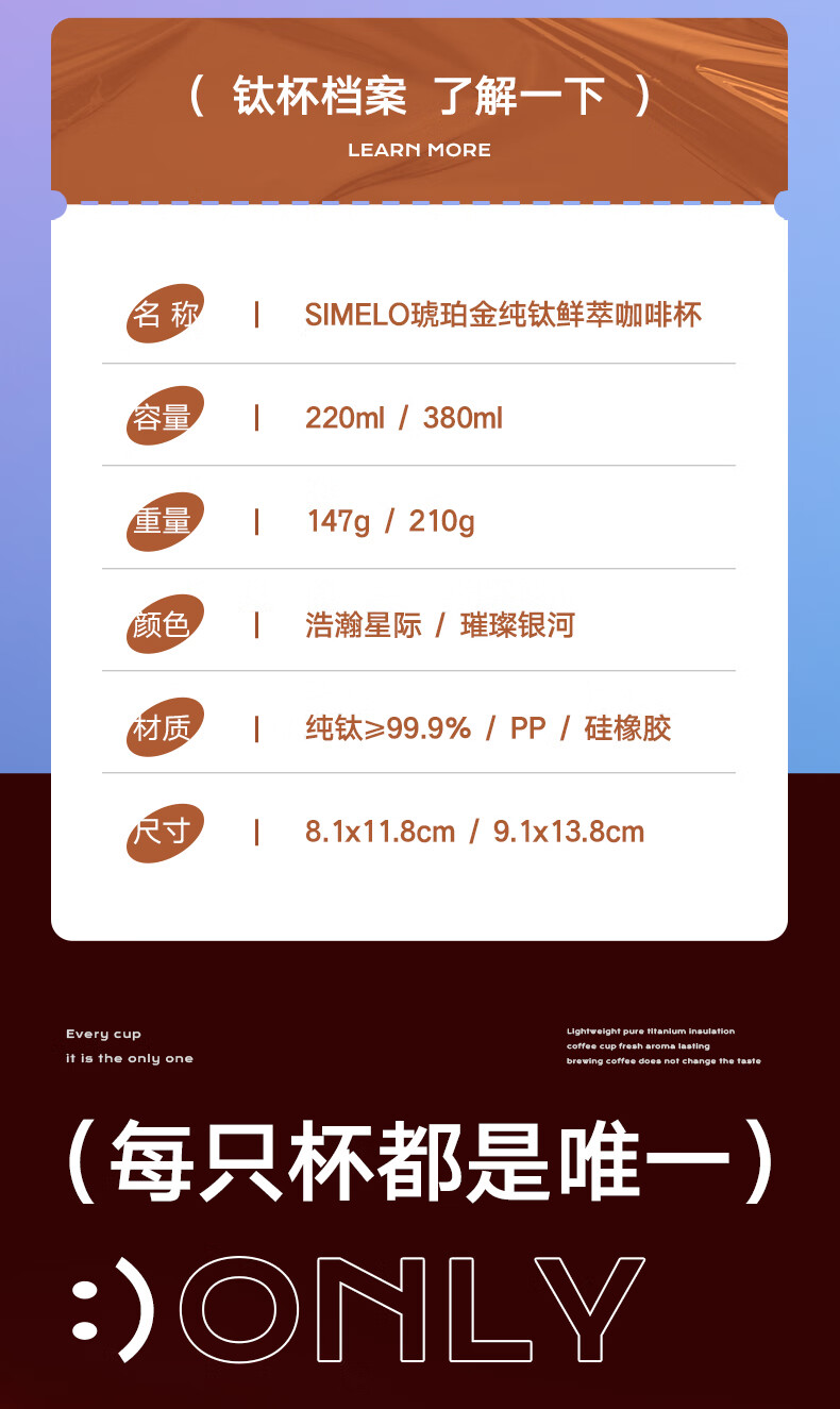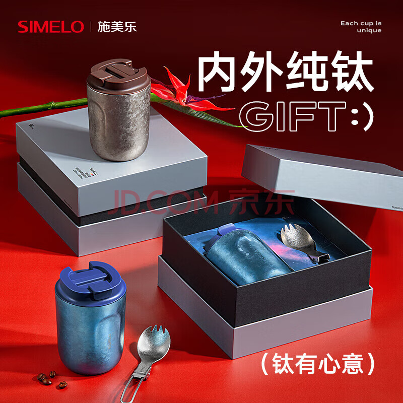 SIMELO施美乐纯钛便携咖啡杯钛杯高档女士保温杯礼品套装220ML浩瀚星际