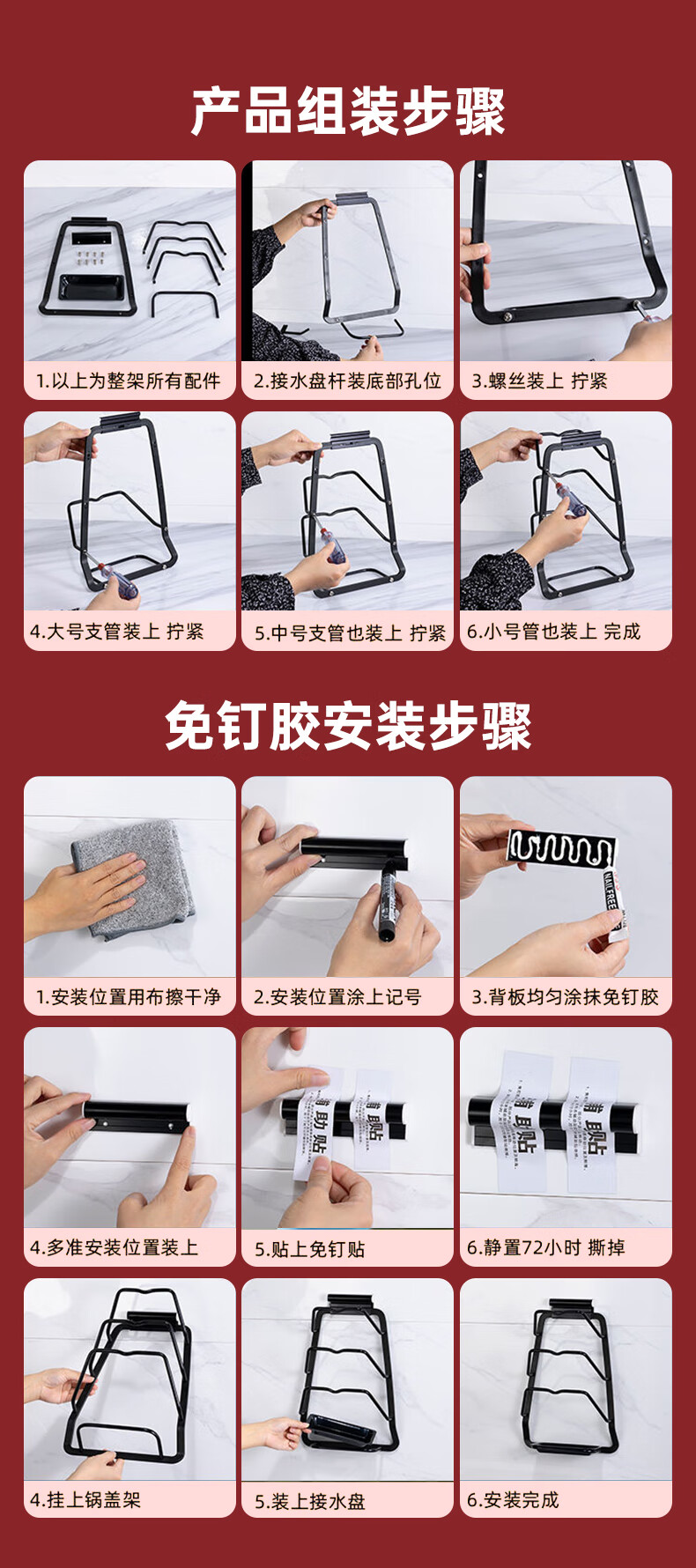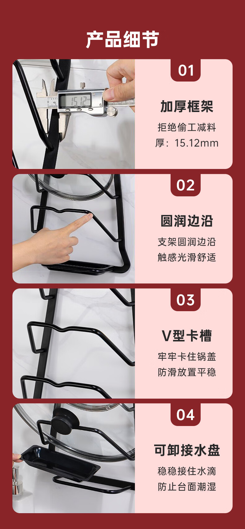 馨沛锅盖架厨房台面多功能免打孔置物架壁挂架放锅铲支架砧板锅架神器