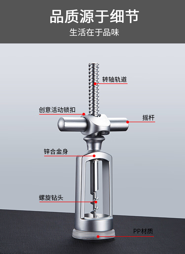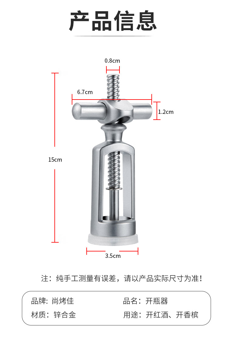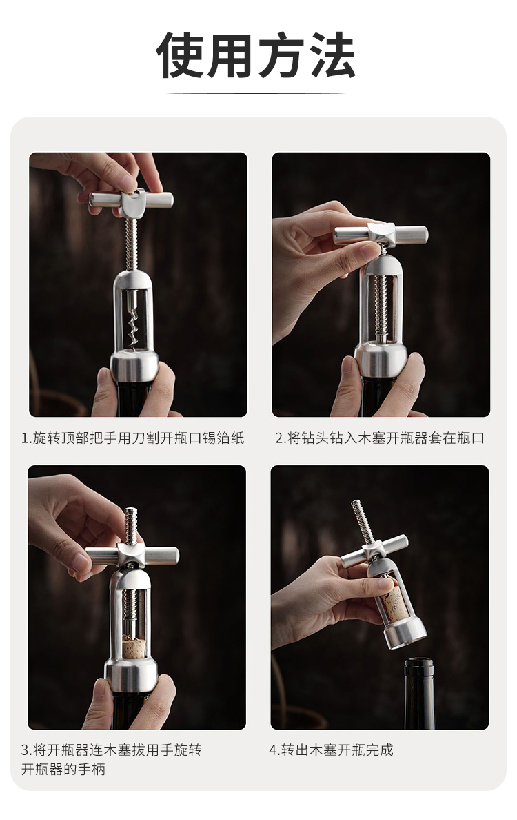 尚烤佳 红酒开瓶器 葡萄酒开酒器 多功能拔塞钻酒起子家用启瓶器 防木塞断裂开酒工具 开瓶器