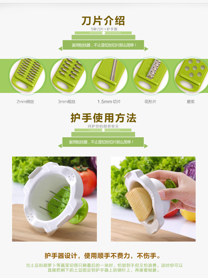 京惠思创 厨房多功能切丝切菜器【多功能 易清洁 不伤手】5刀片装 刨丝器擦丝器土豆丝黄瓜切片器JH9039
