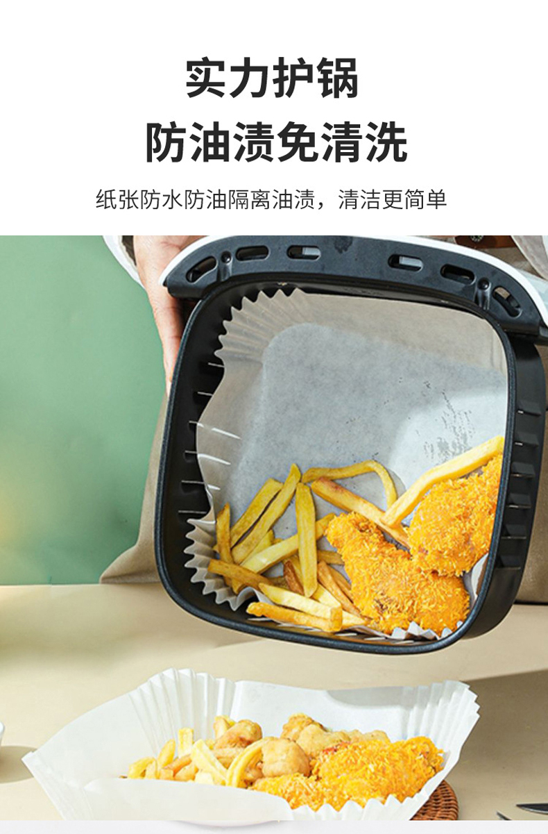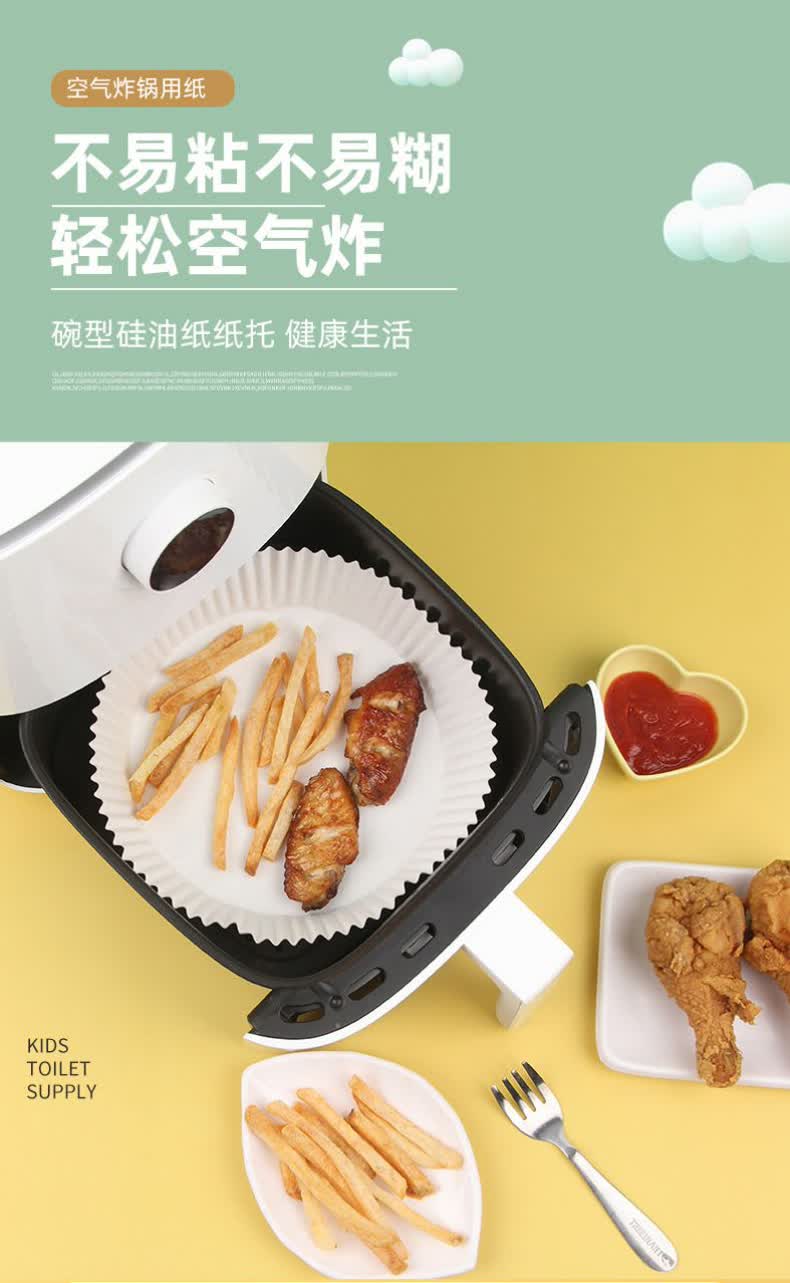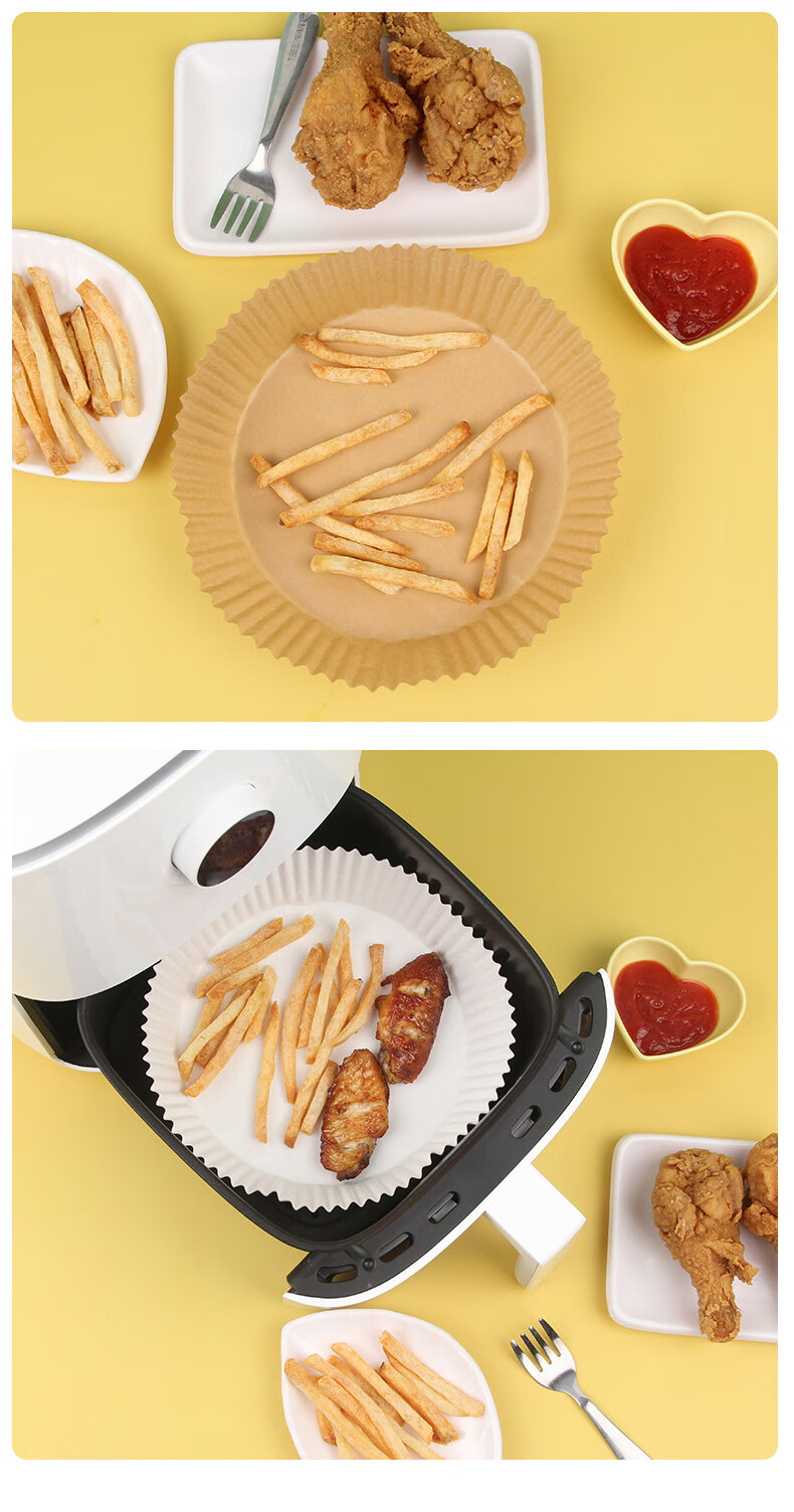 沃德百惠(WORTHBUY)空气炸锅专用纸硅油纸吸油纸烘焙烧烤方形圆形食品级家用烤箱纸垫 大50只装