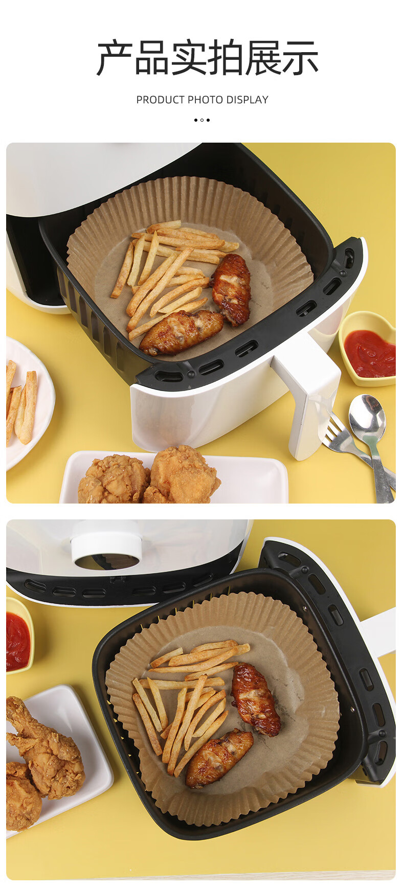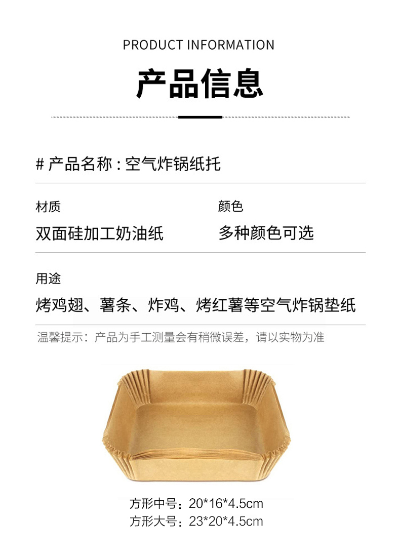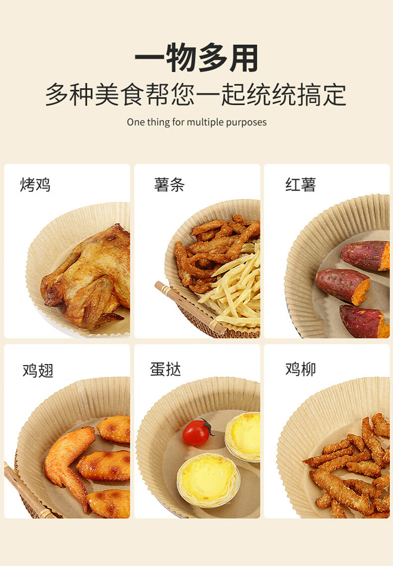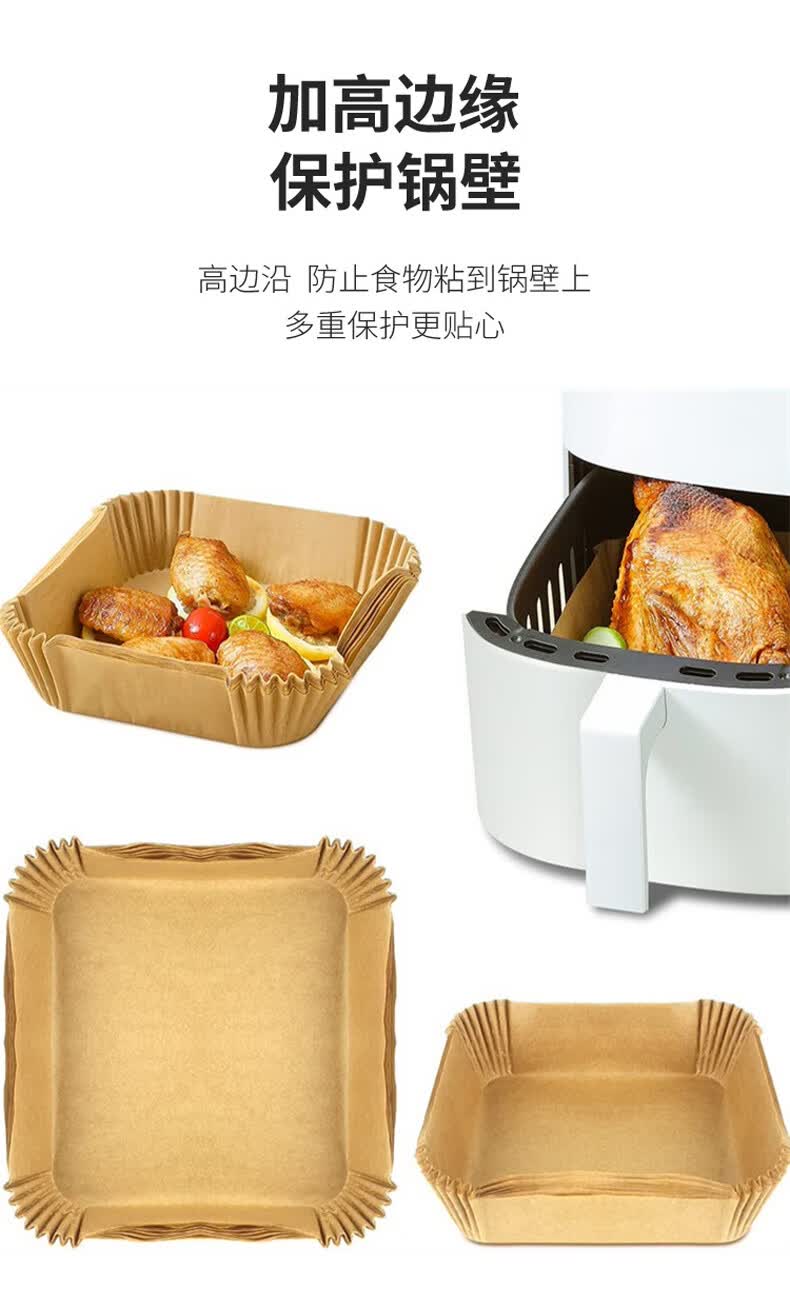 沃德百惠(WORTHBUY)空气炸锅专用纸硅油纸吸油纸烘焙烧烤方形圆形食品级家用烤箱纸垫 大50只装