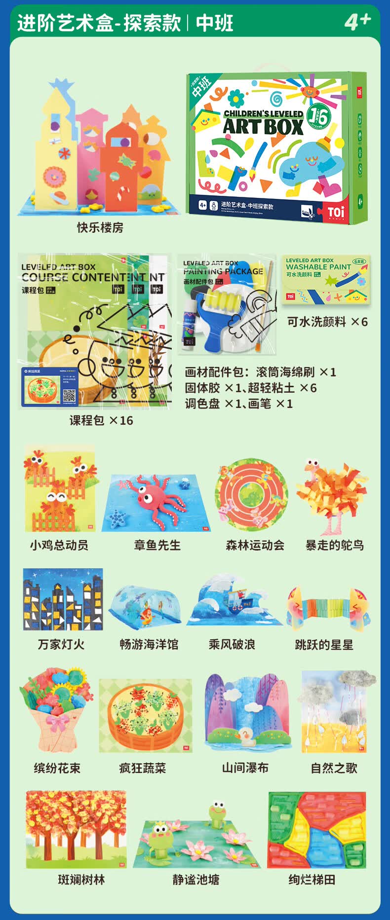 TOI儿童美术进阶创意手工艺术盒diy儿童制作材料包创意绘画早教玩具3-6岁男孩女孩生日礼物礼物 中班探索款