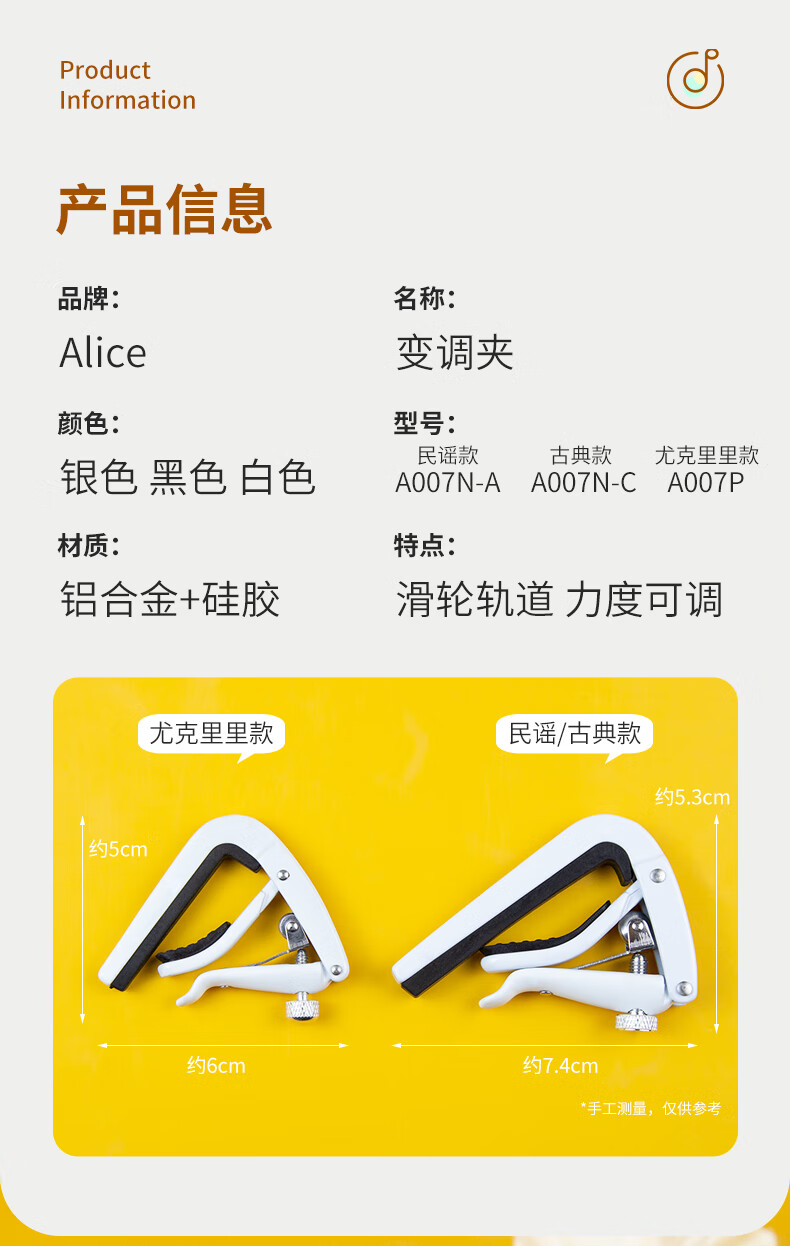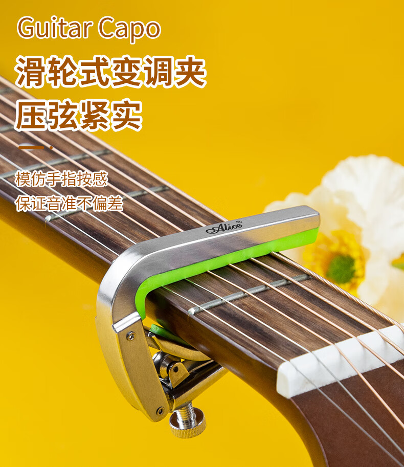 NYMAN 滑动民谣吉他变调夹专用金属吉他夹子古典吉他木吉他变音夹子尤克里里Capo个性转调民谣吉他款银色