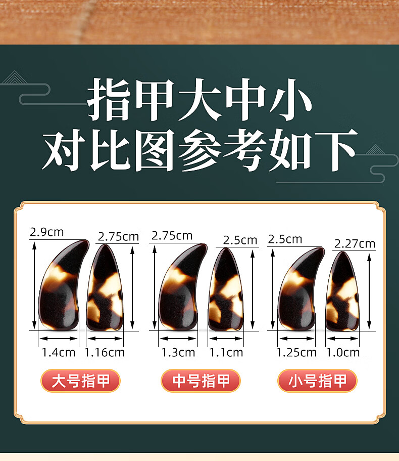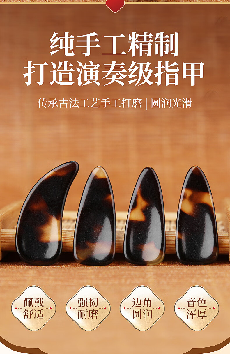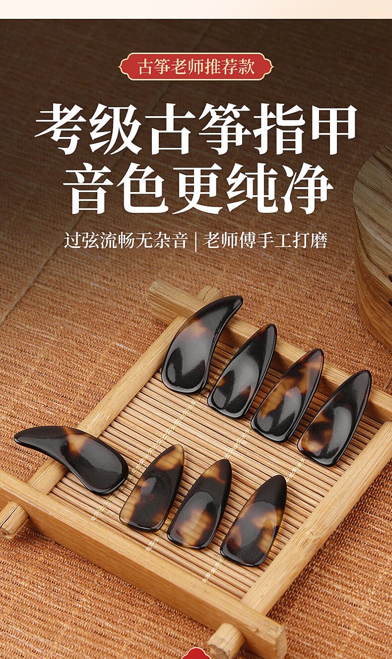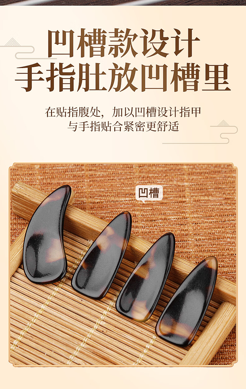 敦煌 曼尔乐器古筝指甲 玳瑁色考级专用古筝甲片 成人儿童凹槽指甲 古筝配件中号