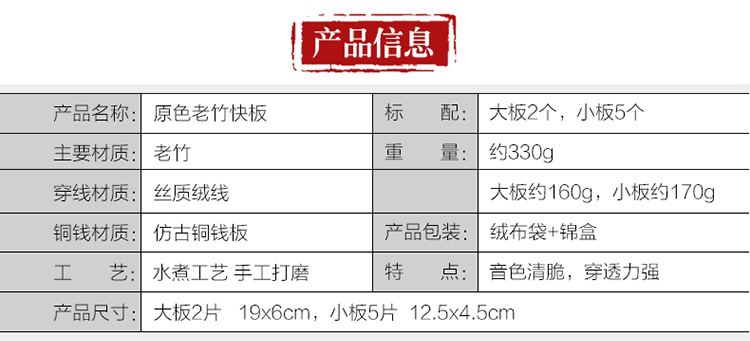相思鸟 快板竹板 专业演奏演出成年人儿童快板 5片竹子响板 大号成年人原色