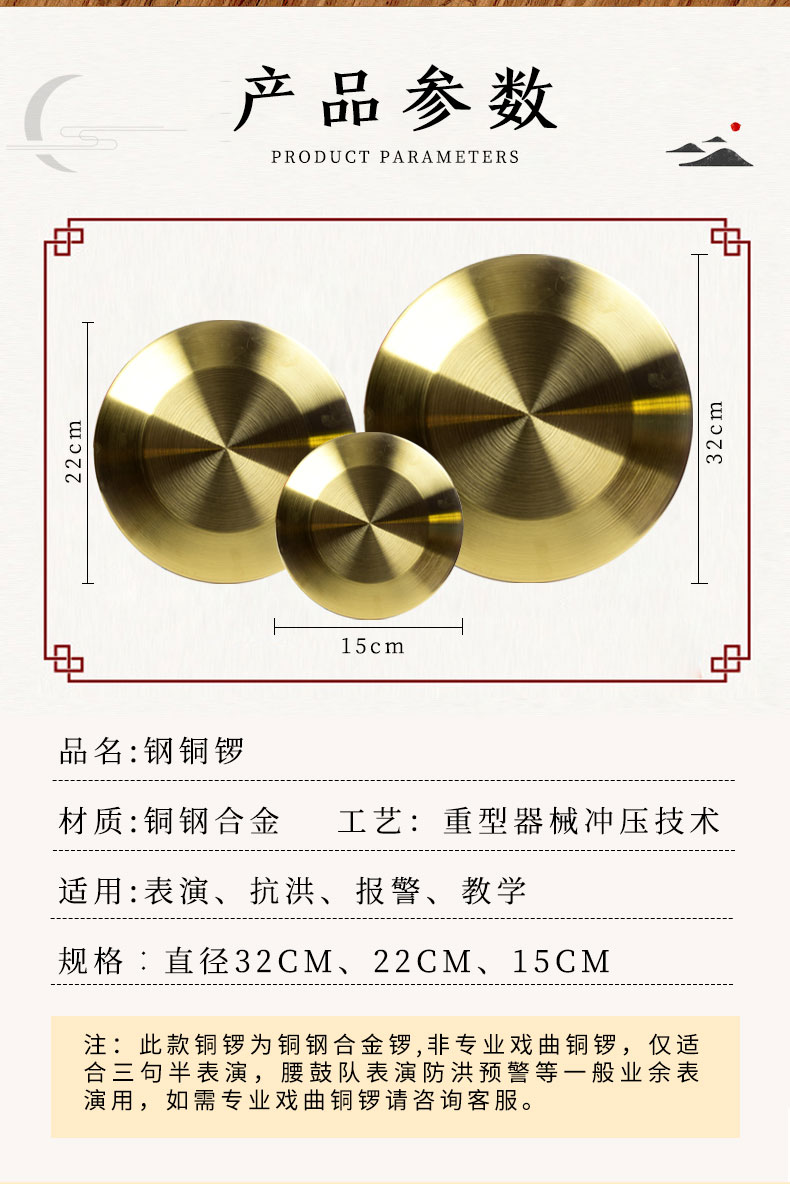 妙笙 合金铜锣 22cm 三句半道具乐器锣鼓响锣警锣