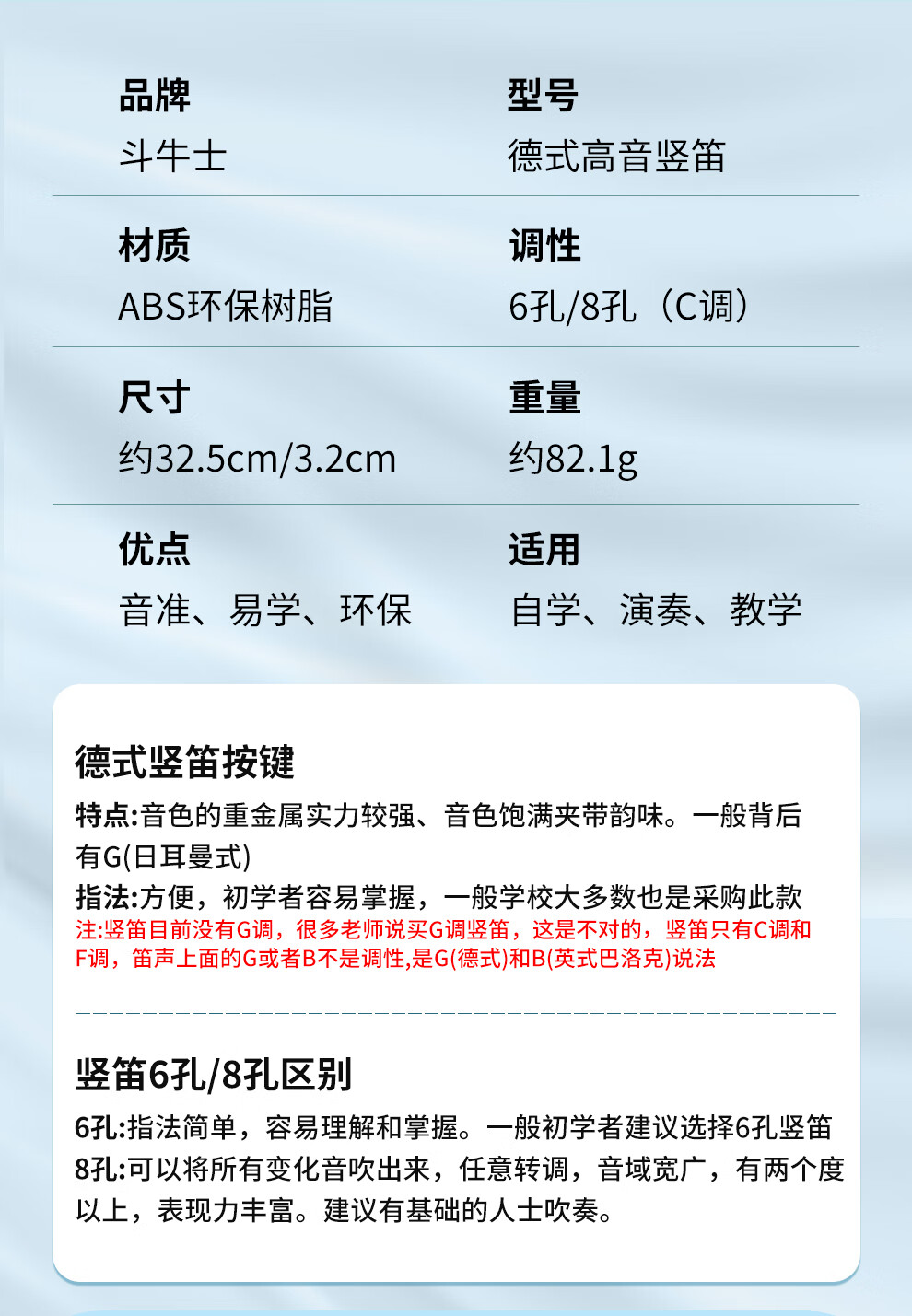 Bullfighter斗牛士竖笛6/六孔德式儿童初学教学校入门乐器
