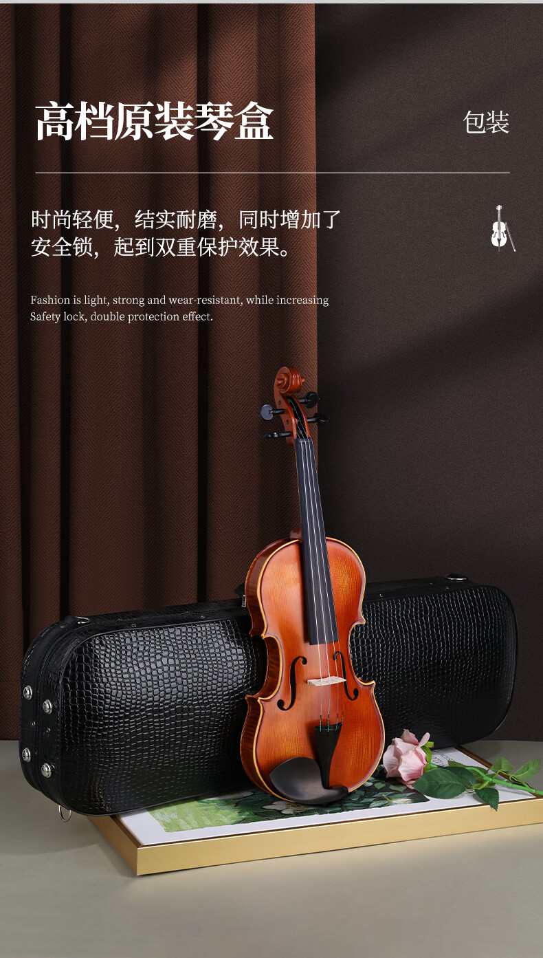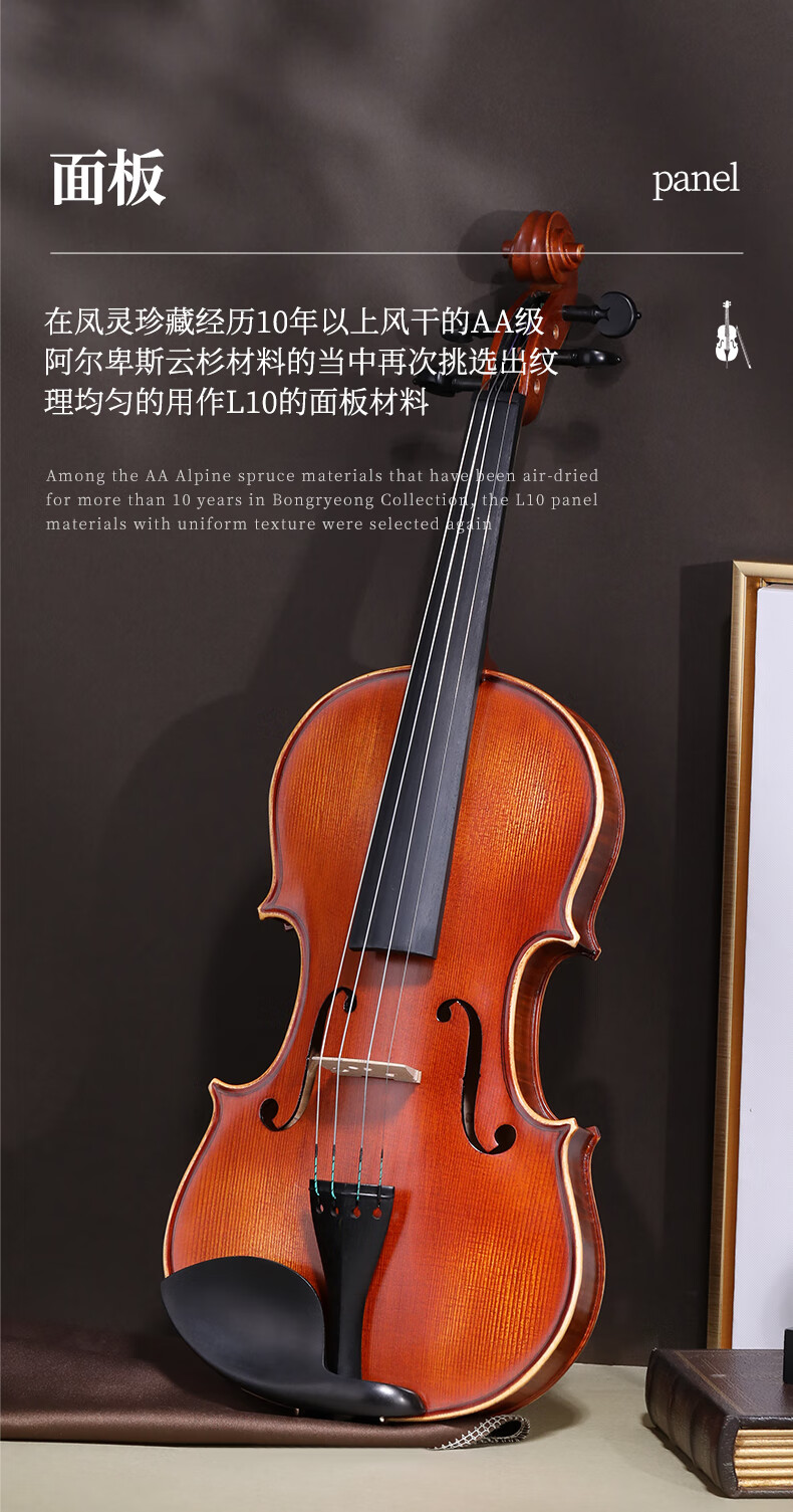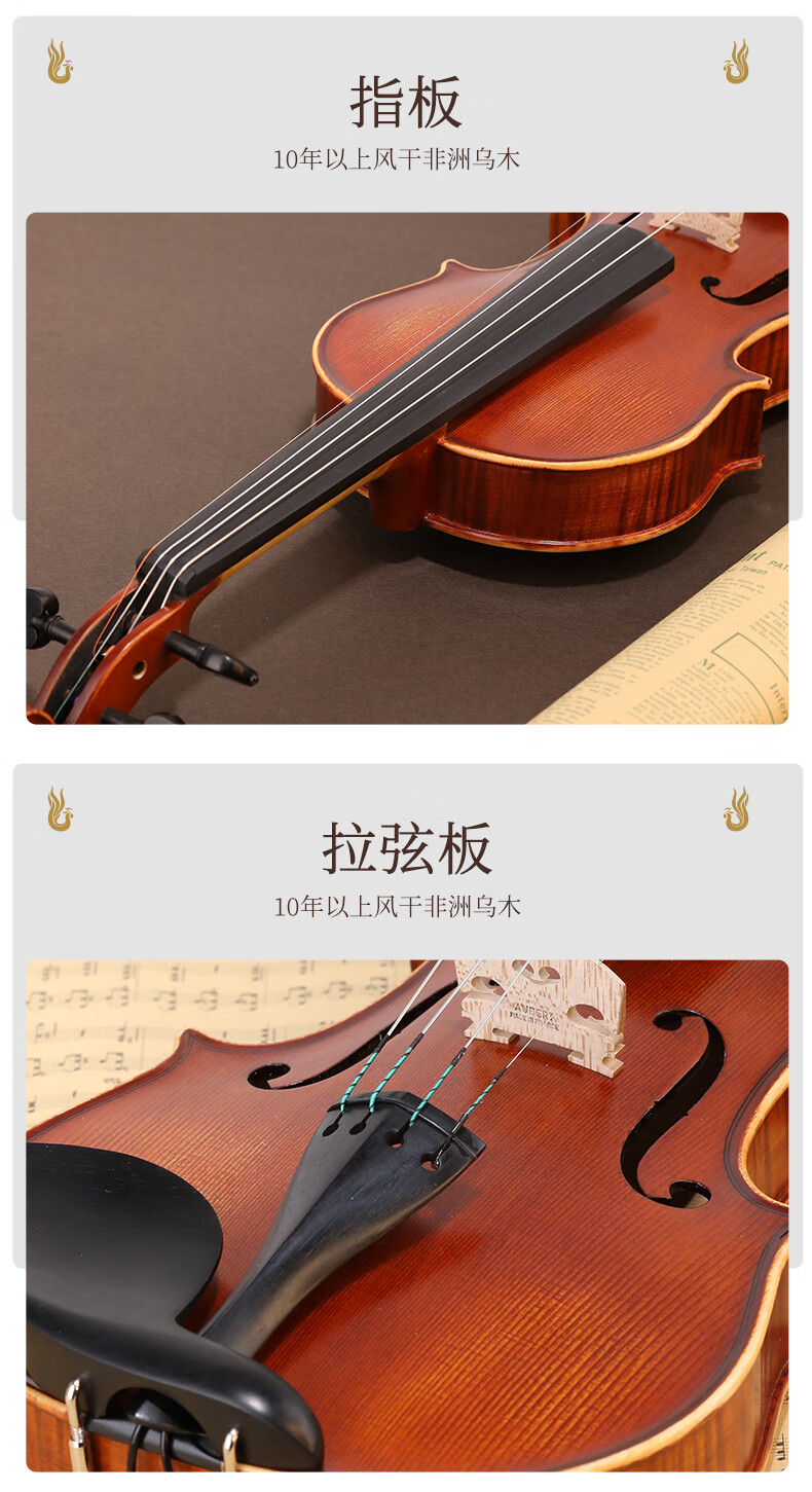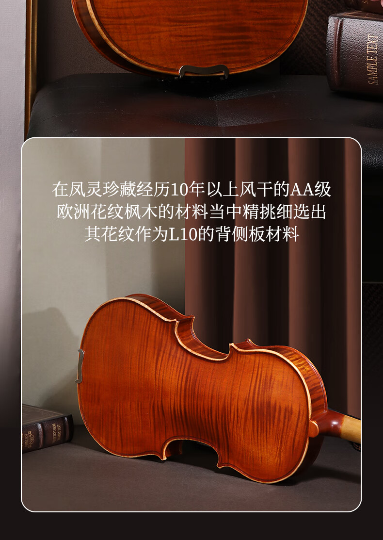 凤灵(FineLegend)专业演奏级独板整板小提琴斯式成人儿童整板独板小提琴 4/4