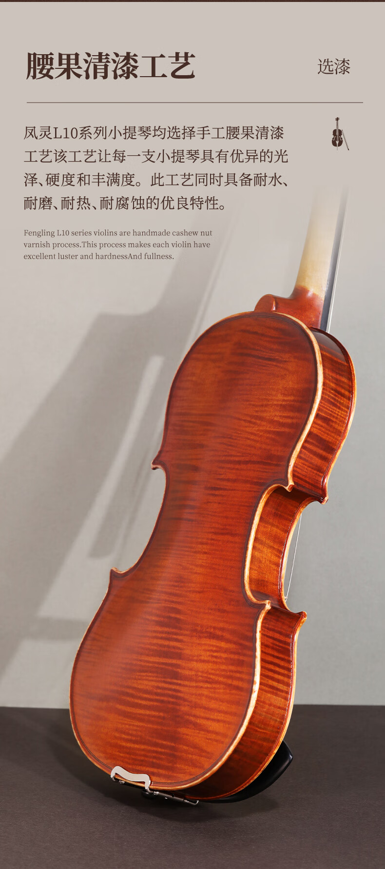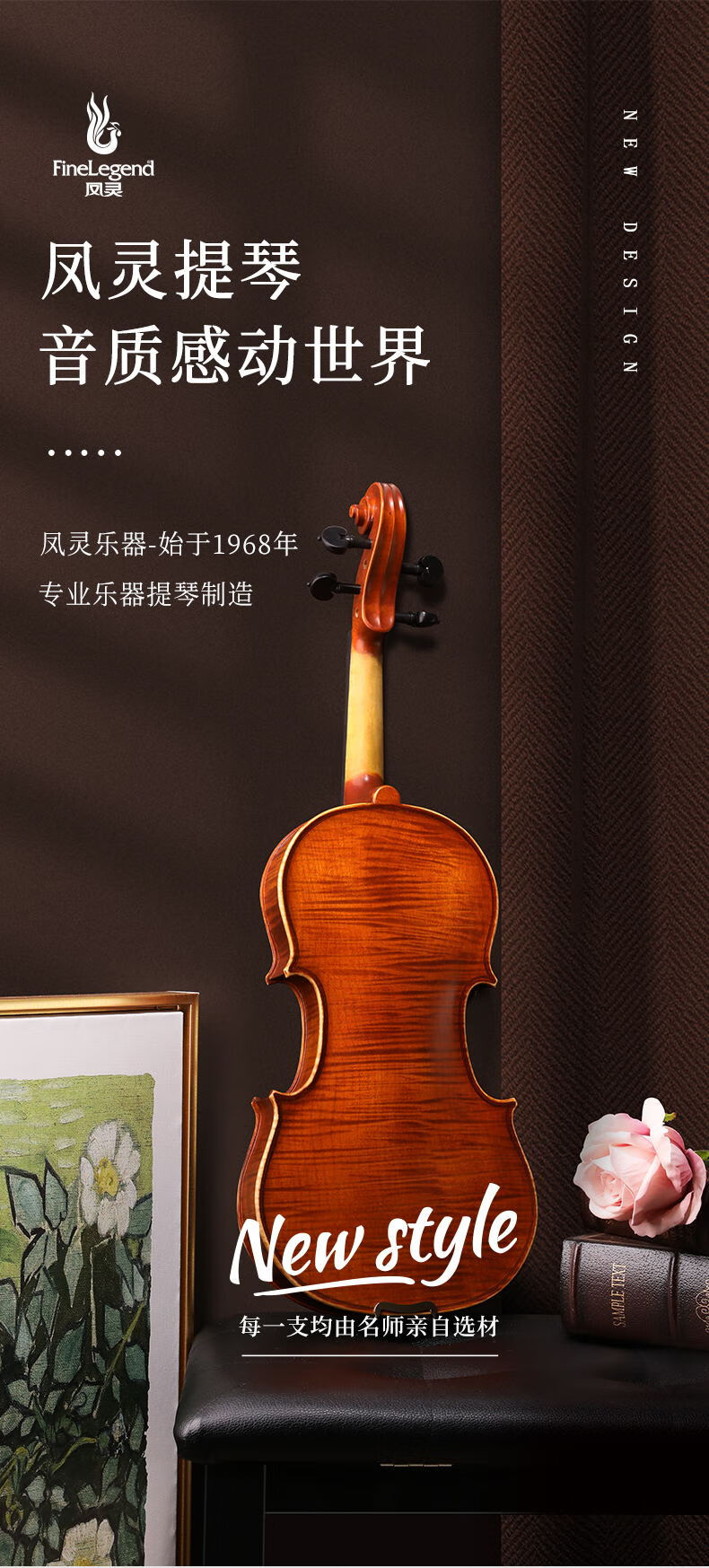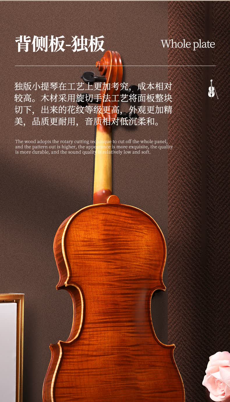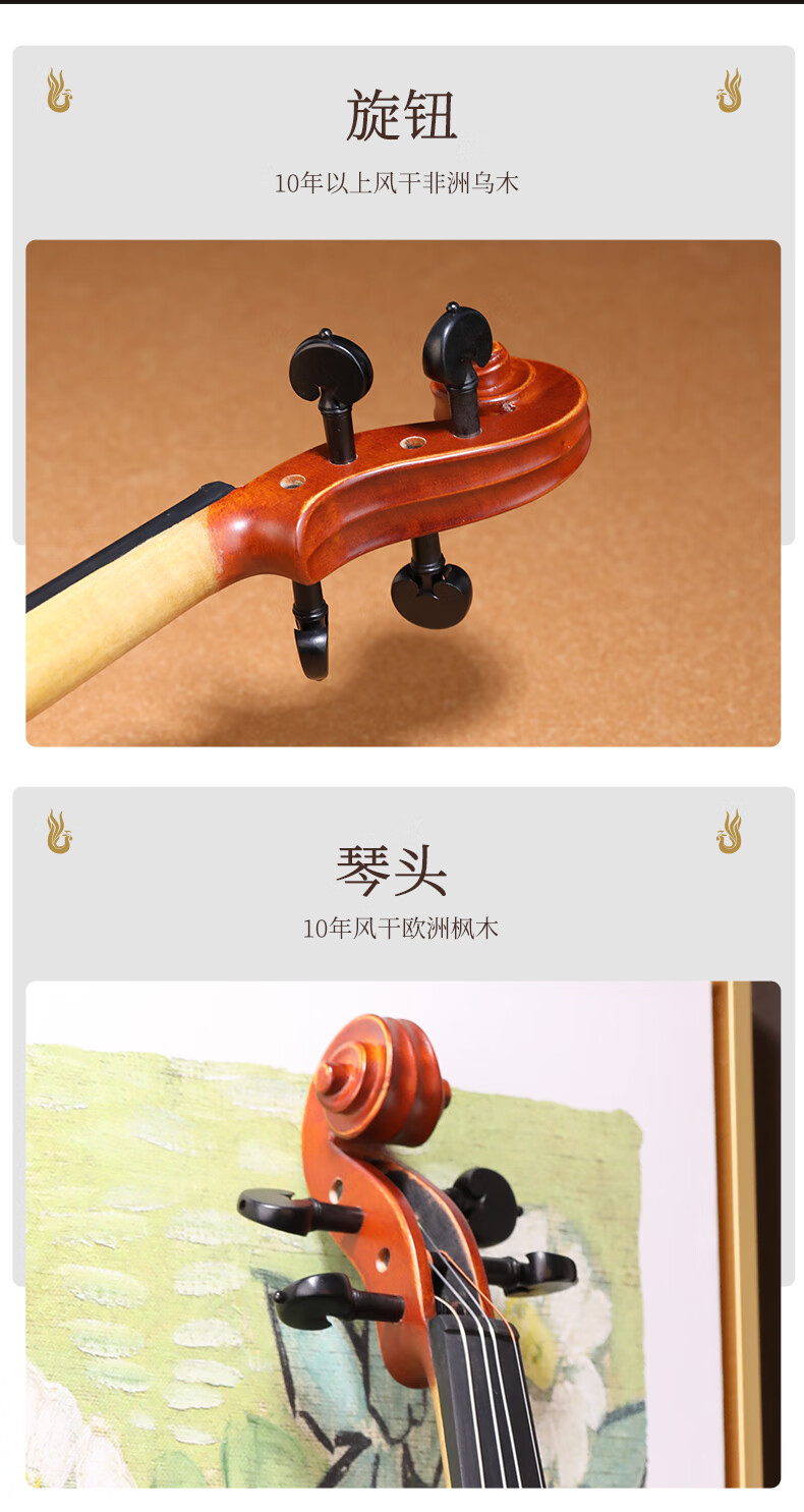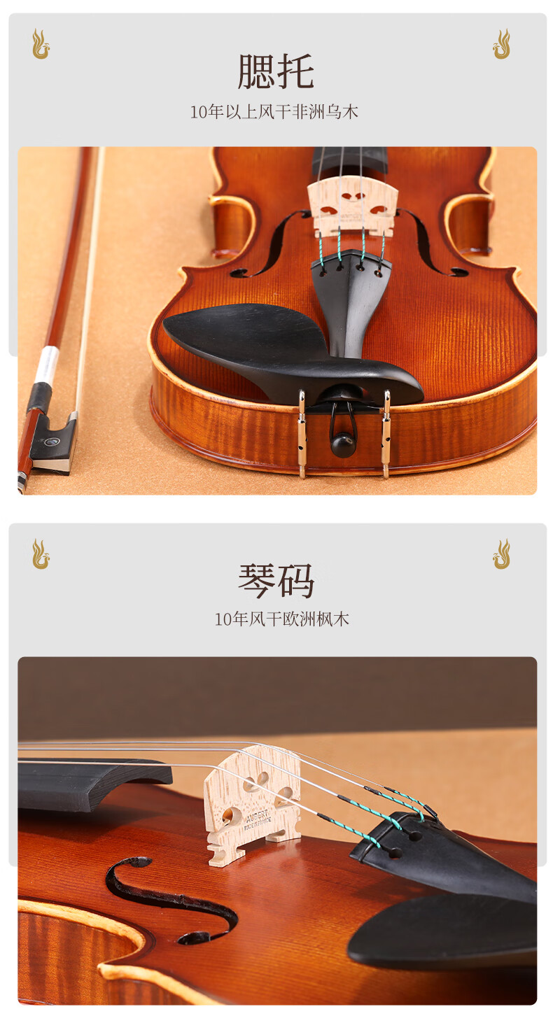 凤灵(FineLegend)专业演奏级独板整板小提琴斯式成人儿童整板独板小提琴 4/4