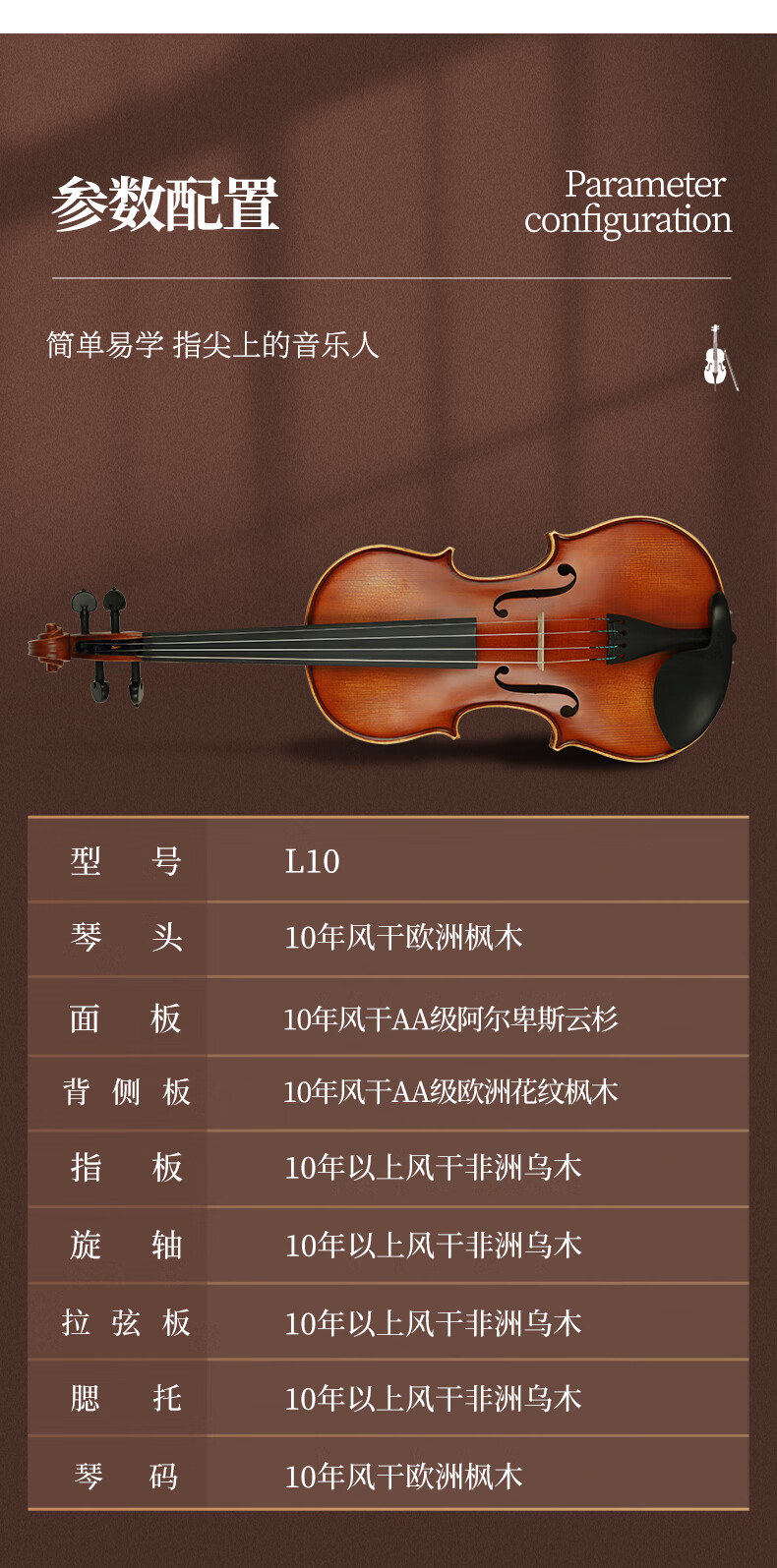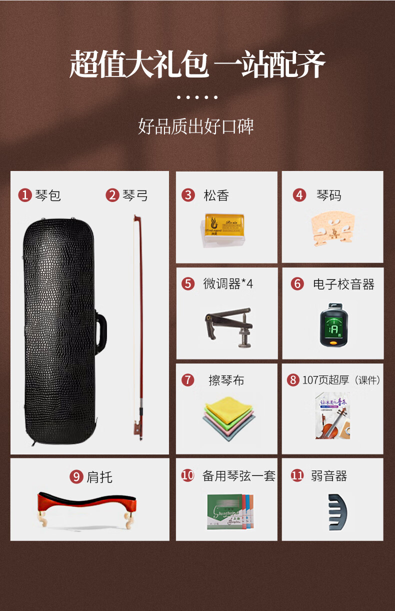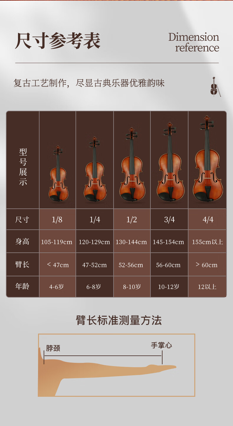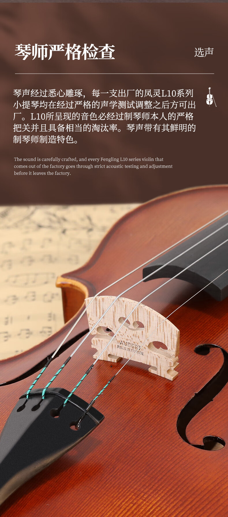 凤灵(FineLegend)专业演奏级独板整板小提琴斯式成人儿童整板独板小提琴 4/4