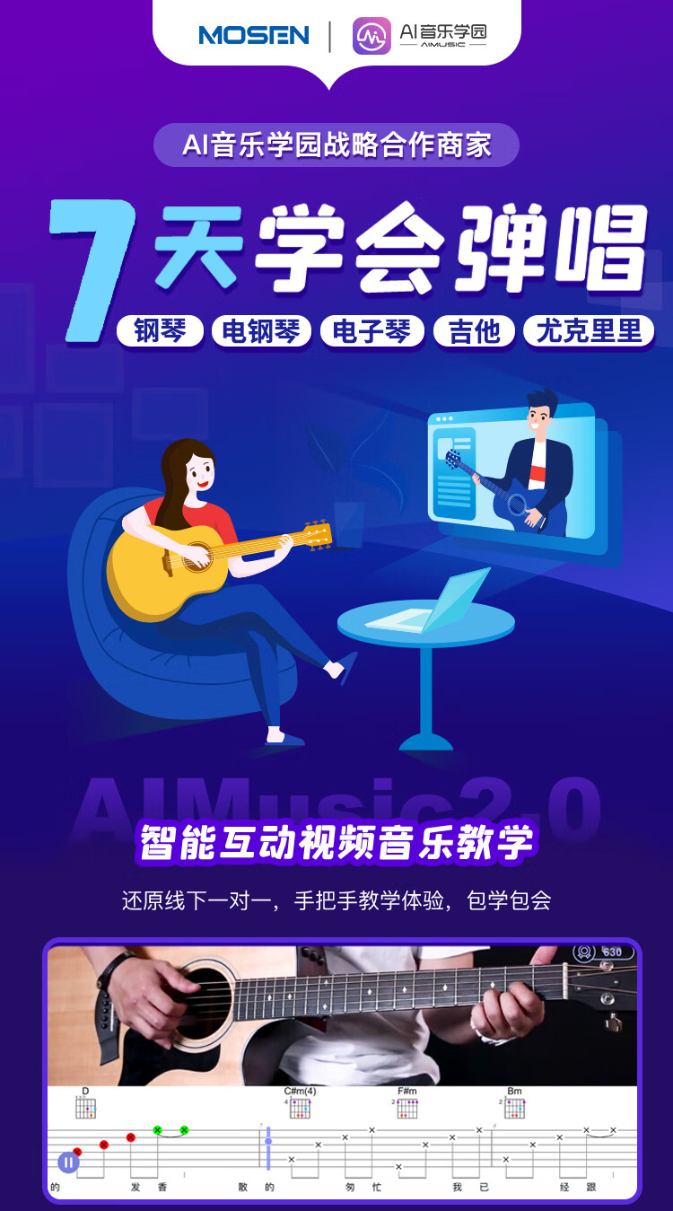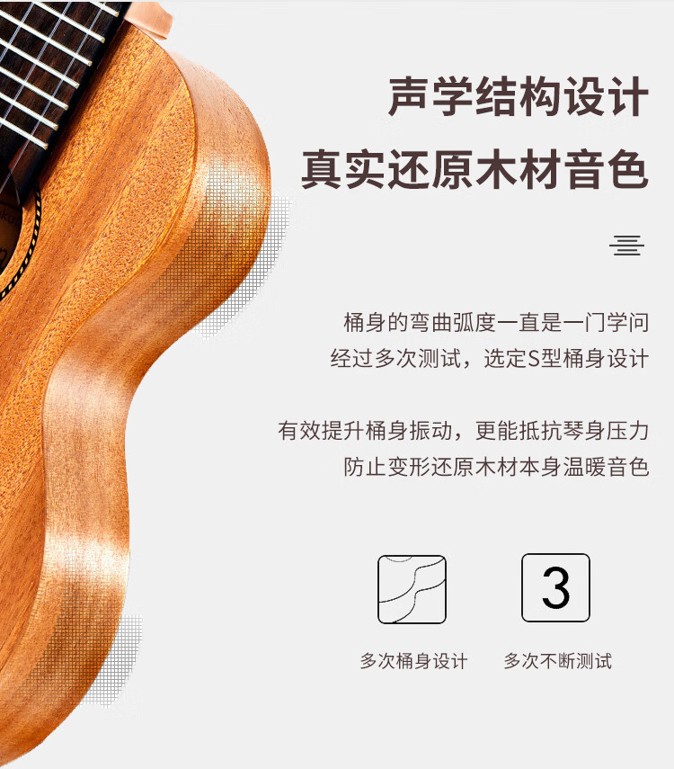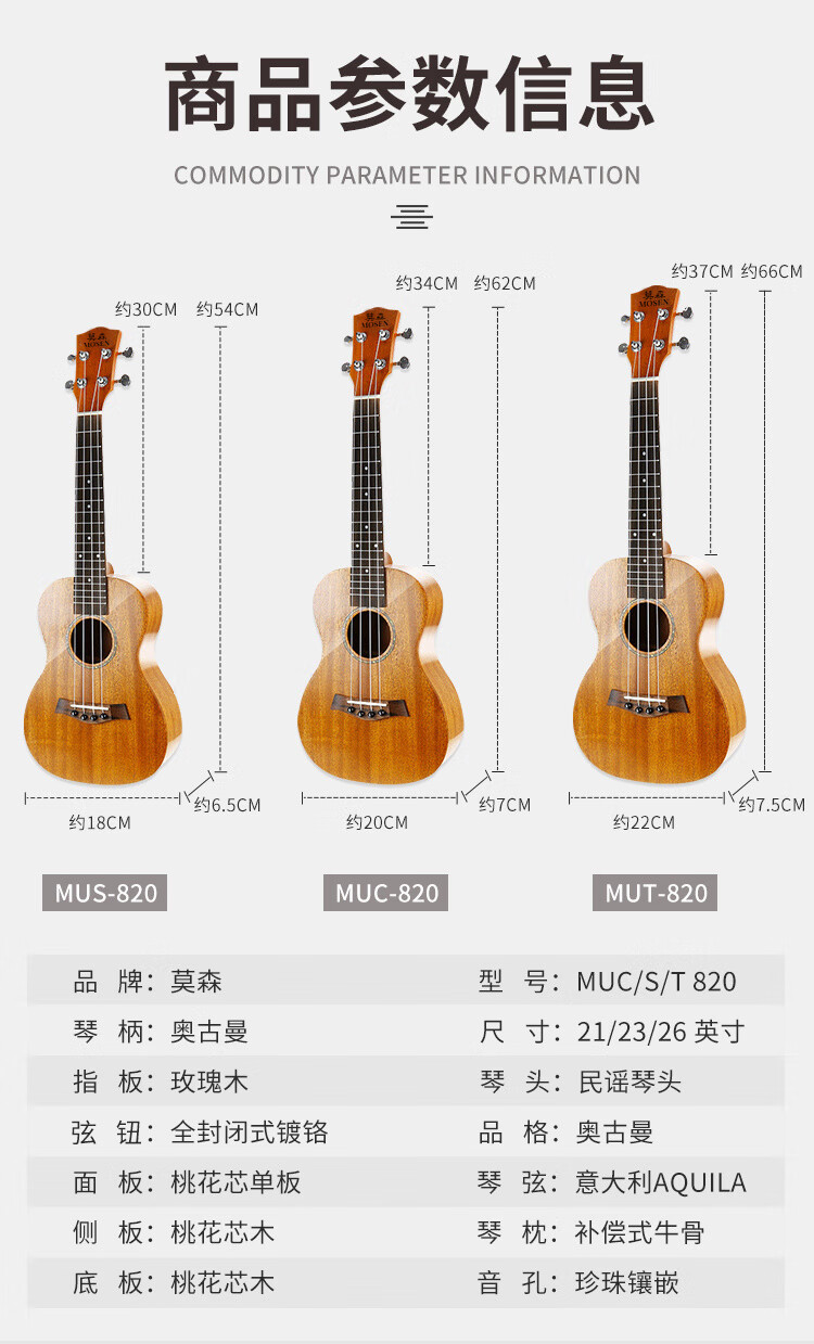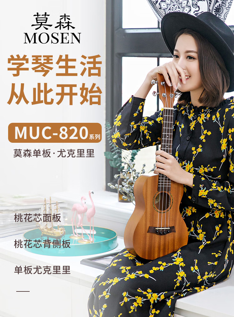 莫森(MOSEN)MUC820尤克里里乌克丽丽ukulele进阶单板桃花芯迷你小吉他23英寸