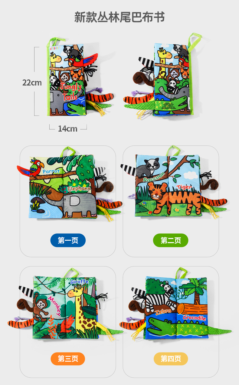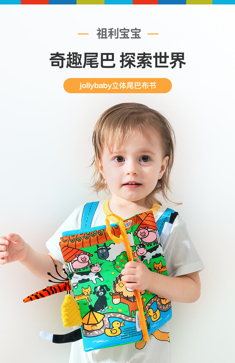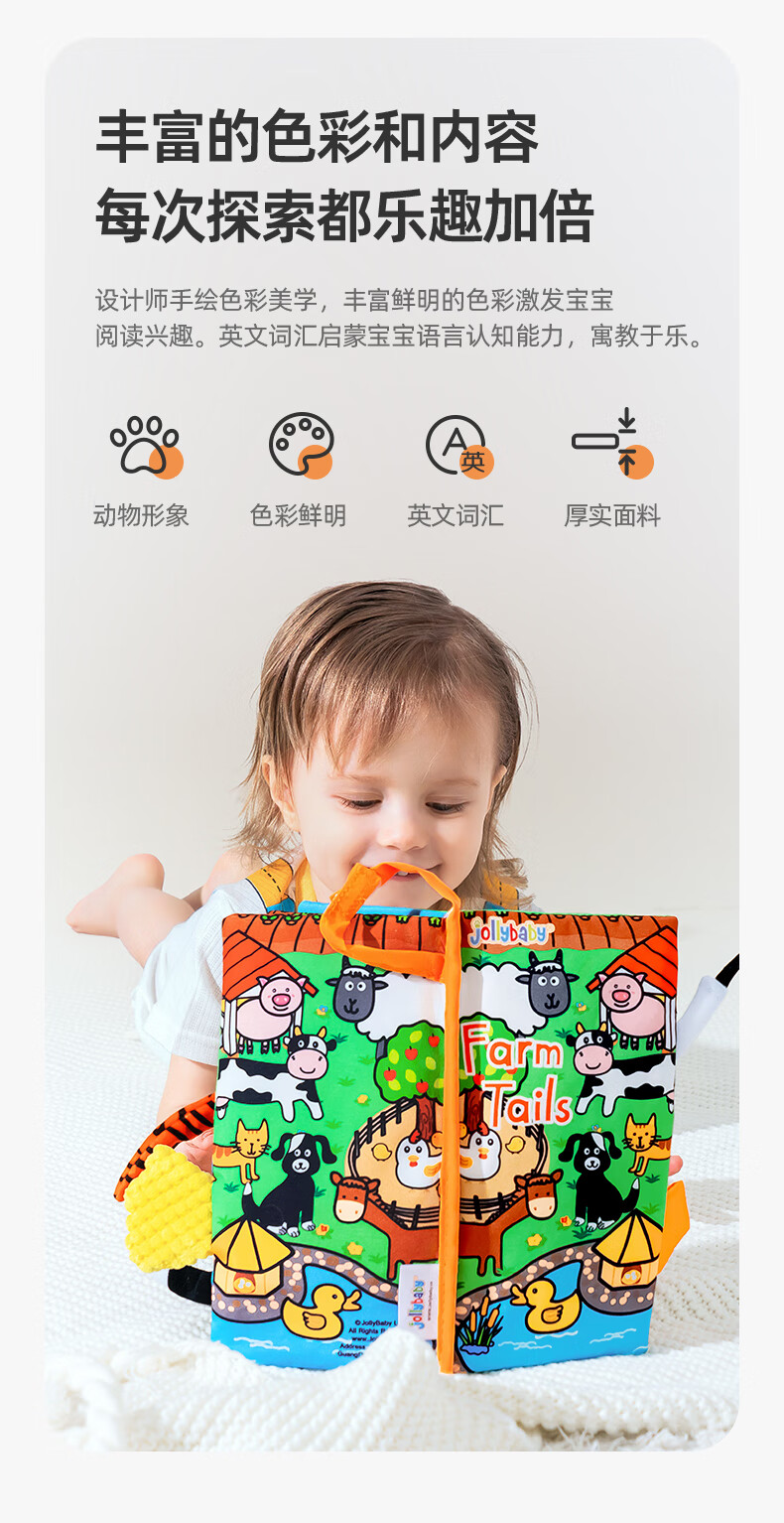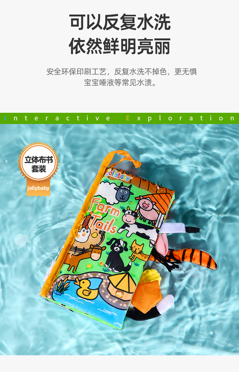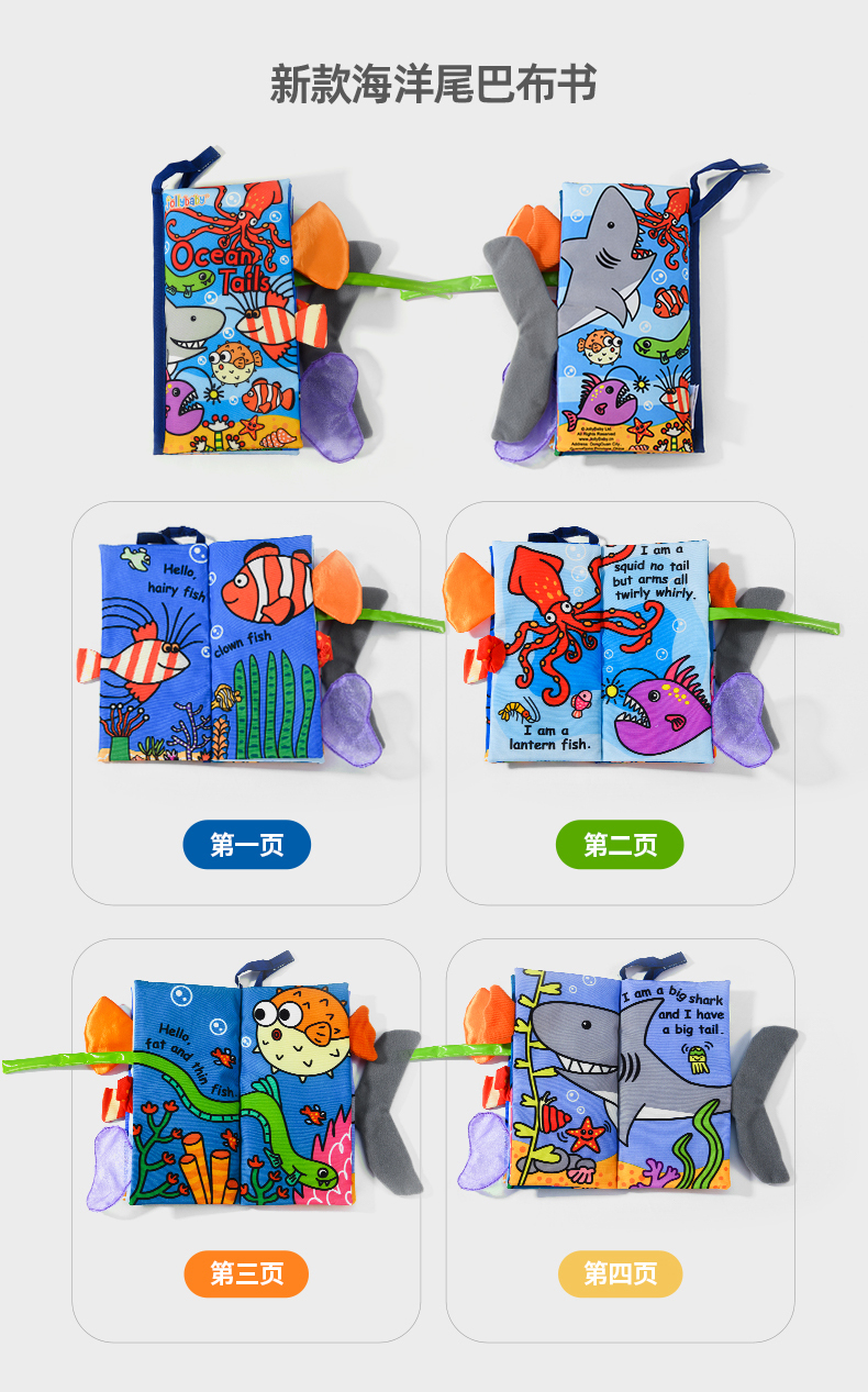 jollybaby早教婴儿0-6-12个月宝宝玩具布书可咬撕可水洗海洋尾巴布书礼品