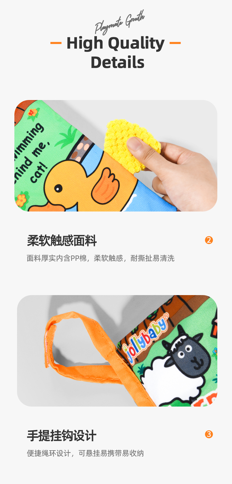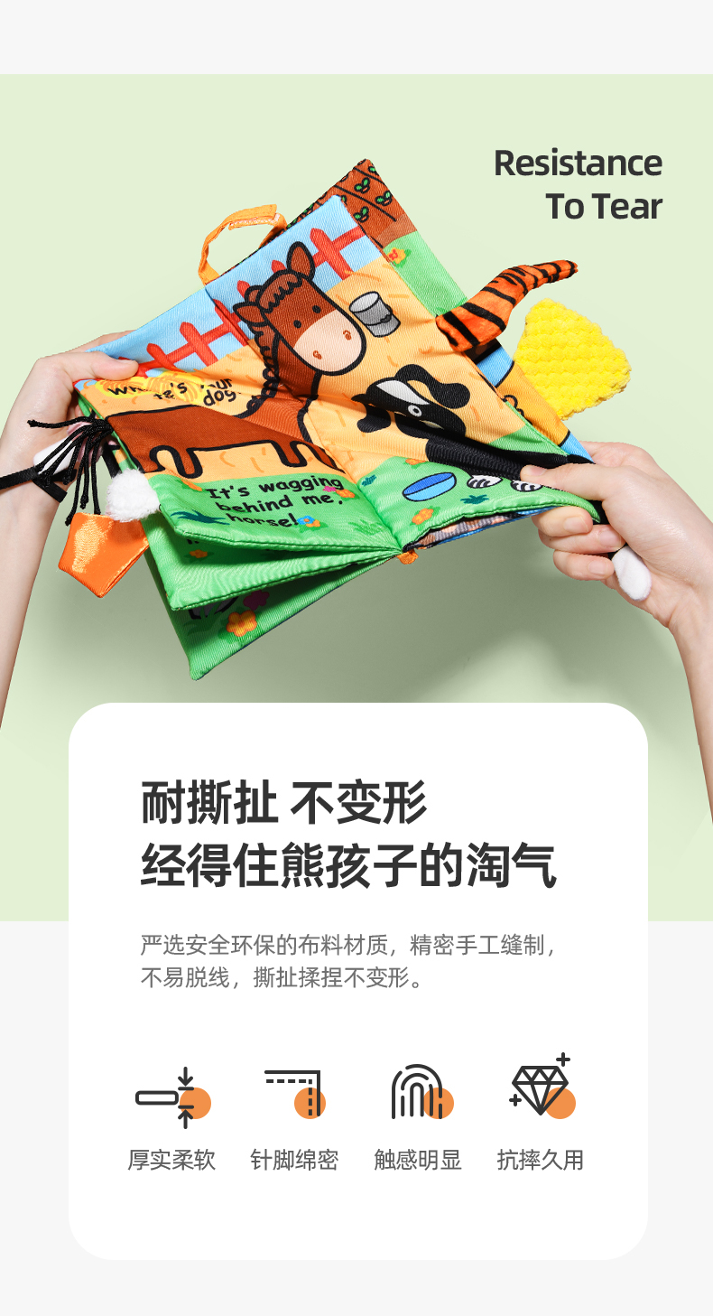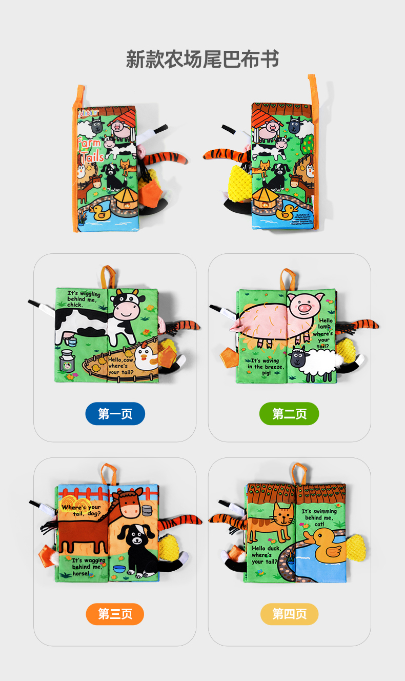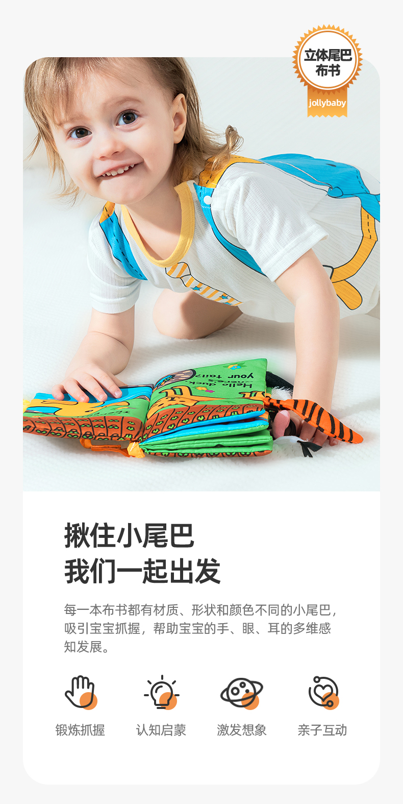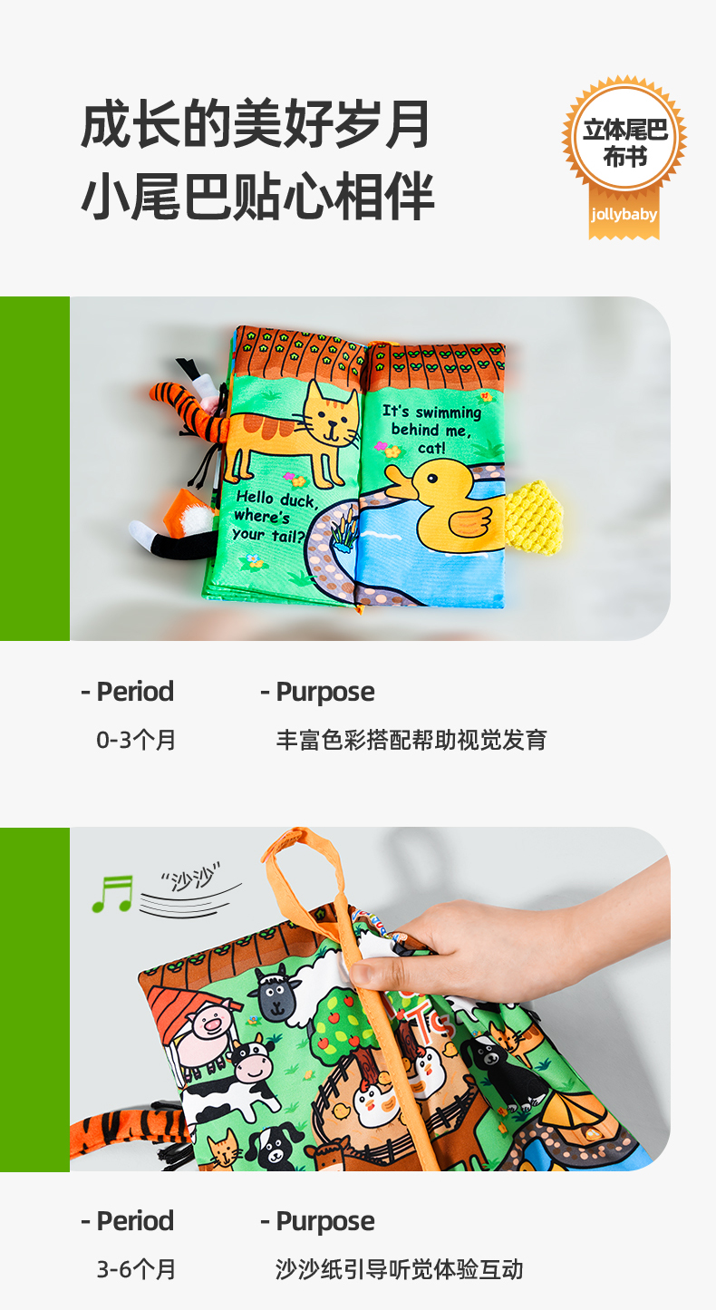 jollybaby早教婴儿0-6-12个月宝宝玩具布书可咬撕可水洗海洋尾巴布书礼品