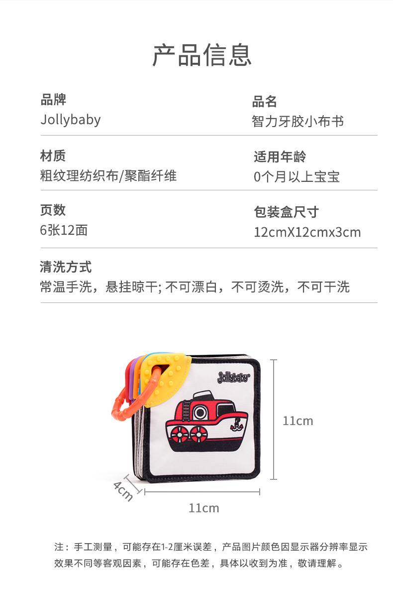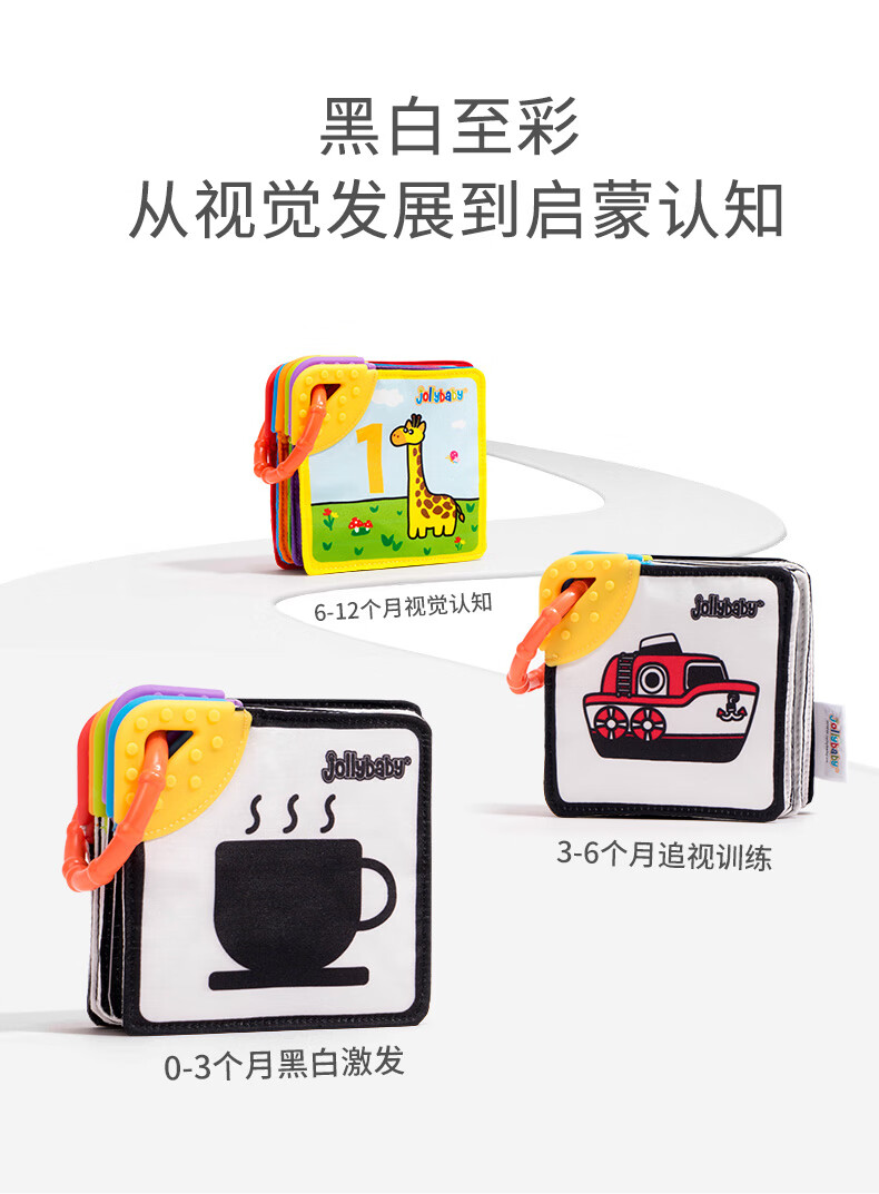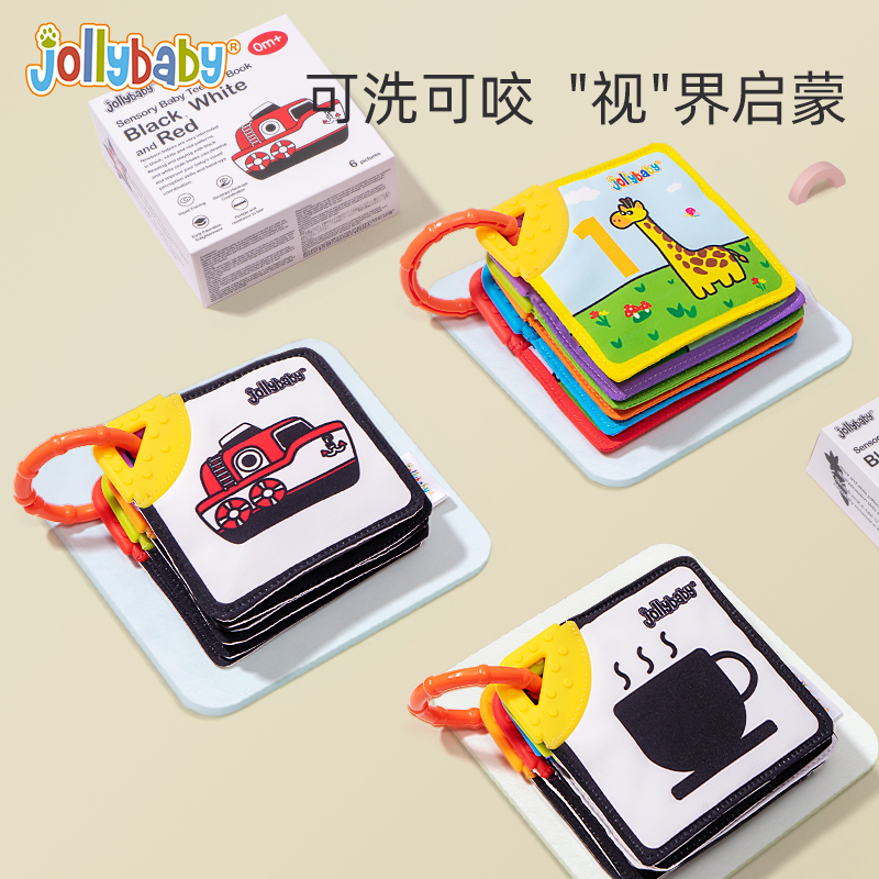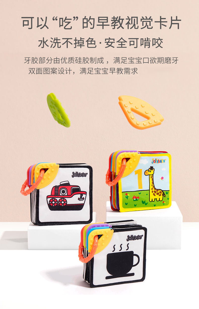 jollybaby彩色卡片0-3个月早教婴儿宝宝训练彩色视觉卡 彩色牙胶小布书礼物