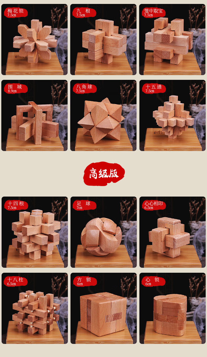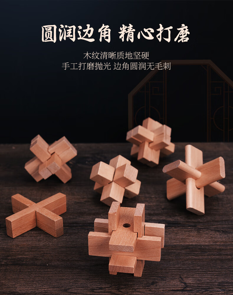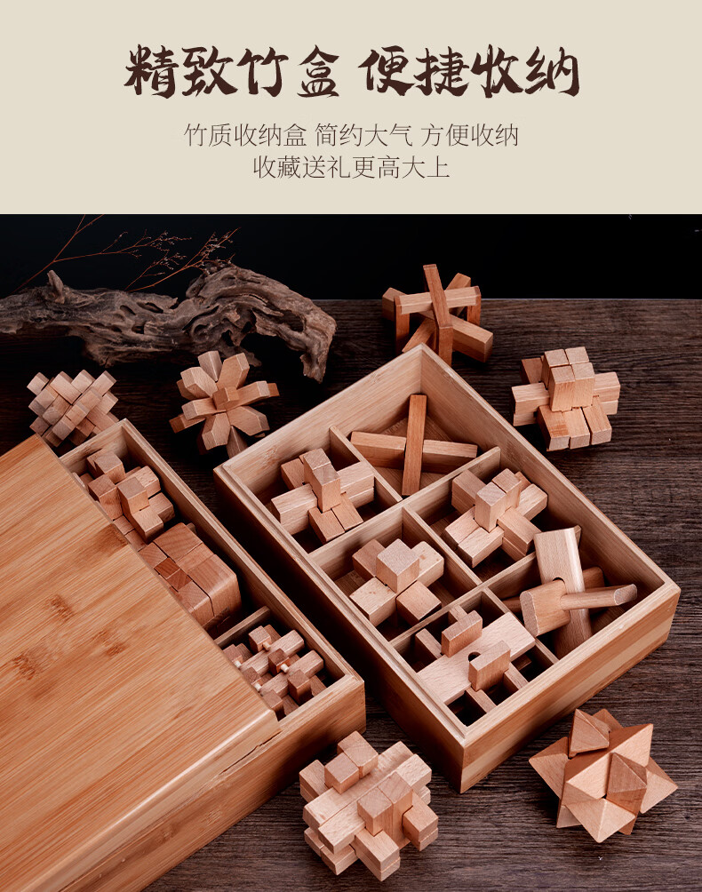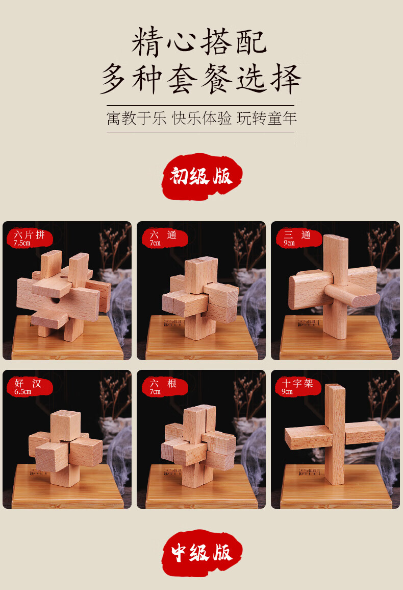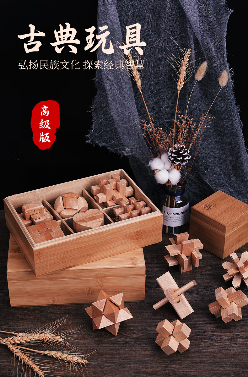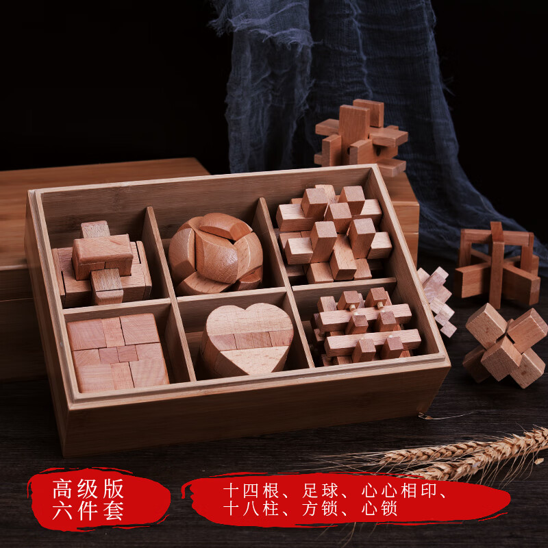 QZMTOY 儿童木质鲁班锁多功能解锁玩具6合一高档礼盒孔明锁套装男孩女孩成人榫卯积木拼插玩具亲子互动玩具