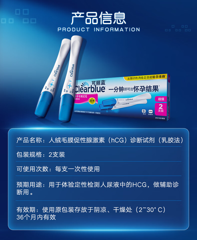 可丽蓝(Clearblue) 验孕棒 电子验孕笔1支+快速验孕笔2支 组合装 电子显示孕周 早早孕试纸