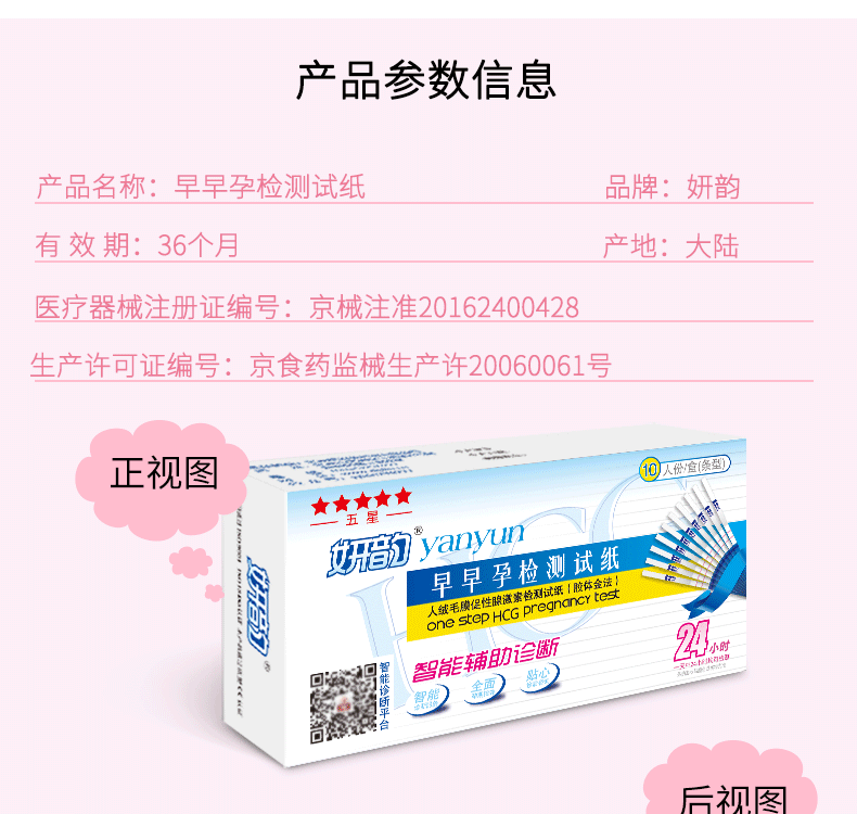 妍韵 验孕棒早早孕试纸20条含微卡尿杯怀孕测孕纸人工智能辅助诊断检测验孕试纸早孕
