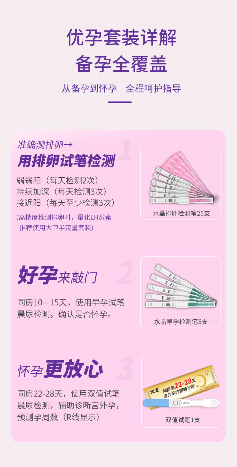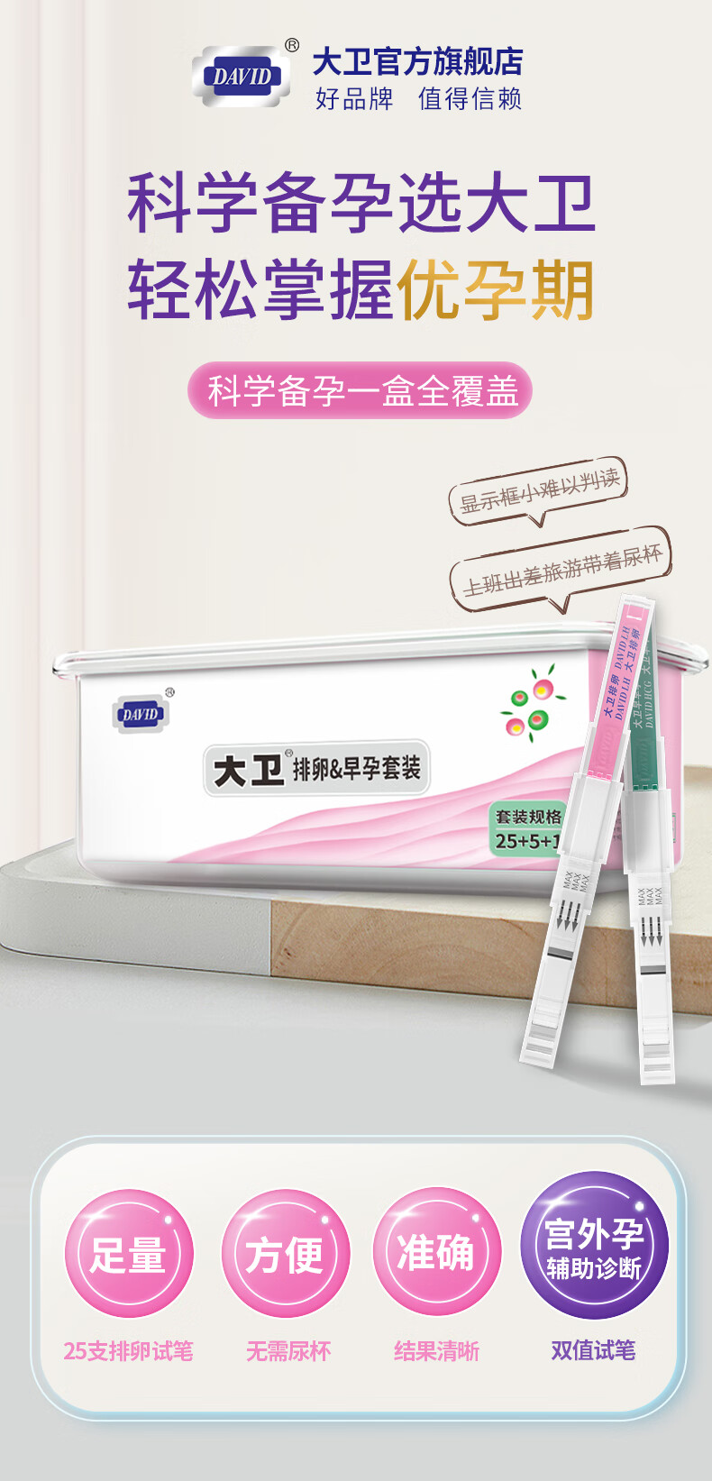 大卫 排卵试纸 验孕试纸 高精度检测笔型25+验孕棒5+辅助检测宫外孕笔