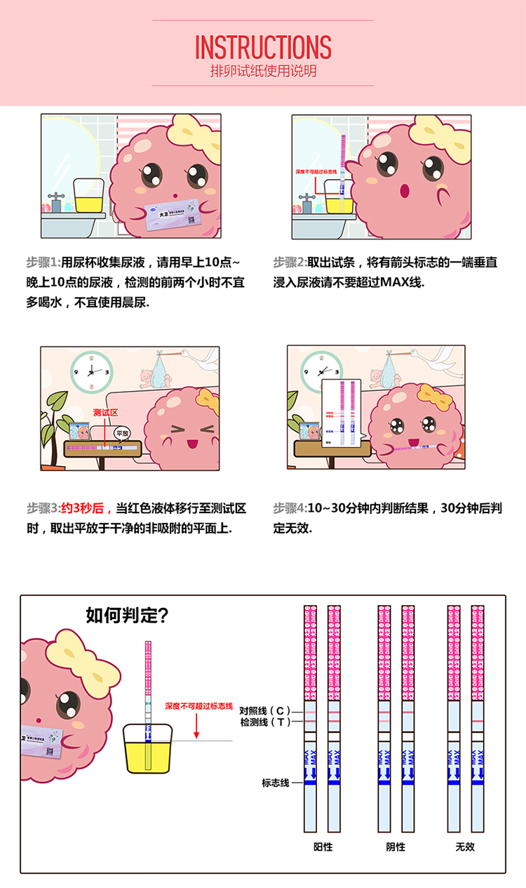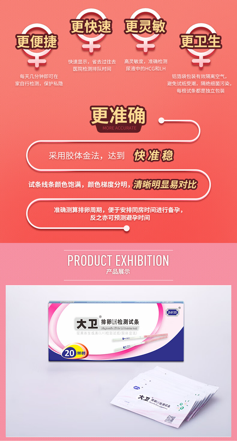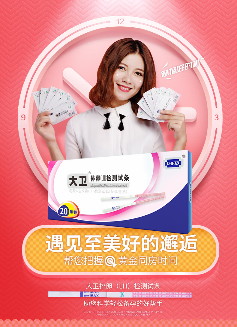 大卫(DAVID)排卵试纸20条条型含尿杯20只 高精度测排卵期检测试纸大卫