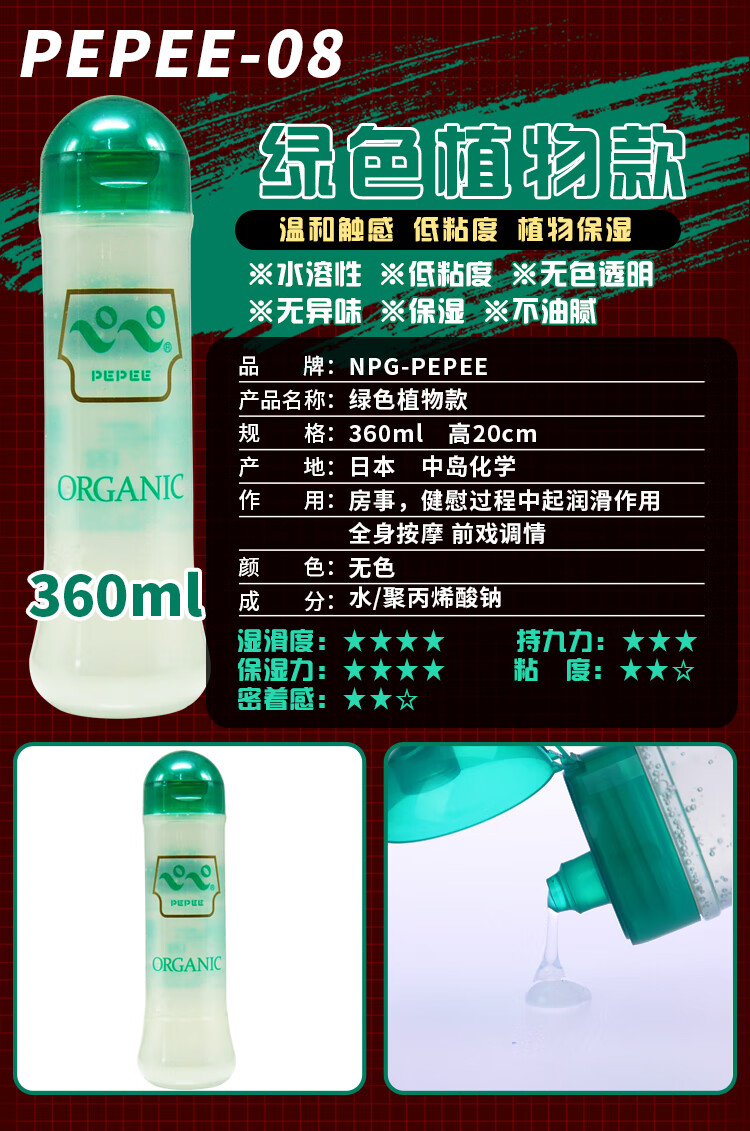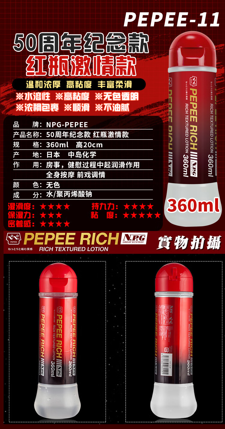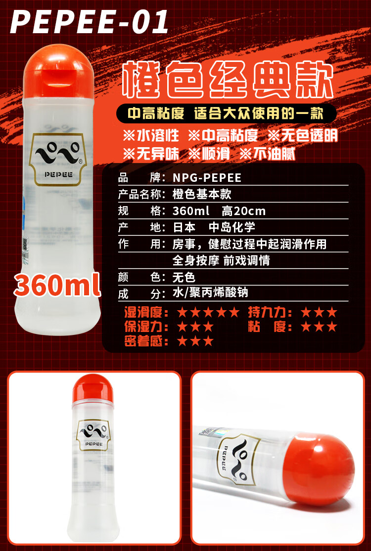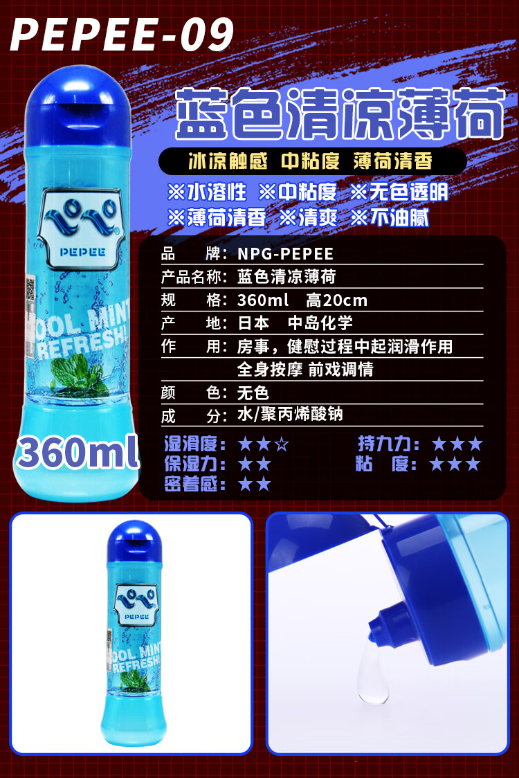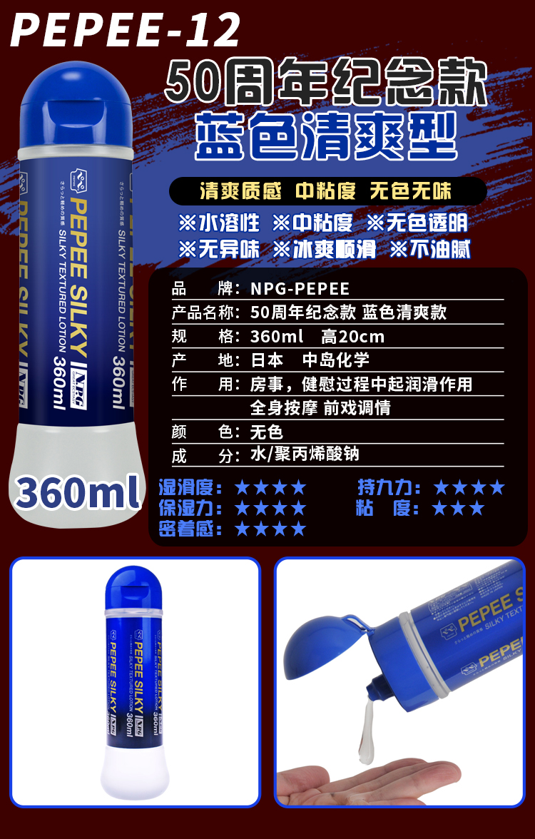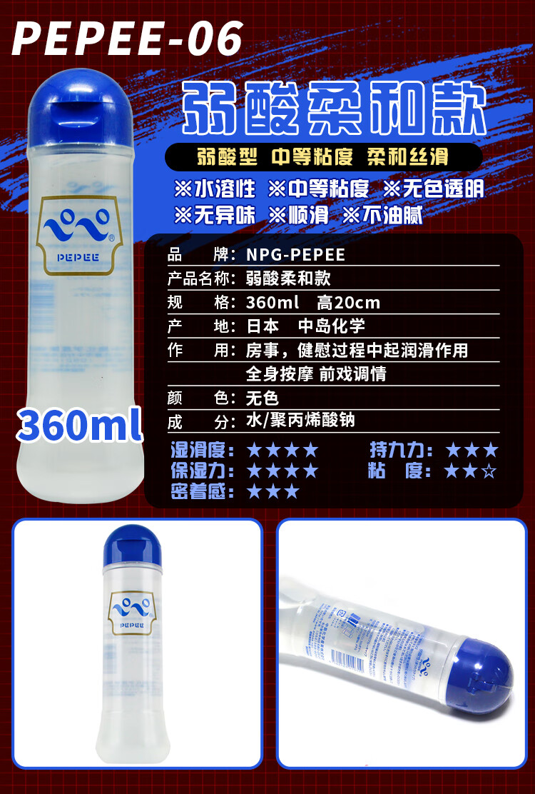 PEPEE 日本进口 男用人体润滑油 成人情趣用品 女用润滑剂 夫妻房事润滑液 天然水溶性 中粘度中岛360ml蓝