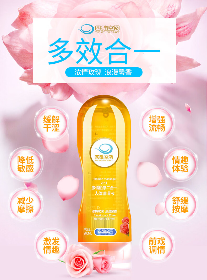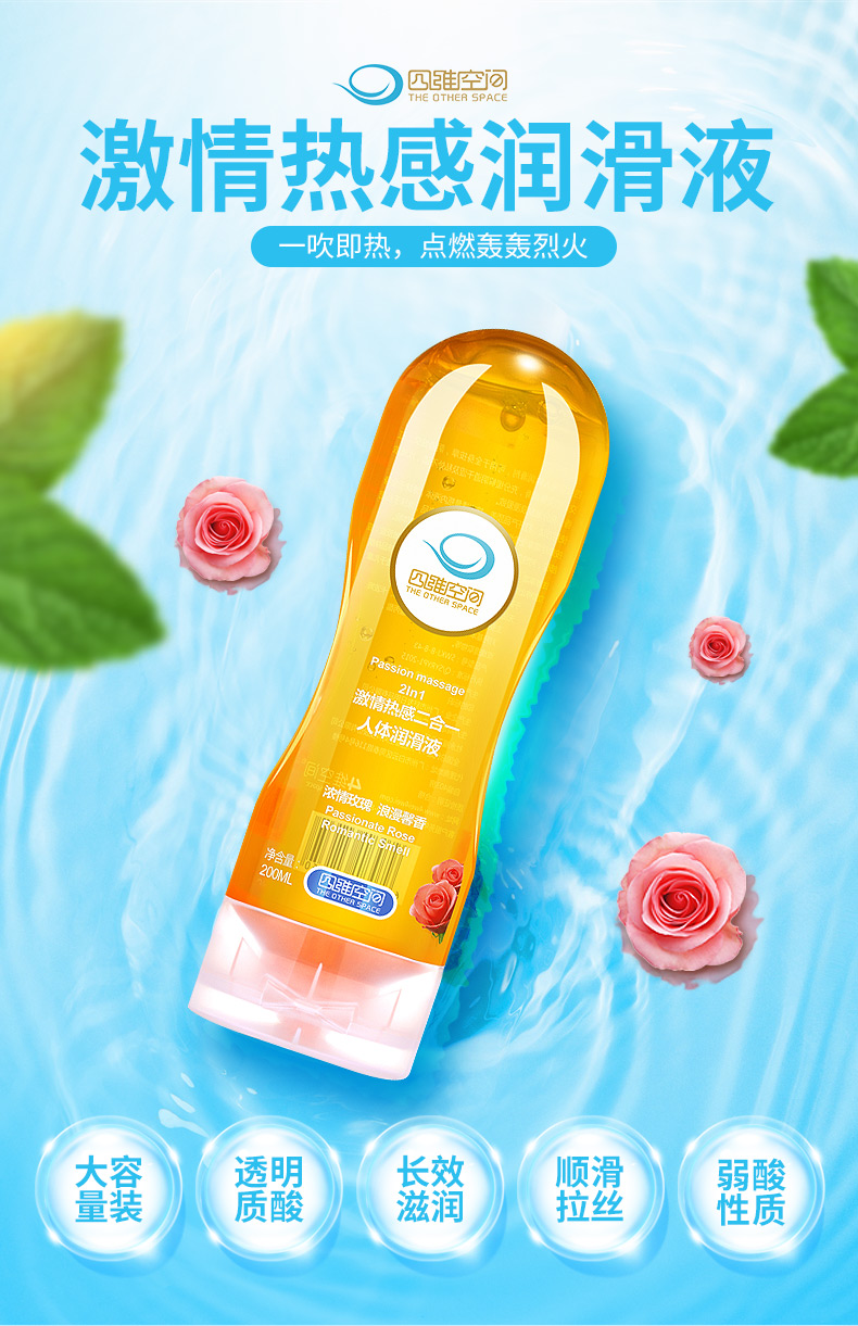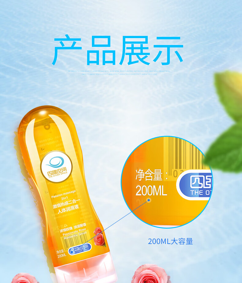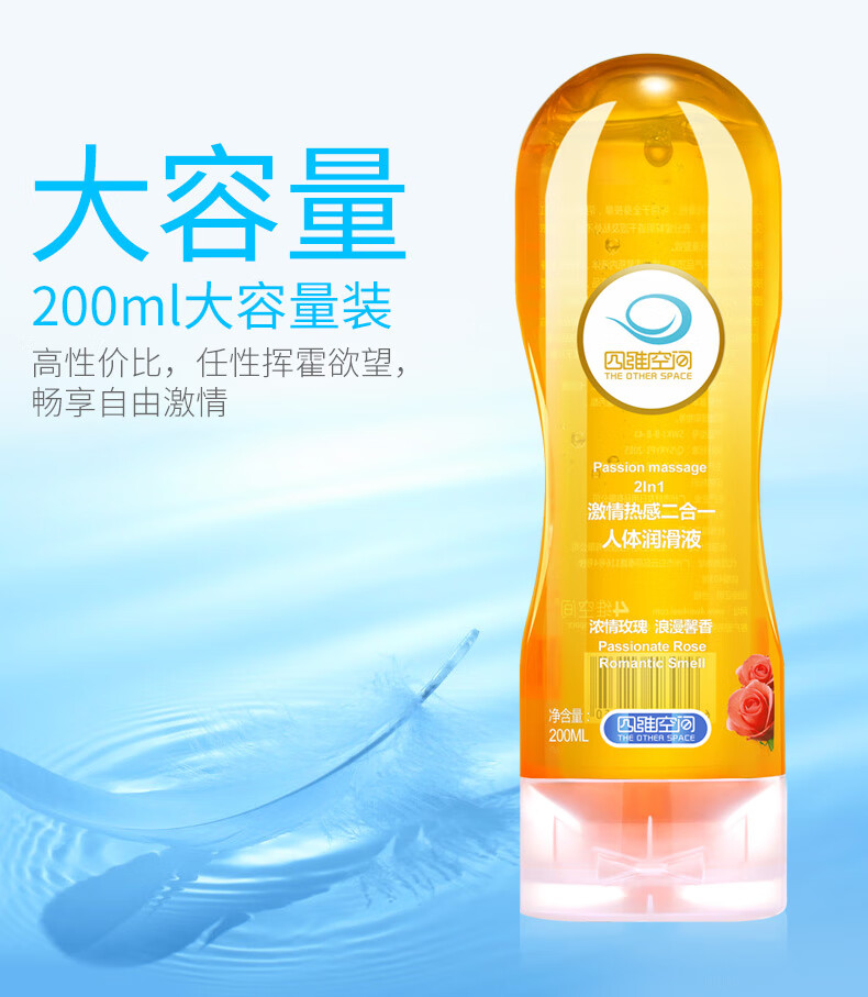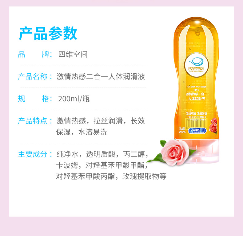 四维空间 润滑油 润滑液 人体润滑剂 激情热感二合一200ml 水溶性 男用自慰润滑按摩油 成人夫妻情趣性用品