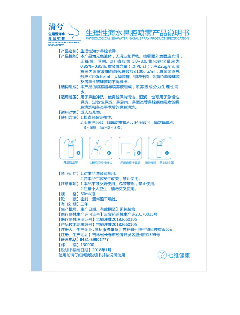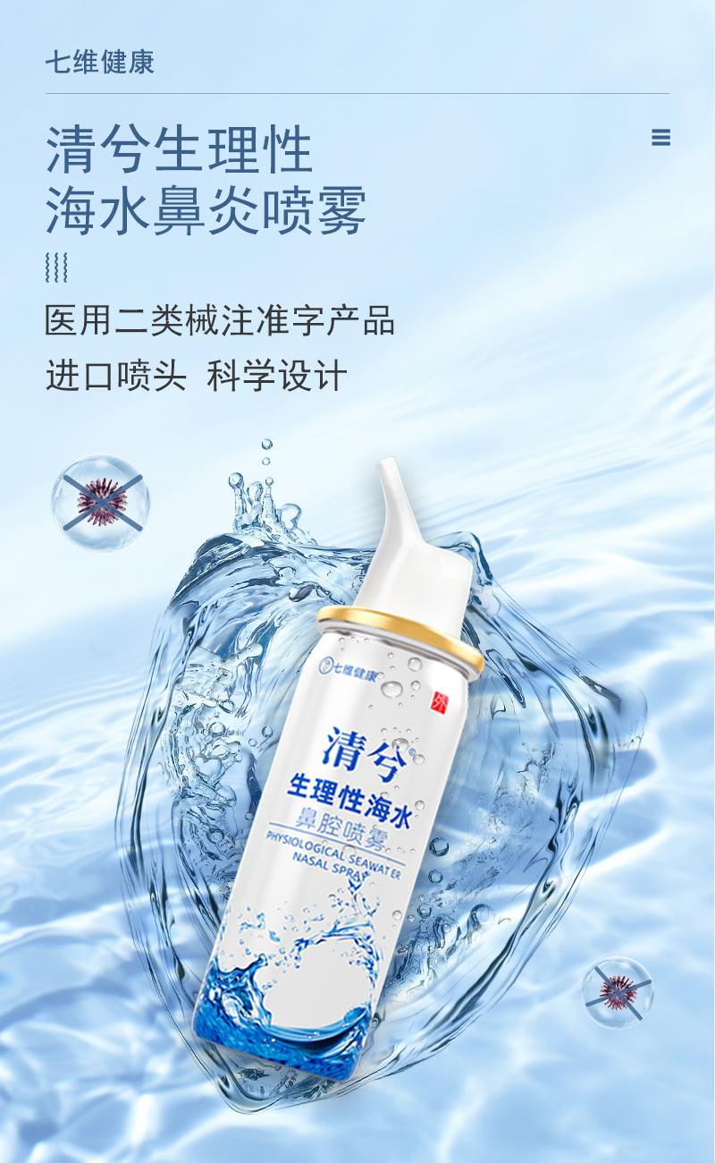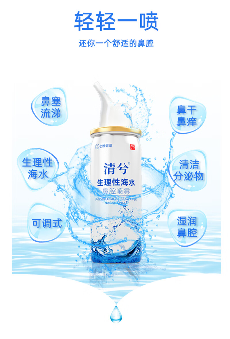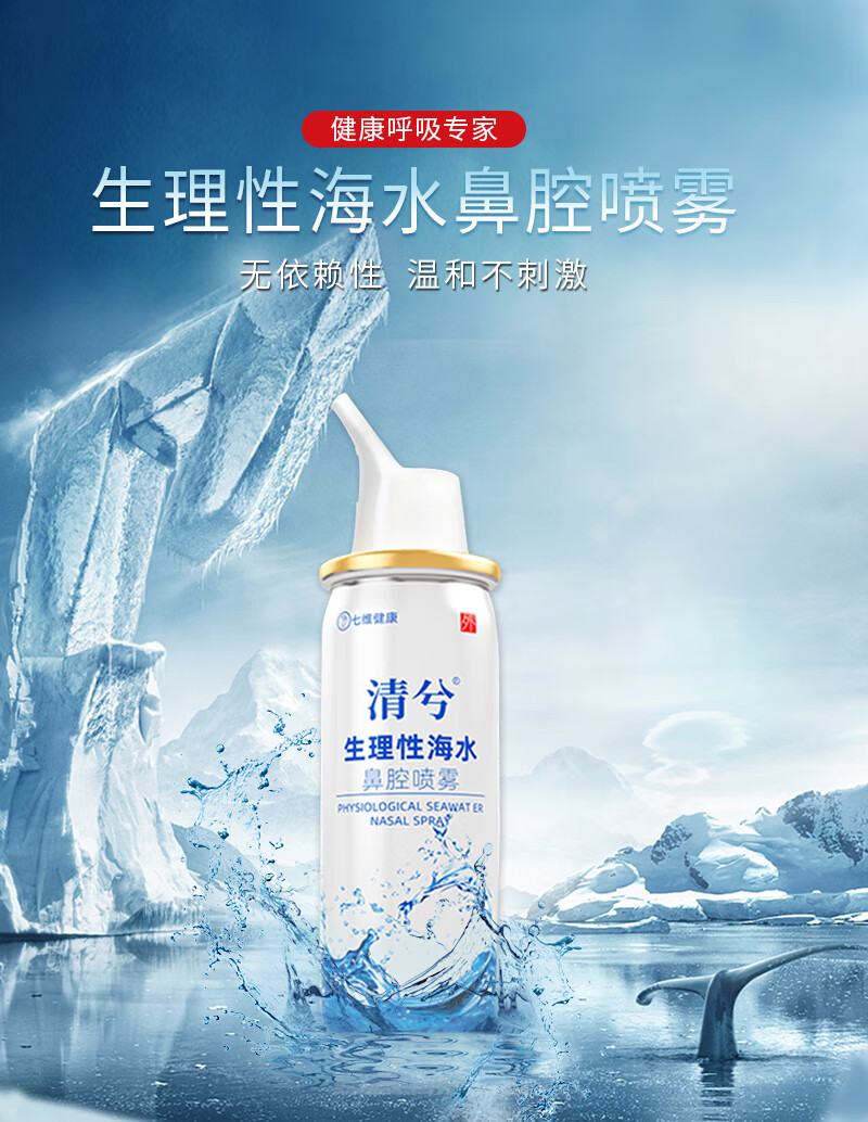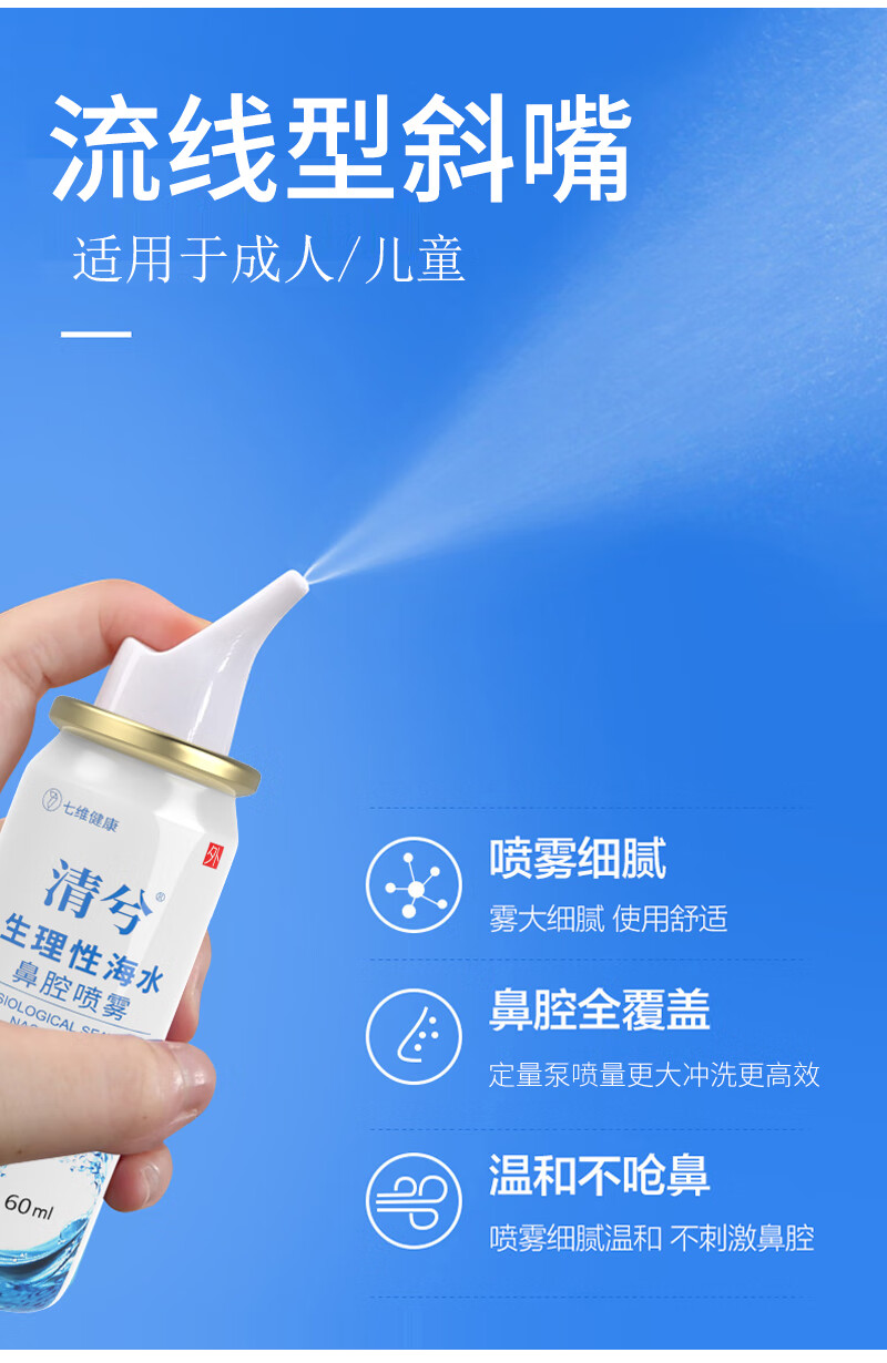 七维健康 生理盐水洗鼻喷雾剂 海盐水洗鼻器成人儿童 鼻窦炎过敏性鼻炎喷剂生理性海水鼻腔清洗器60ml