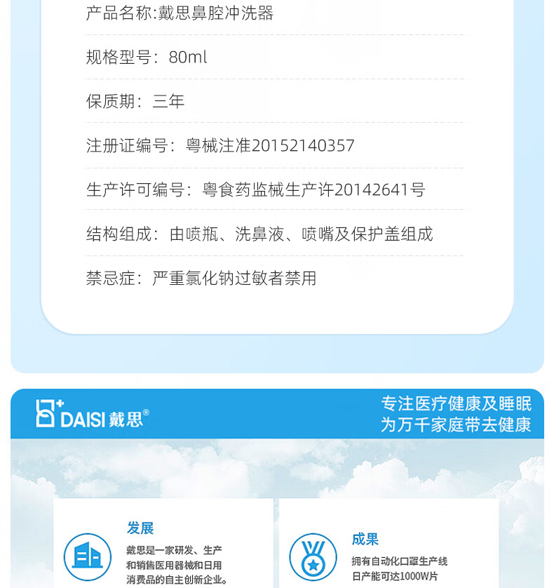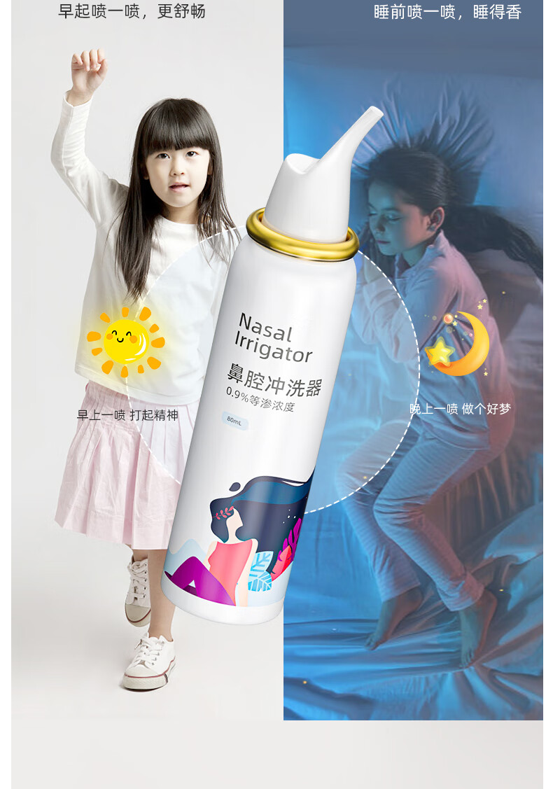 戴思(DAISI)成人海盐水喷雾 生理盐水洗鼻器 鼻炎清洗器 等渗海水鼻腔喷雾器 过敏性鼻炎喷剂 80ml