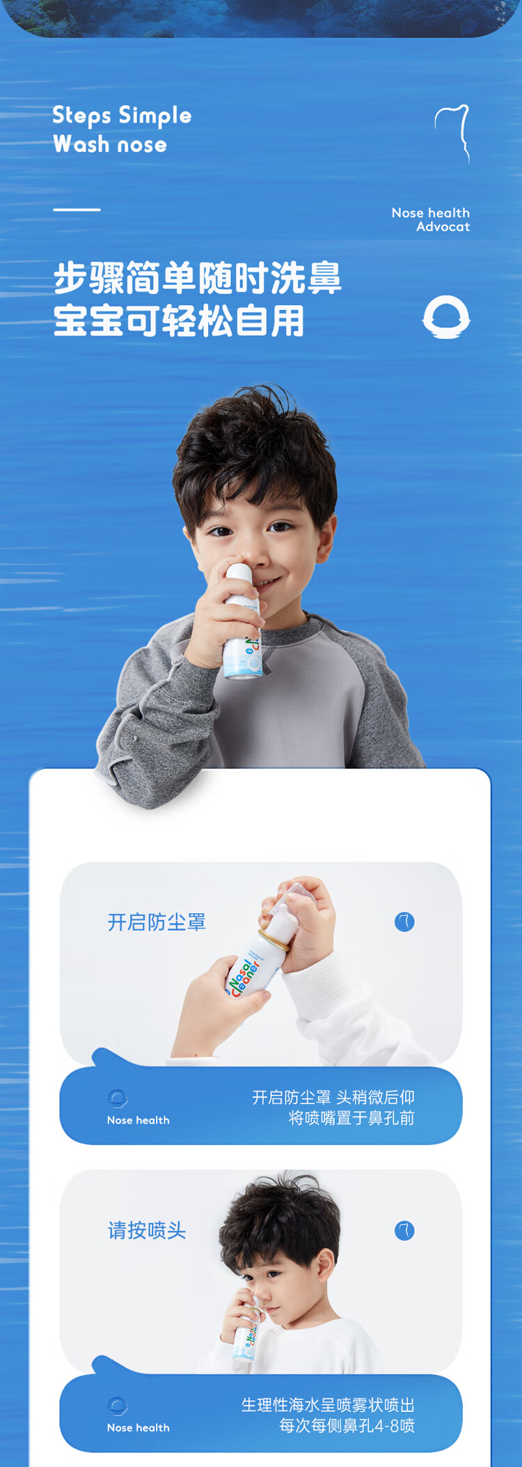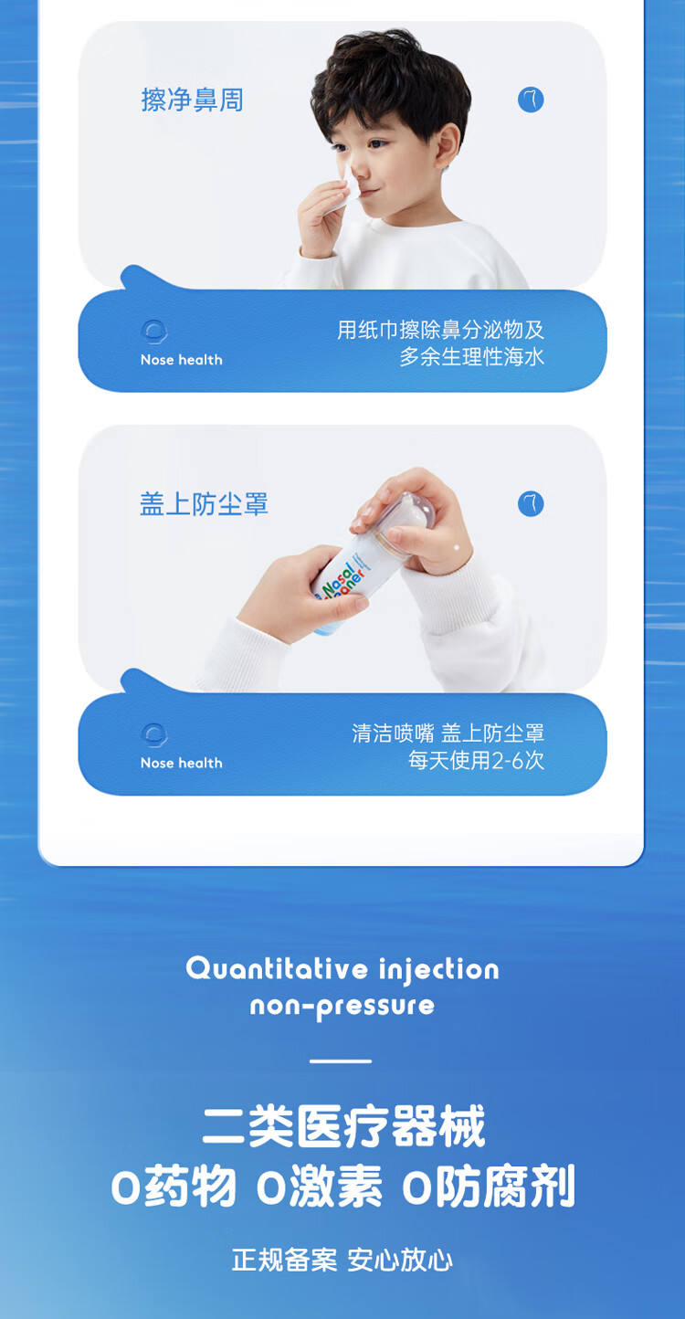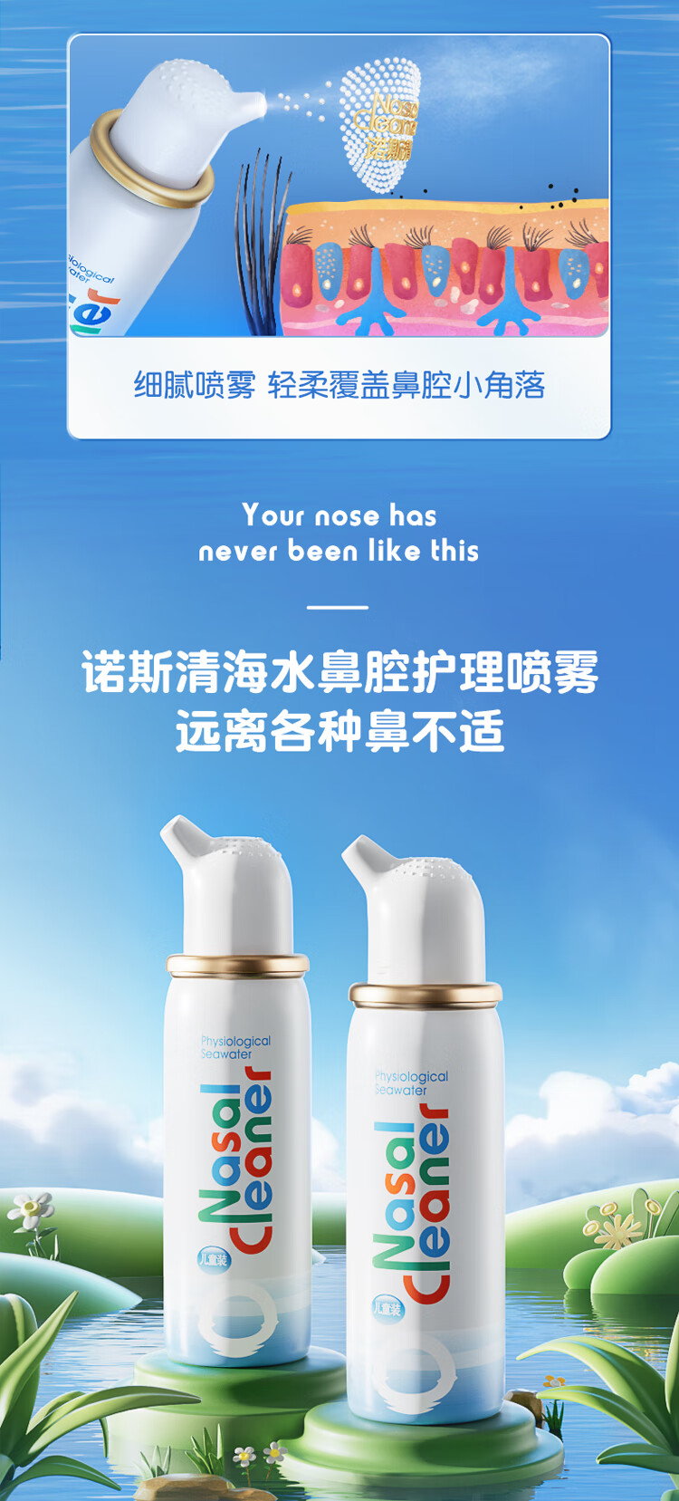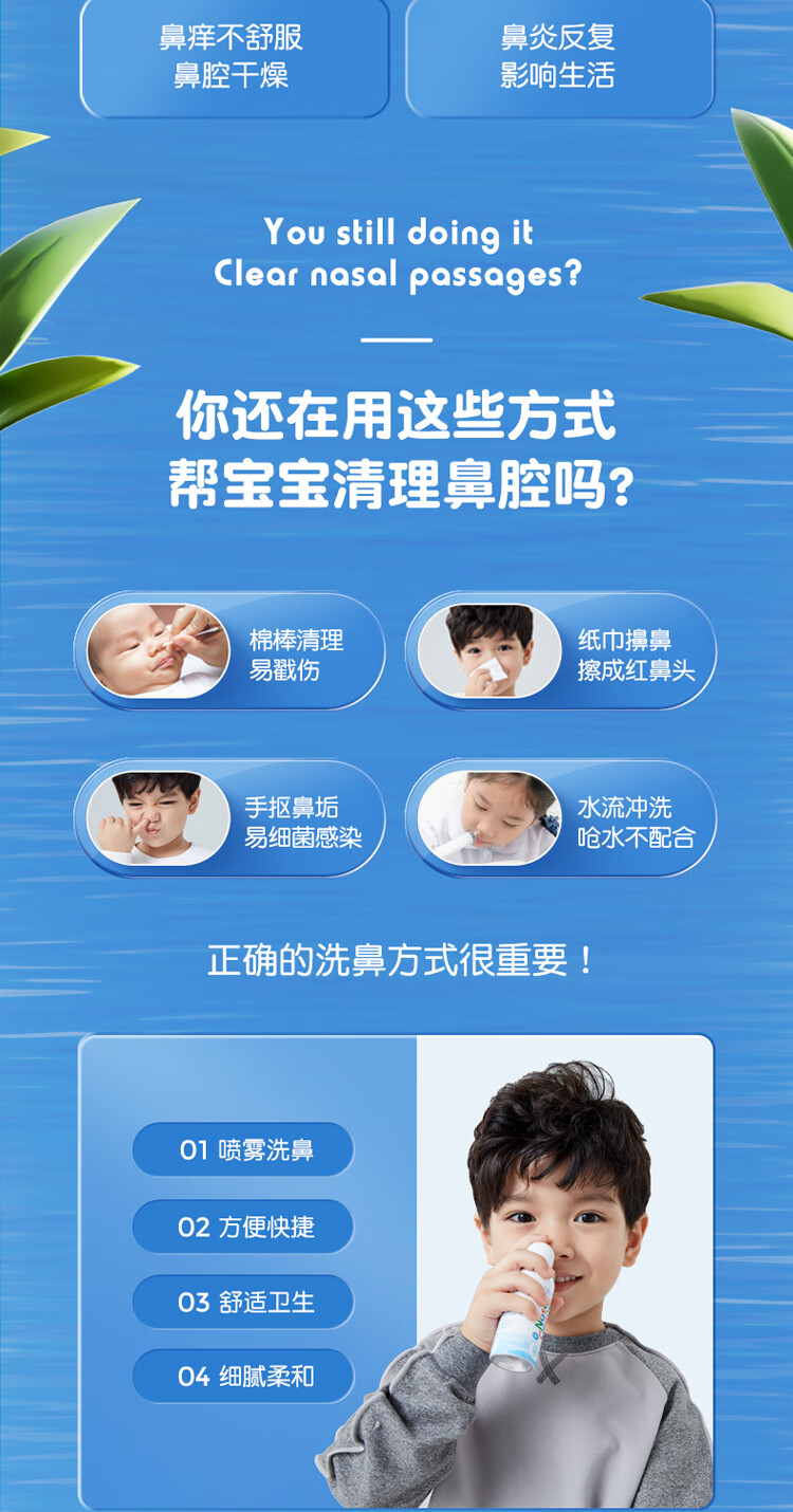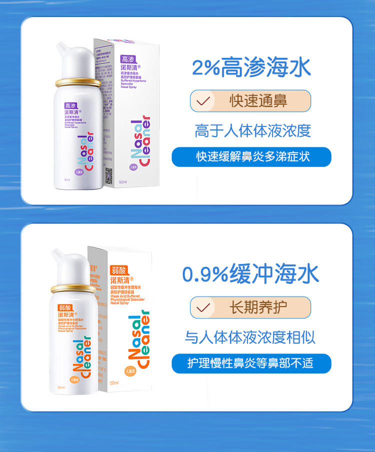 诺斯清海盐水鼻喷儿童洗鼻器生理性海盐水鼻炎清洗鼻腔喷雾器洗鼻盐水儿童装50ml