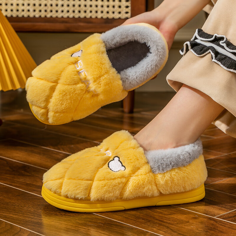 足康乐 棉拖鞋男冬季室内家居可爱情侣包跟防滑居家用毛绒保暖月子鞋女冬天 黄色 38-39【适合37-38】