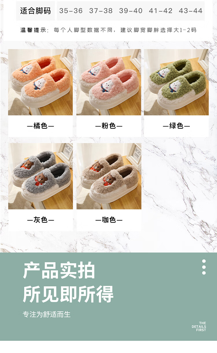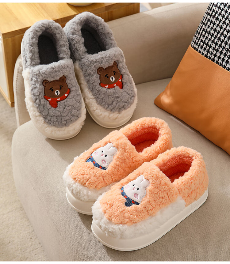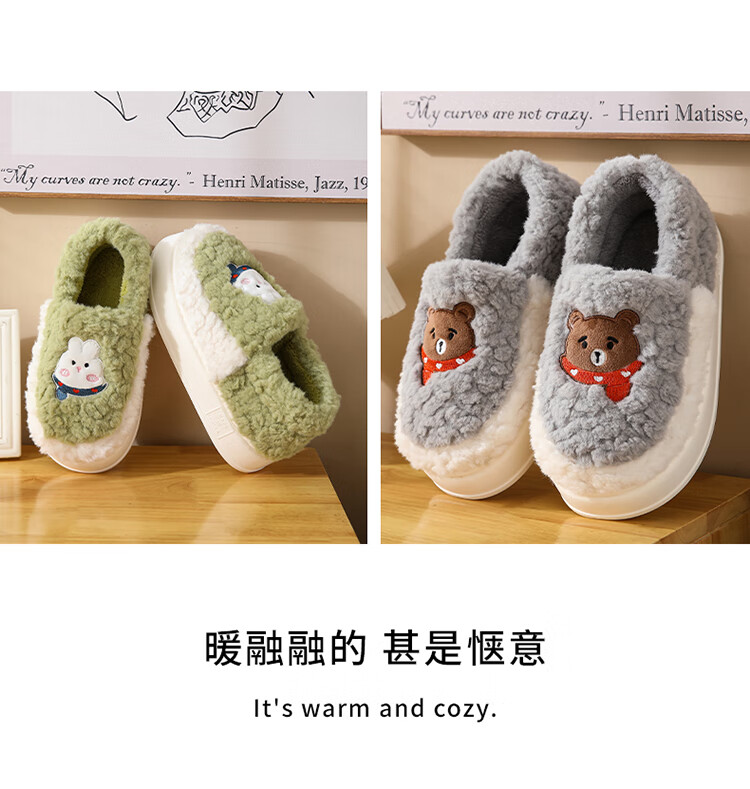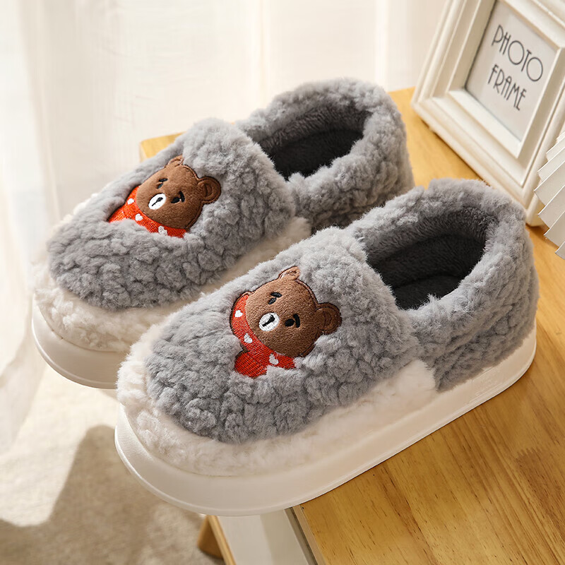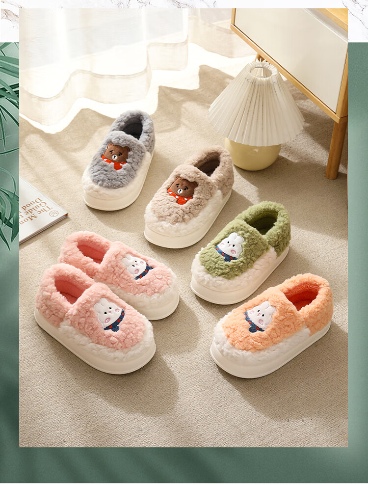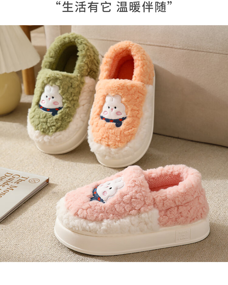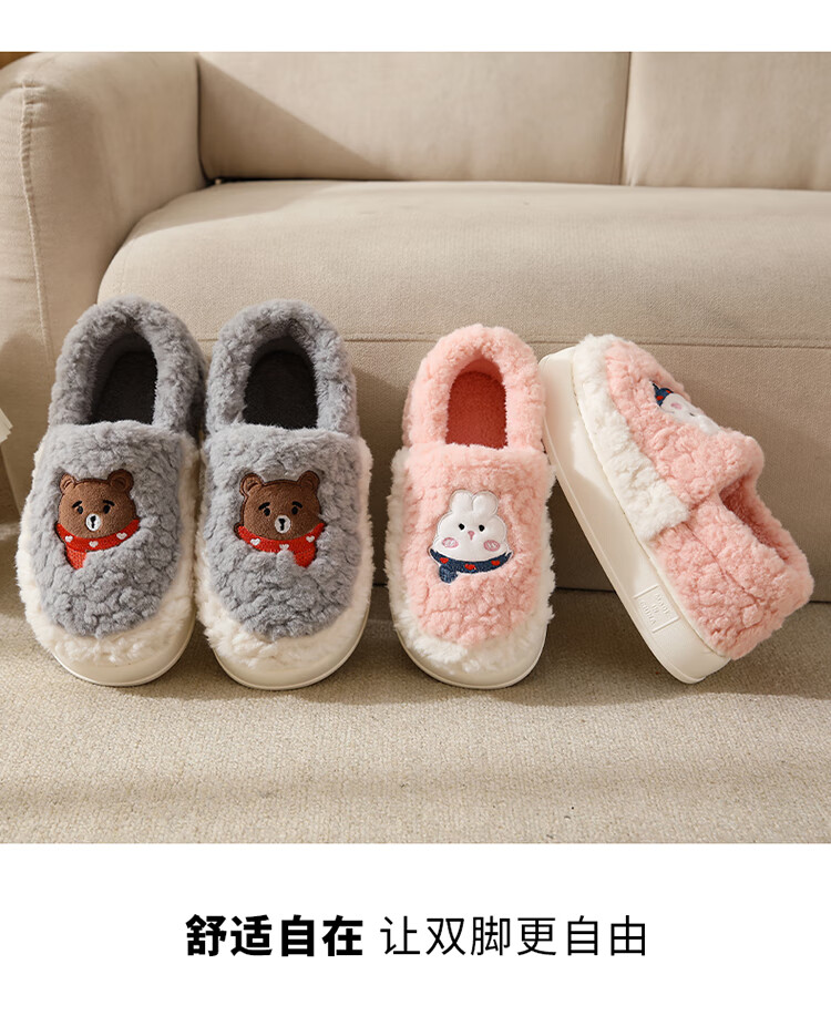 俞兆林 YUZHAOLIN 男女简约室内居家办公室保暖情侣款舒适包根毛绒棉拖鞋 LYM22100 灰色 42-43