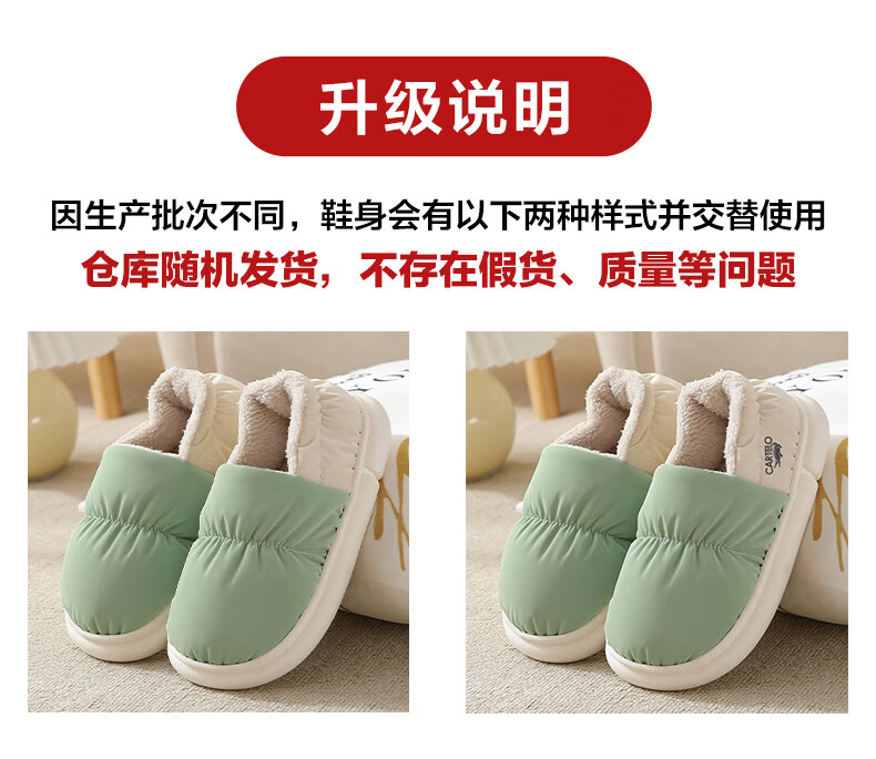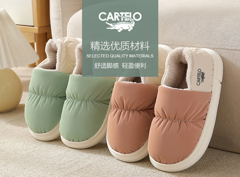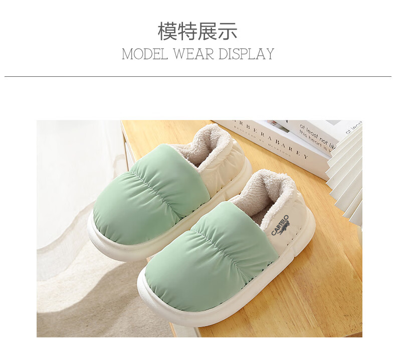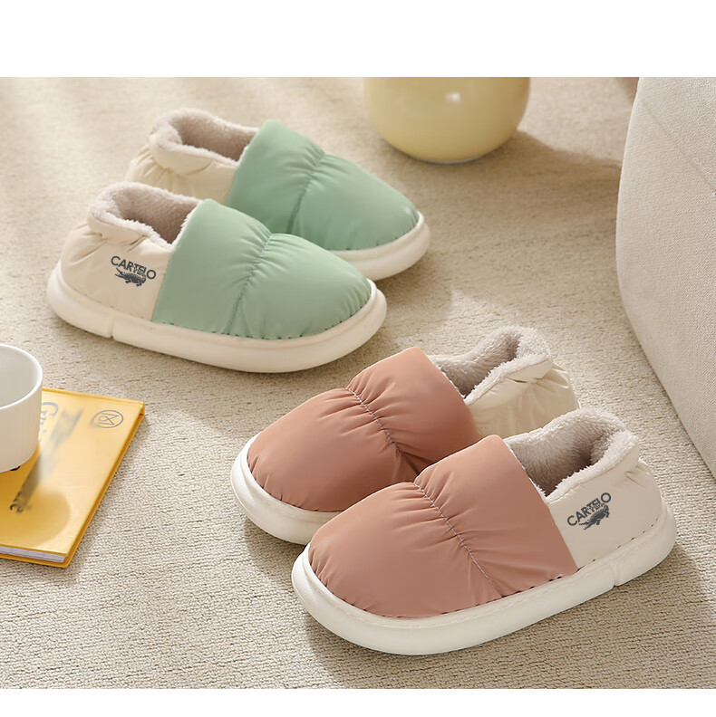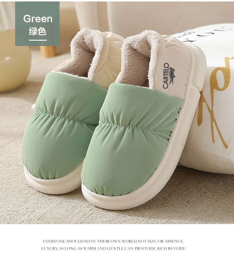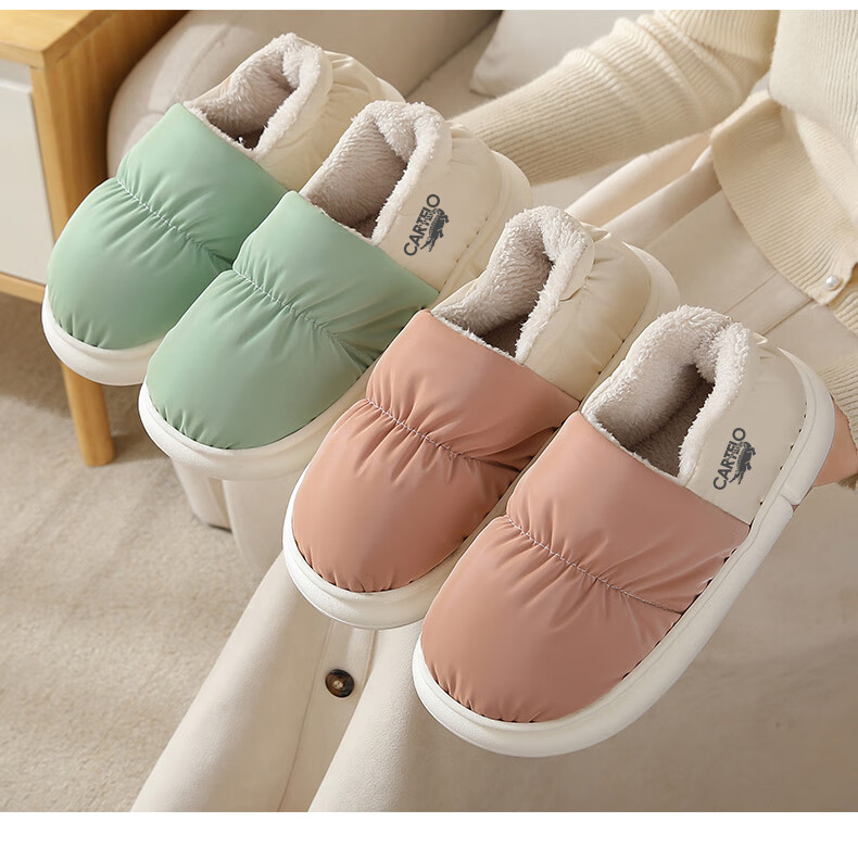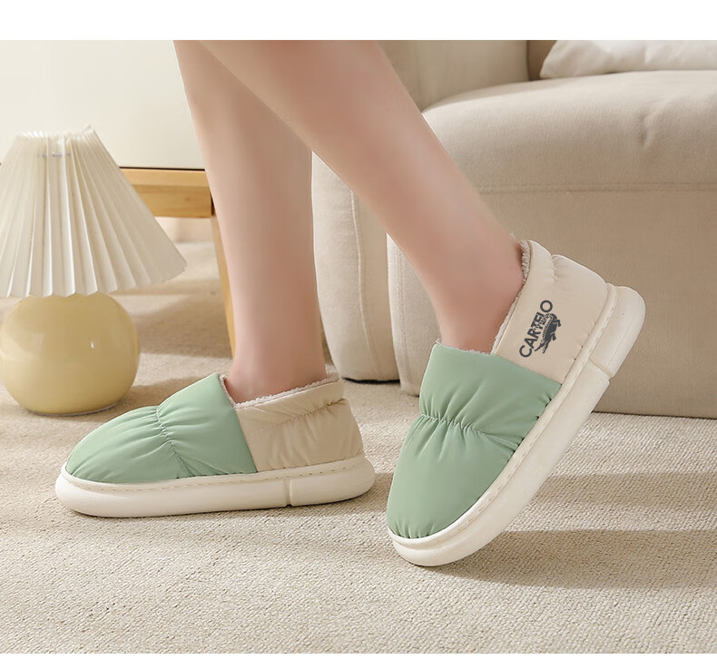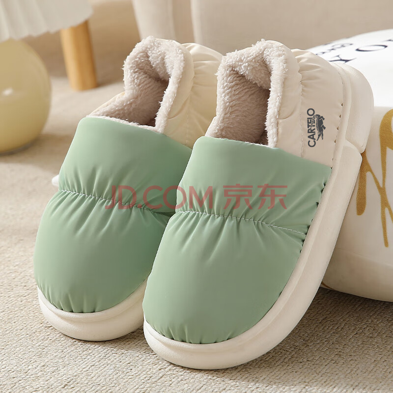 卡帝乐鳄鱼踩屎感棉拖鞋女冬季加绒保暖月子鞋棉鞋子女 1008M 绿色 36-37