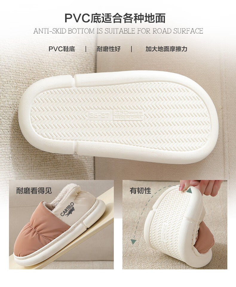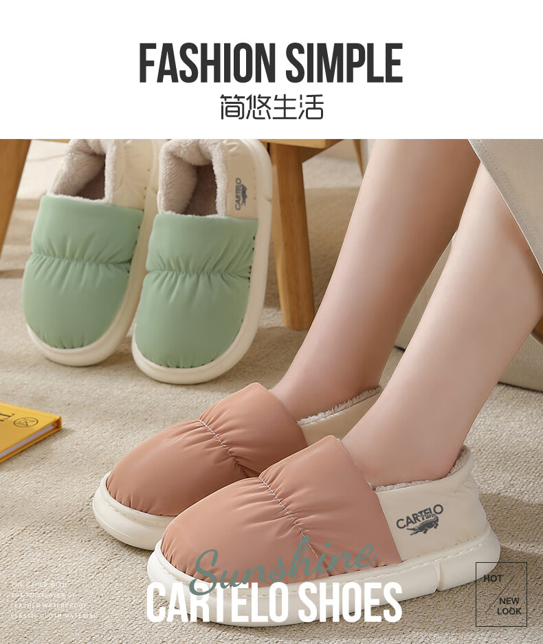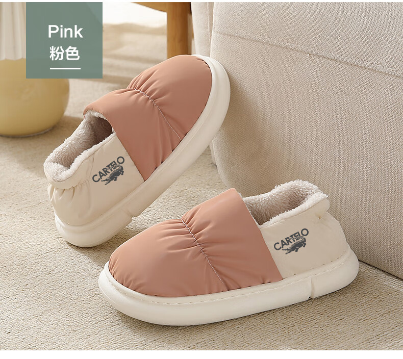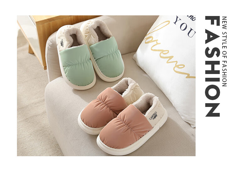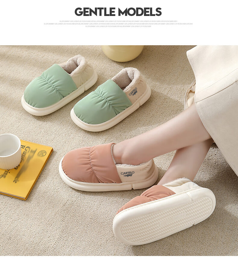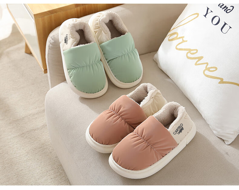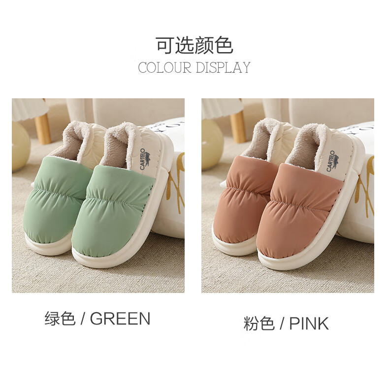 卡帝乐鳄鱼踩屎感棉拖鞋女冬季加绒保暖月子鞋棉鞋子女 1008M 绿色 36-37