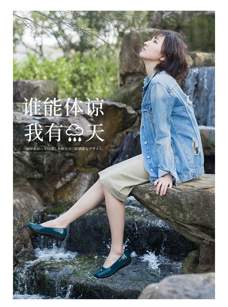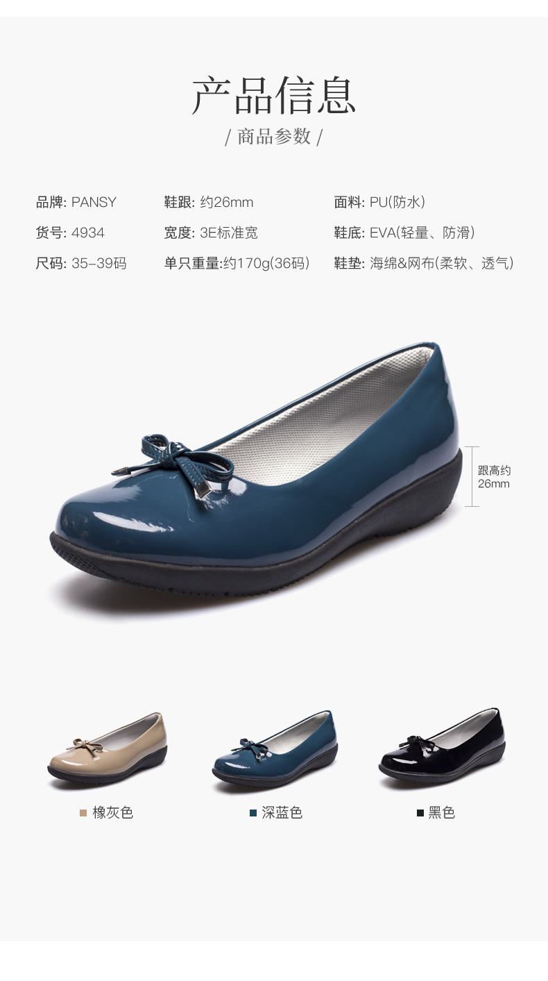 盼洁Pansy女士雨鞋大人单鞋日式时尚外穿防水防滑浅口平底晴雨鞋4934 橡灰 39