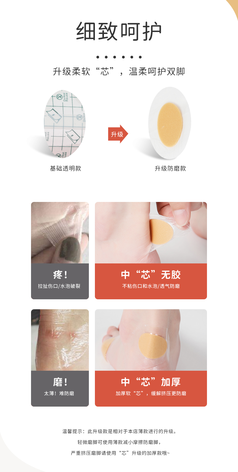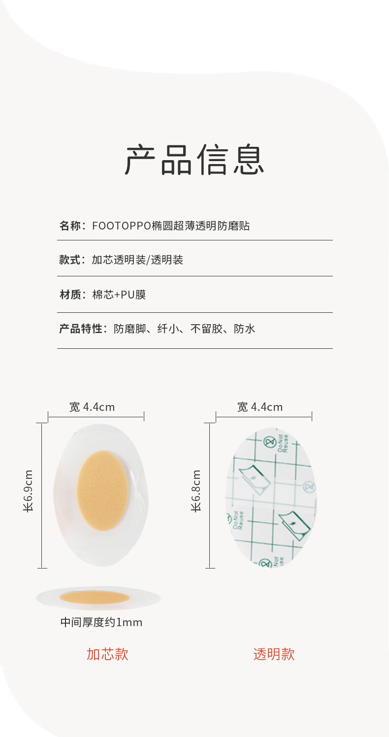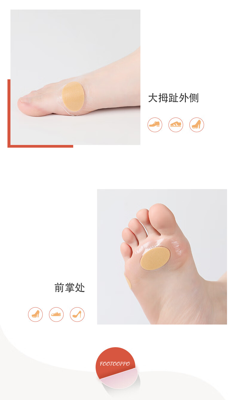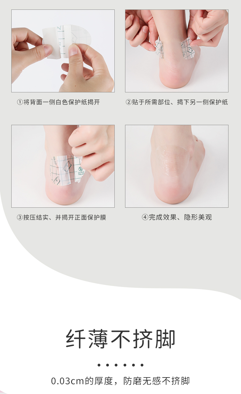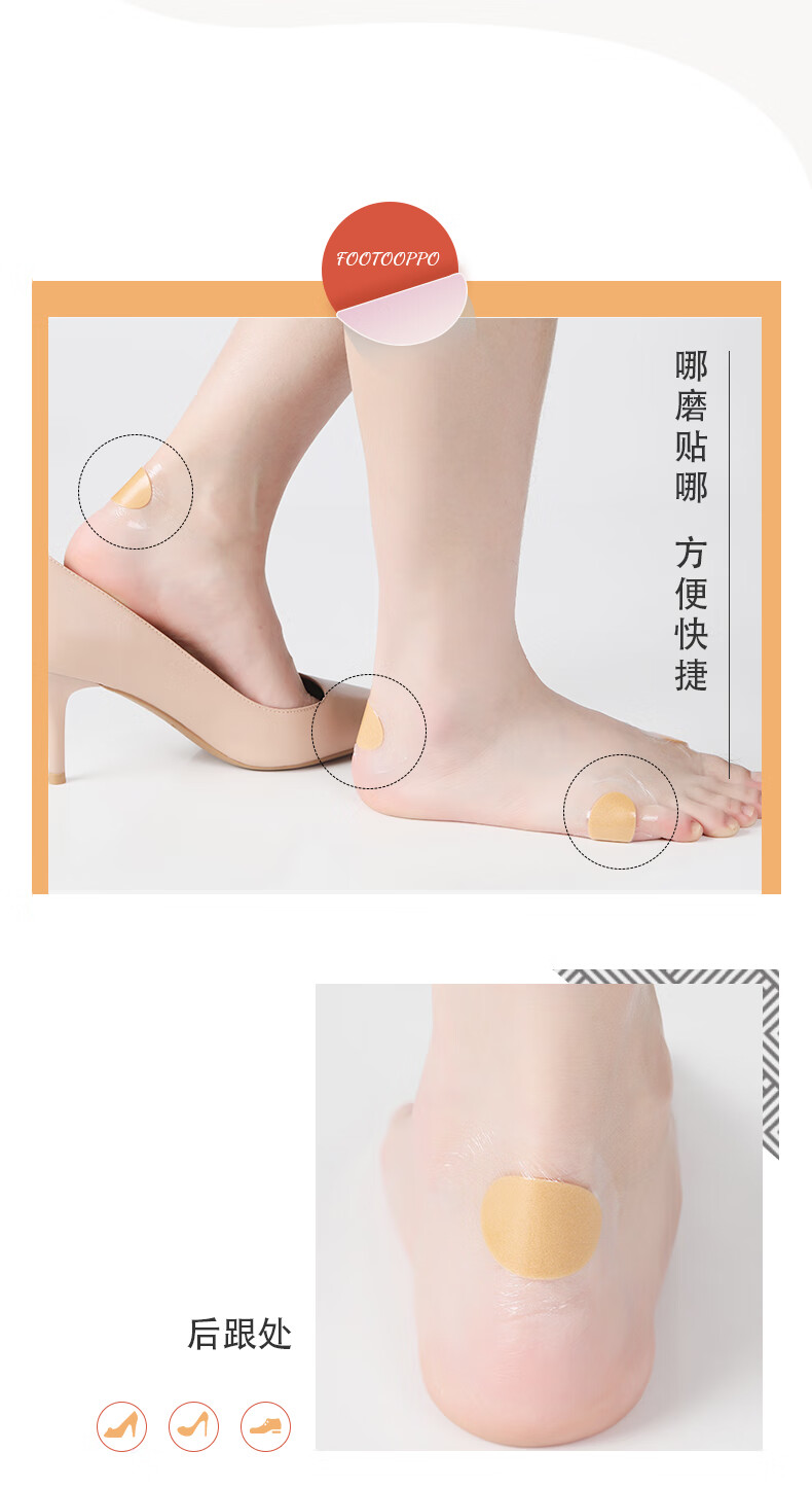 FootOppo防磨贴水泡防磨脚脚后跟贴高跟鞋脚跟磨脚脚贴薄脚后跟鞋贴女鞋子后跟透明隐形多功能磨脚贴