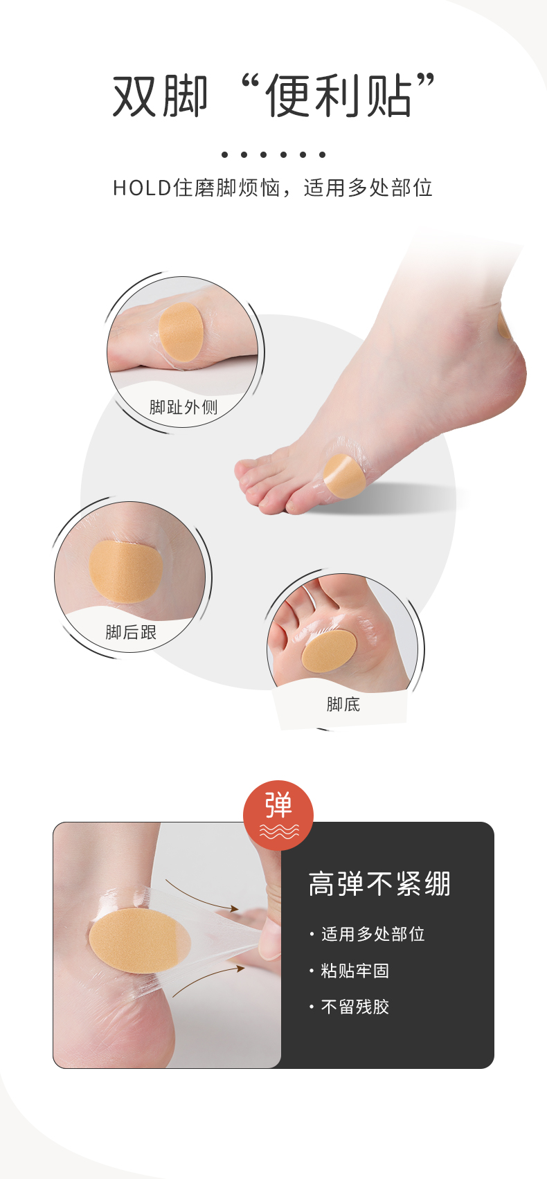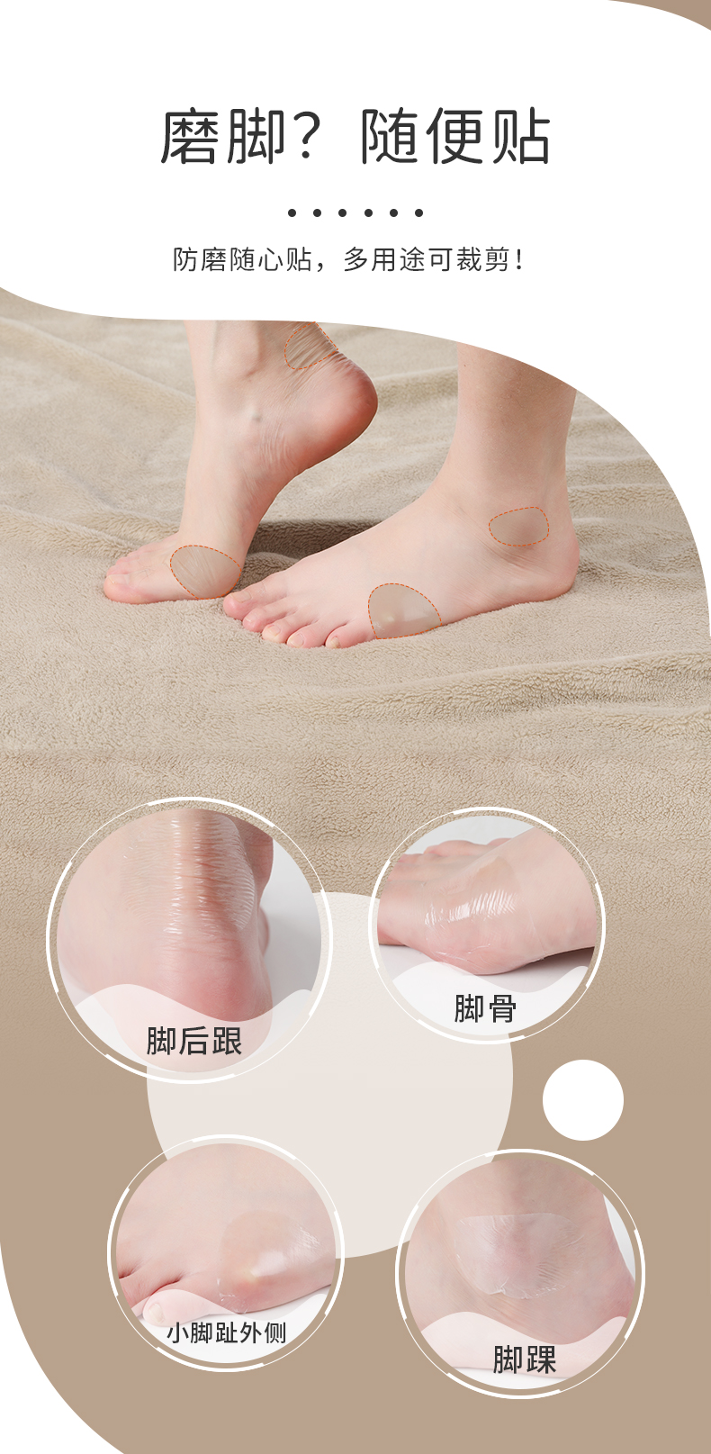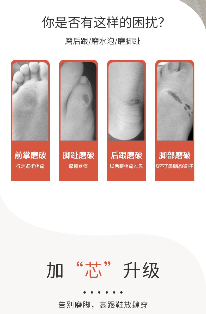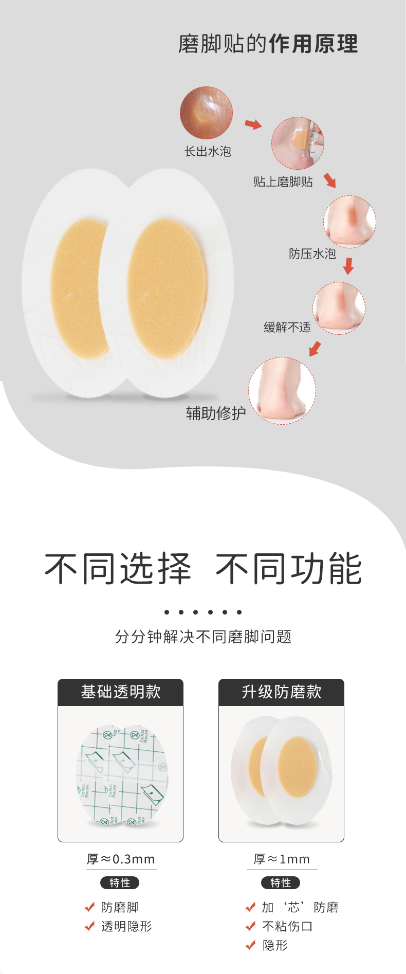 FootOppo防磨贴水泡防磨脚脚后跟贴高跟鞋脚跟磨脚脚贴薄脚后跟鞋贴女鞋子后跟透明隐形多功能磨脚贴