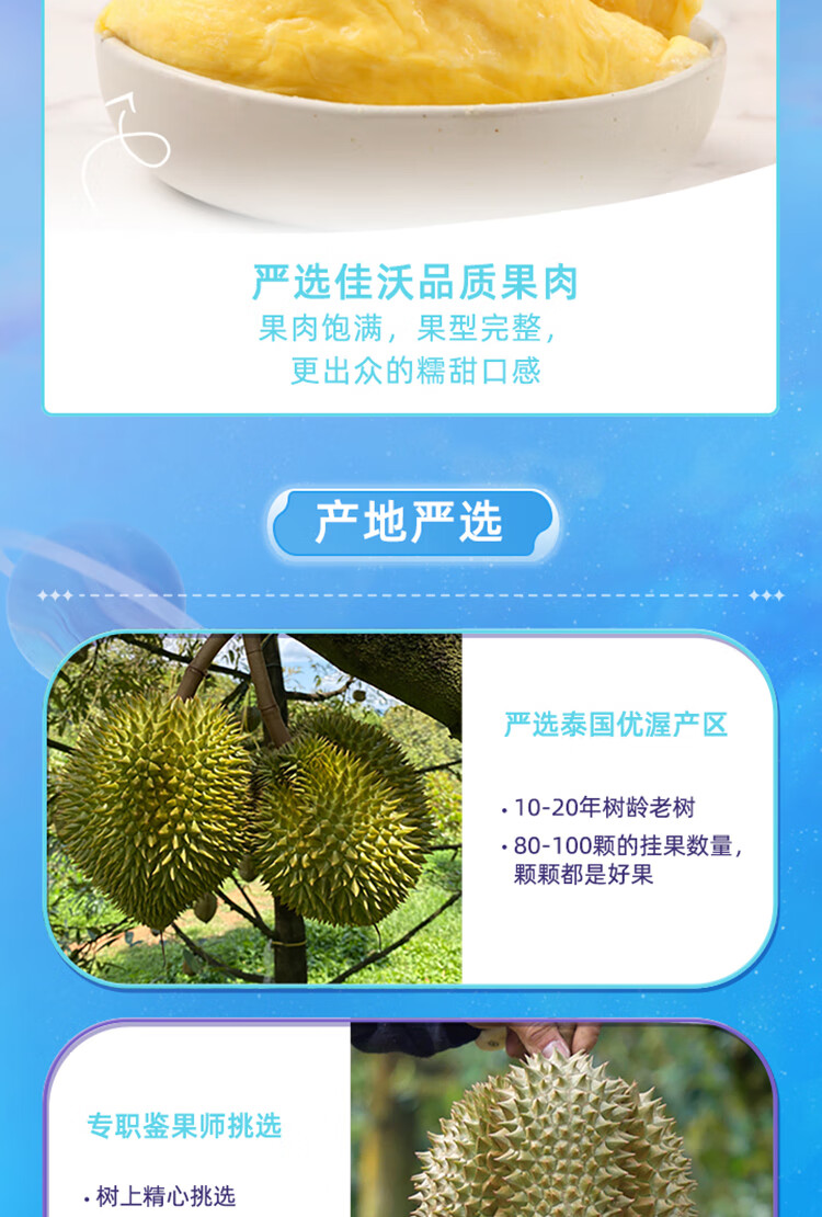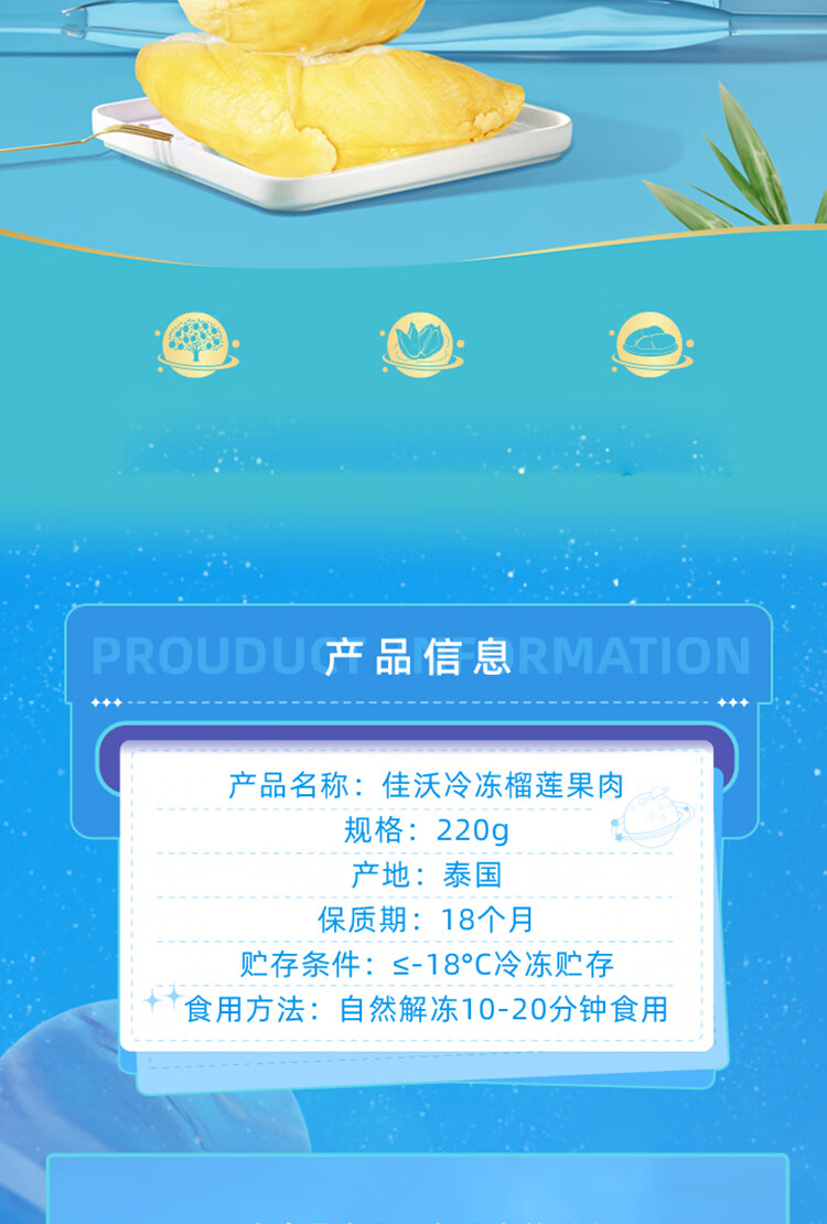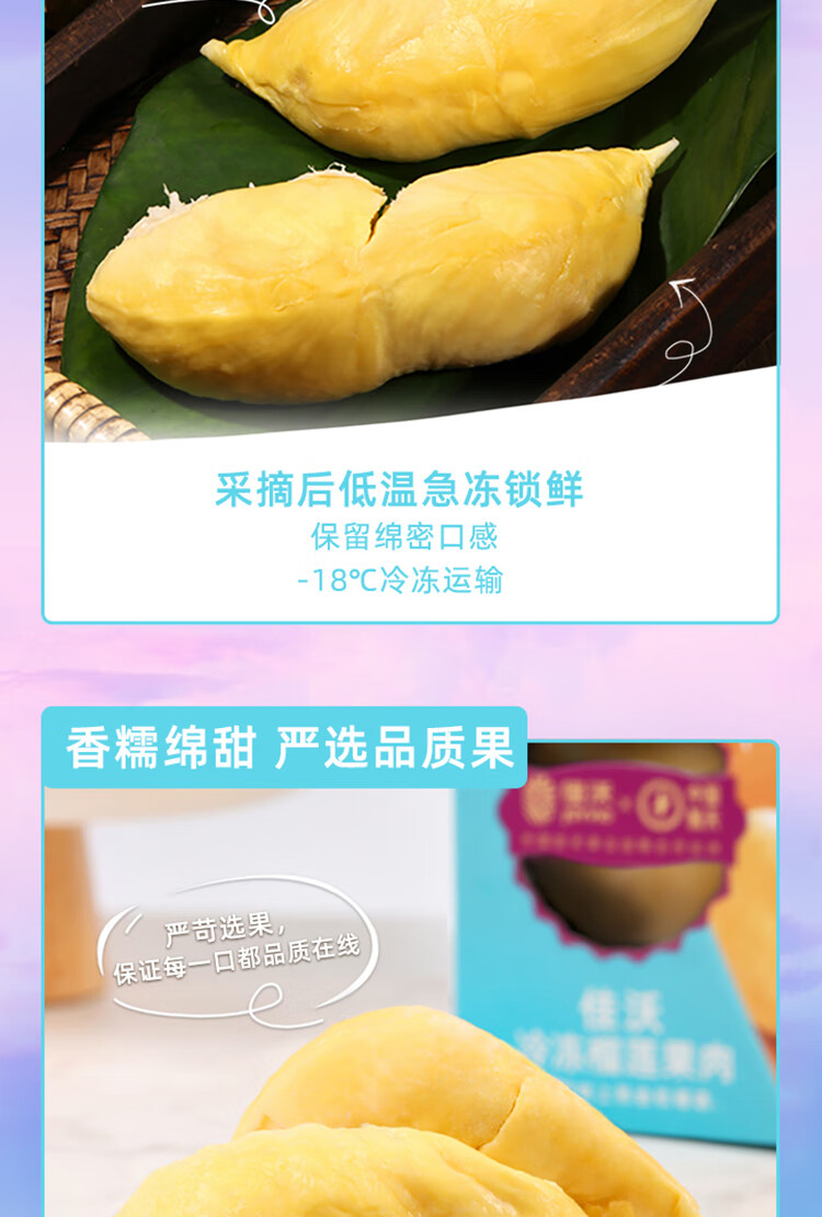 佳沃 joyvio 泰国冷冻金枕头榴莲肉 220g/盒 冷冻榴莲