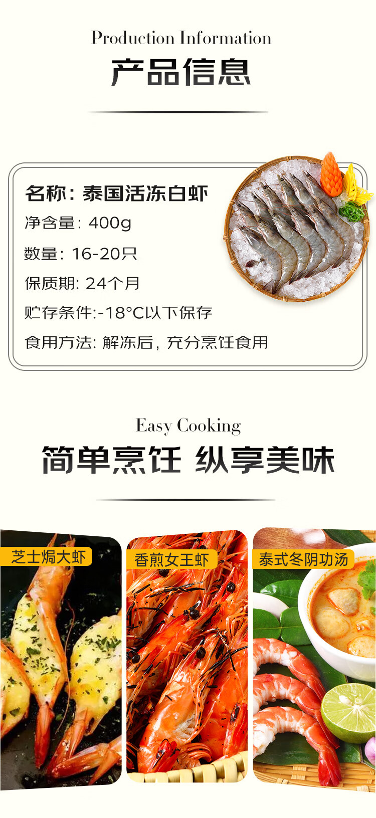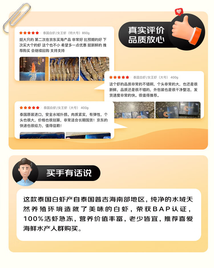 京东生鲜泰国活冻白虾/女王虾(大号)400g 16-20只/盒