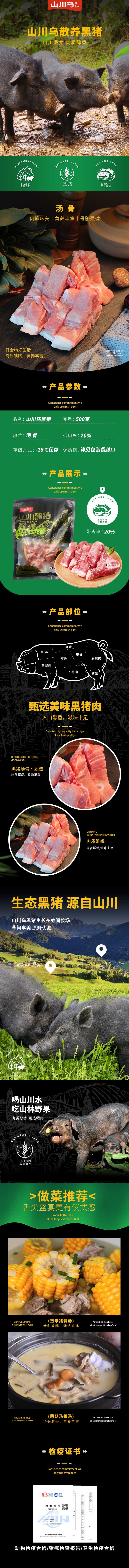 山川乌 黑猪汤骨500g 冷冻免切猪脊骨猪骨高汤煲汤食材山间散养黑猪生鲜