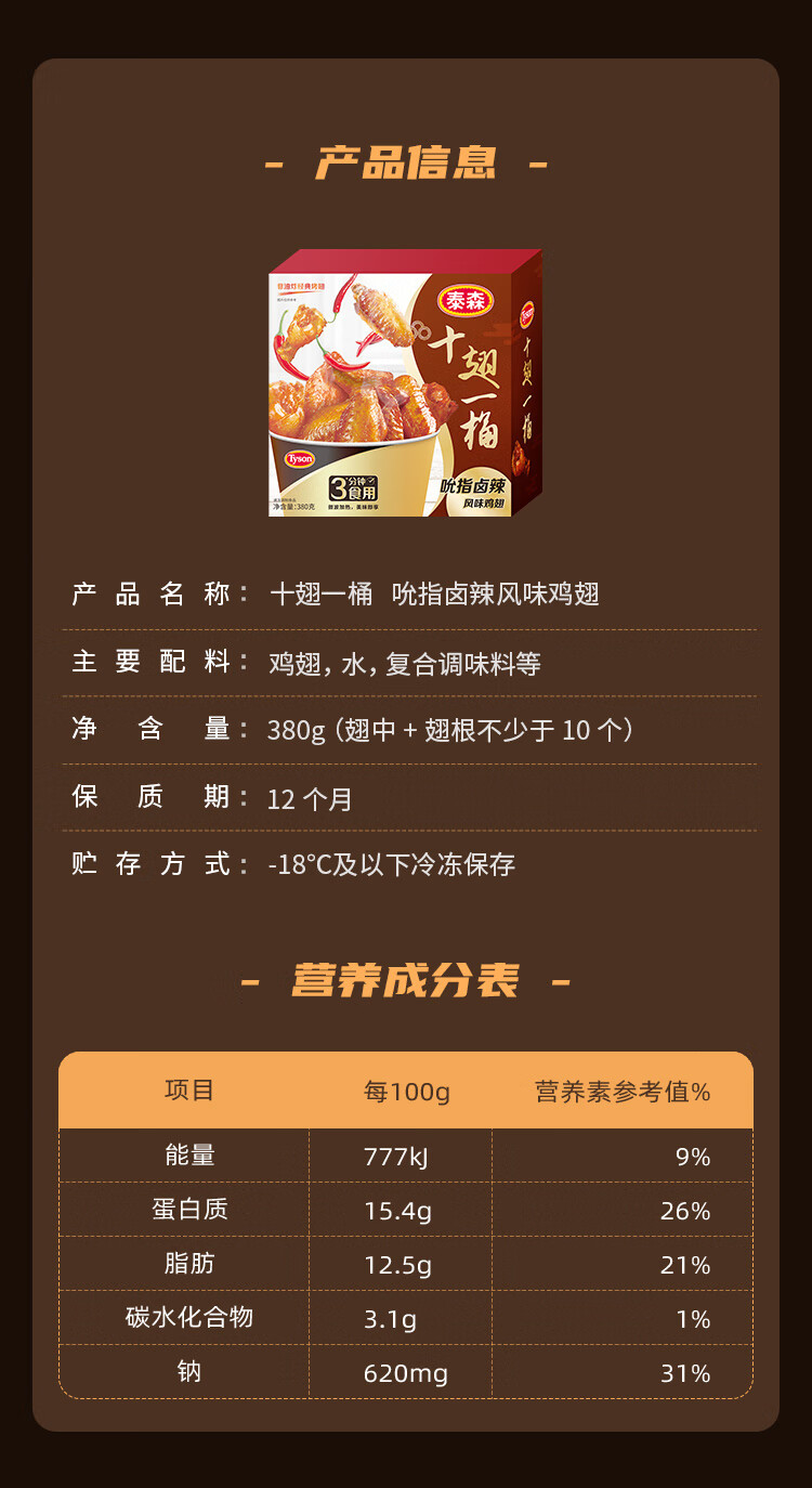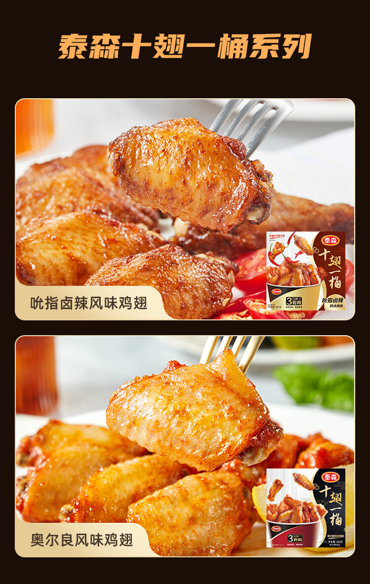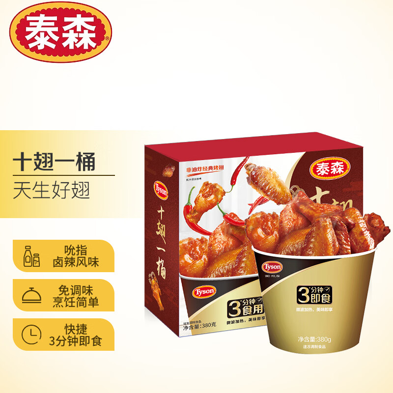 泰森(Tyson)十翅一桶 380g/盒 吮指卤辣味油炸鸡中翅烤翅 方便微波加热即食
