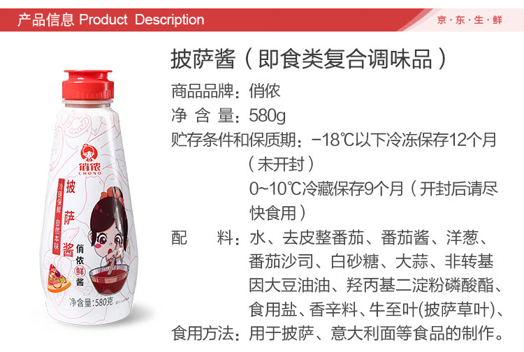 俏侬披萨酱 580g/瓶 意大利面酱比萨调味酱料 意面酱 烘焙原料