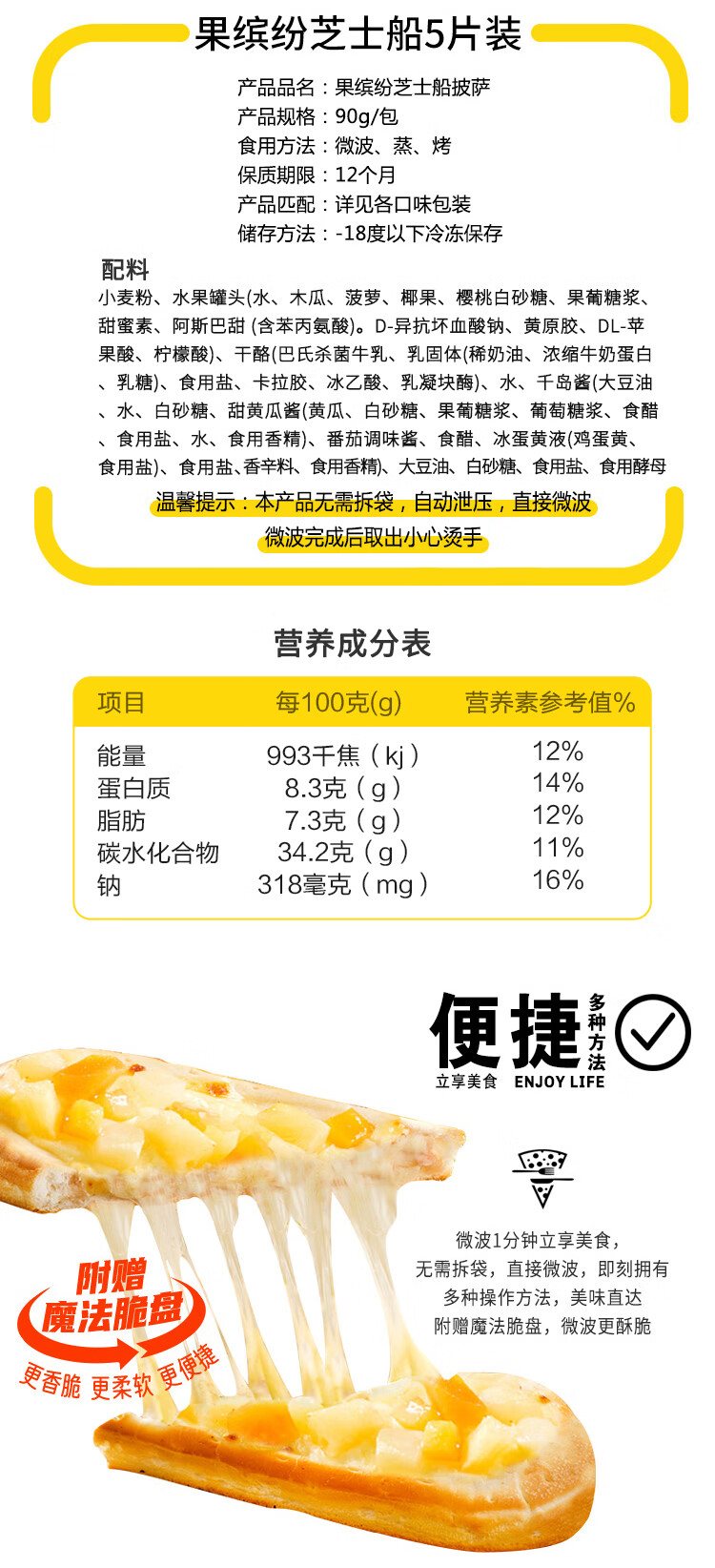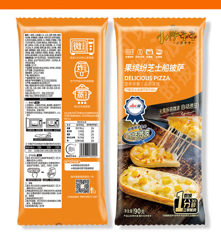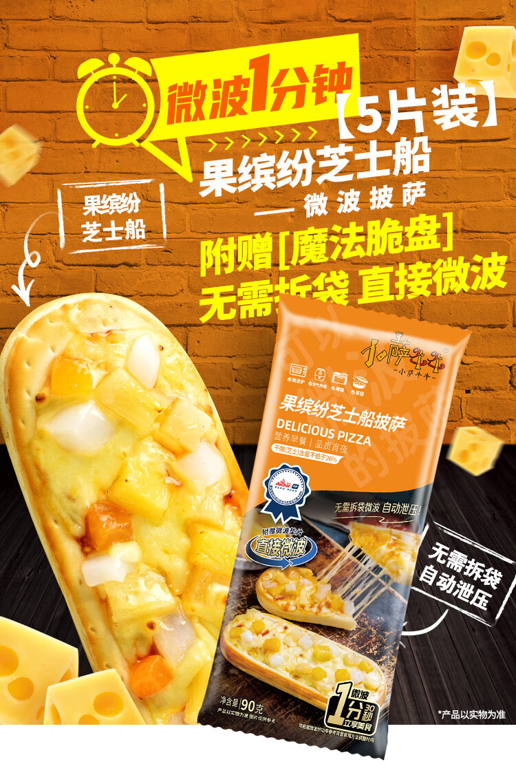 小萨牛牛果缤纷芝士船披萨90g*5袋 水果披萨饼 pizza批萨 成品匹萨饼烘焙