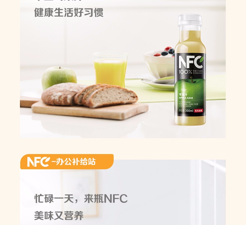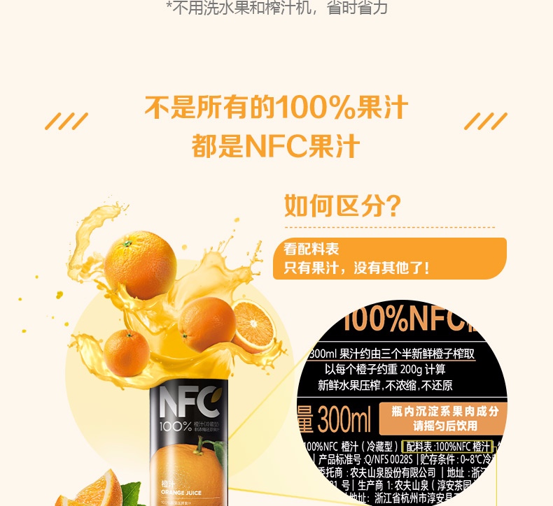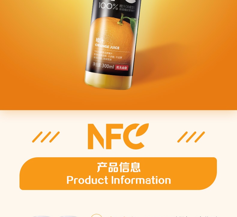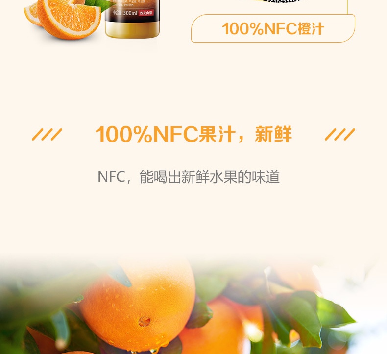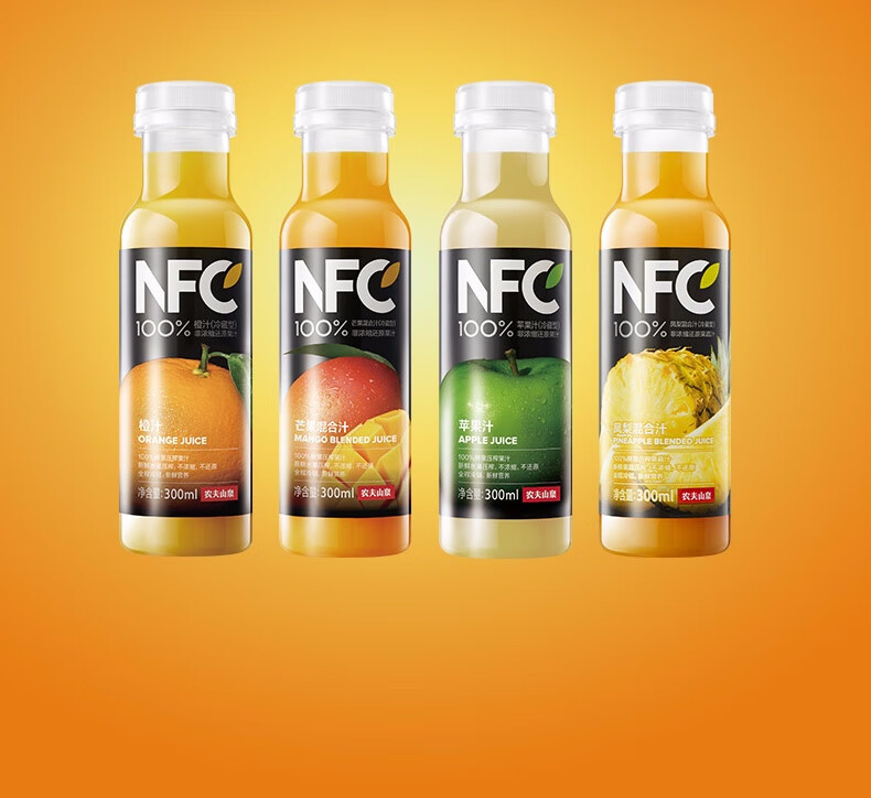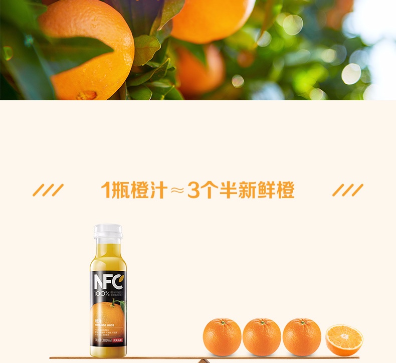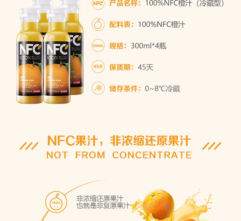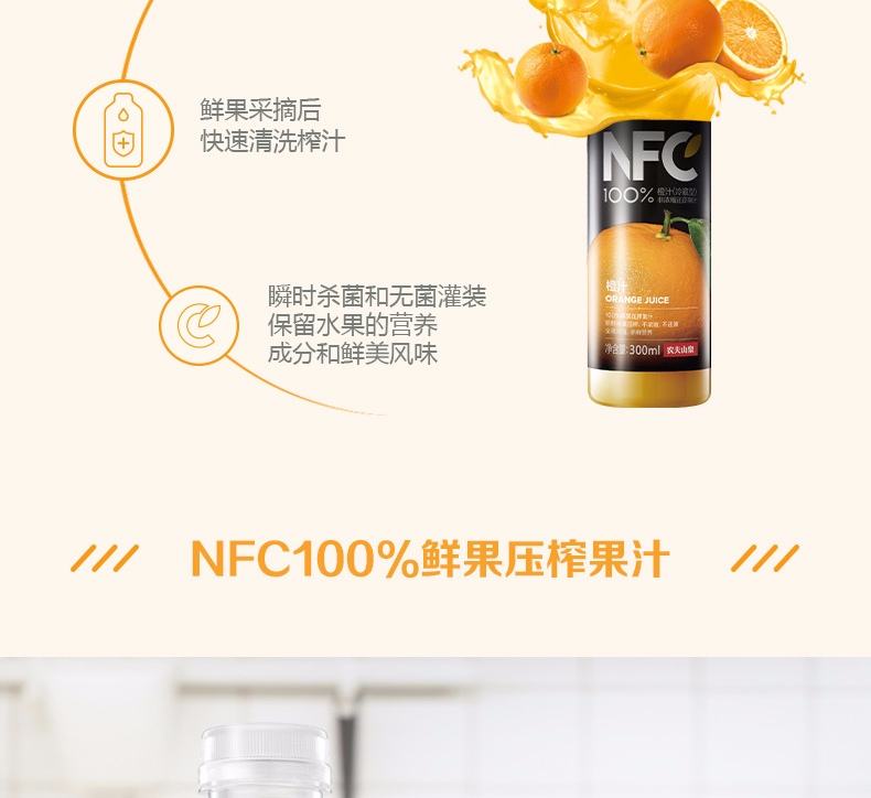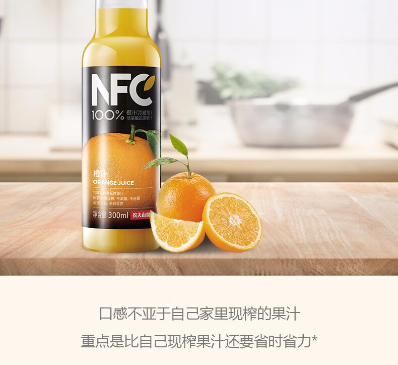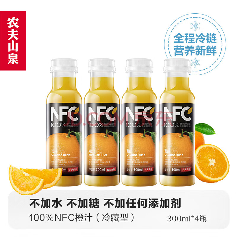 农夫山泉NFC果汁(冷藏型)100%鲜果压榨橙汁 300ml*4瓶