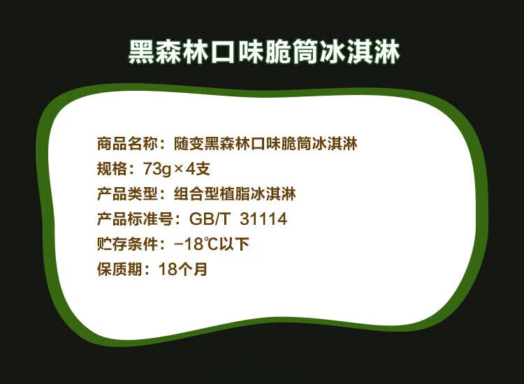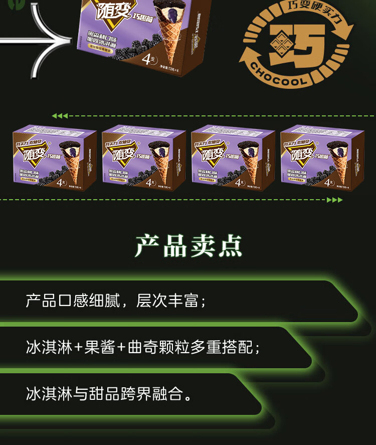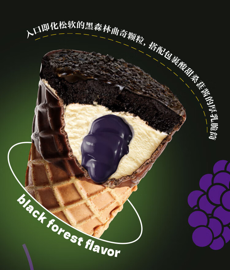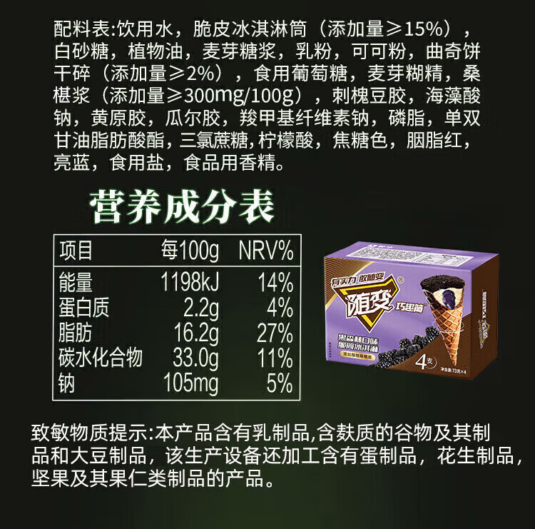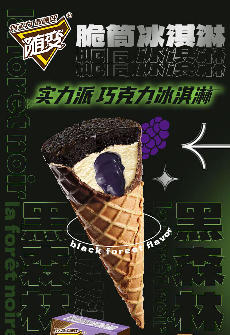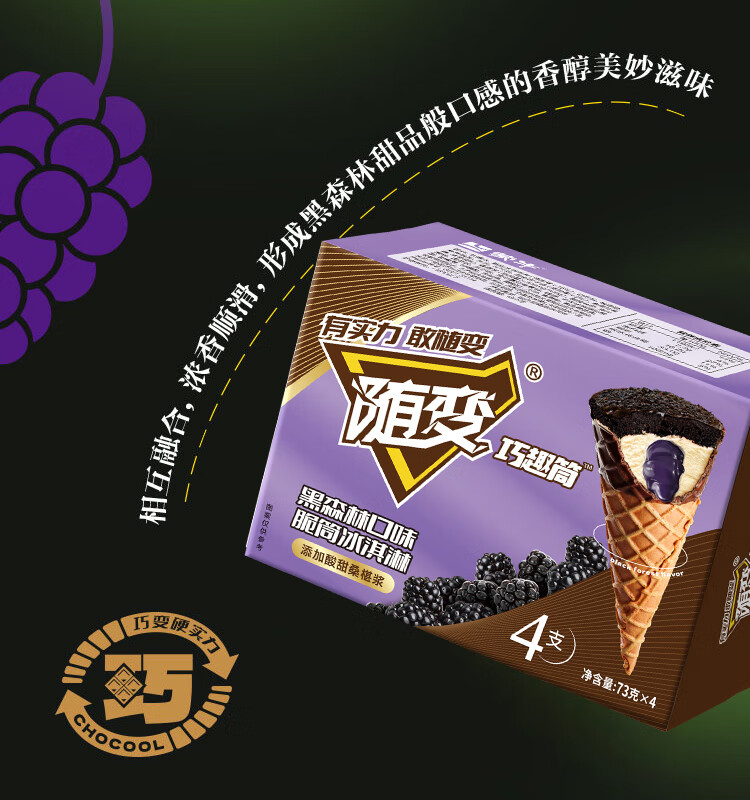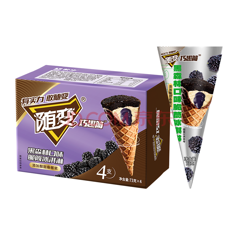 蒙牛 随变黑森林桑葚口味脆筒冰淇淋73g*4支/盒 冰激凌雪糕
