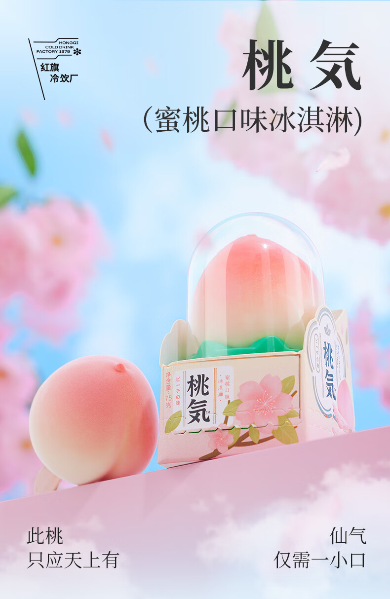 红旗桃気蜜桃口味冰淇淋雪糕75g*3支
